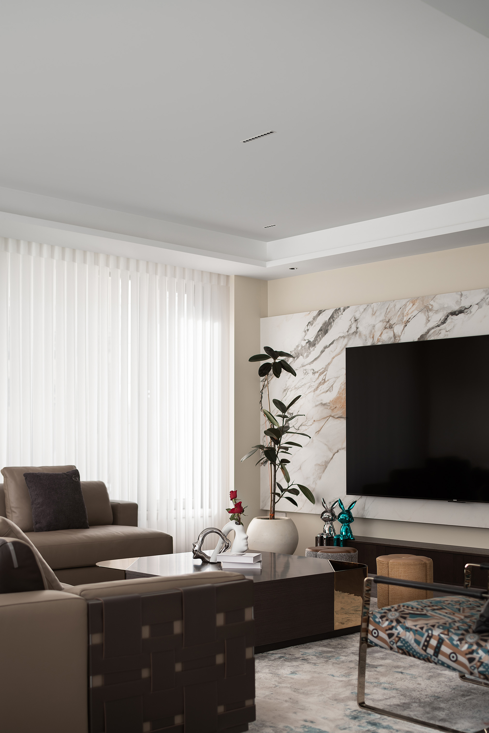 空间意境:通过材质碰撞、功能叠合与自然光影的引导,塑造兼具社交活力与静谧质感的轻奢自然居所,满足现代家庭多元化的生活场景需求。