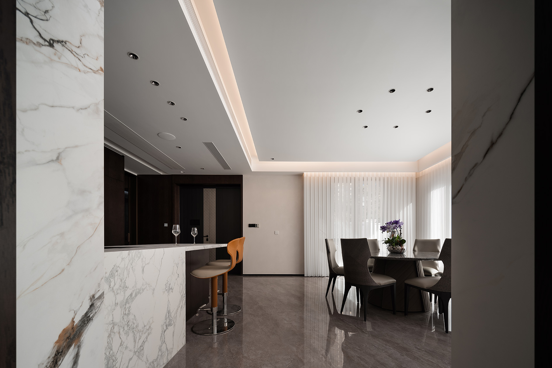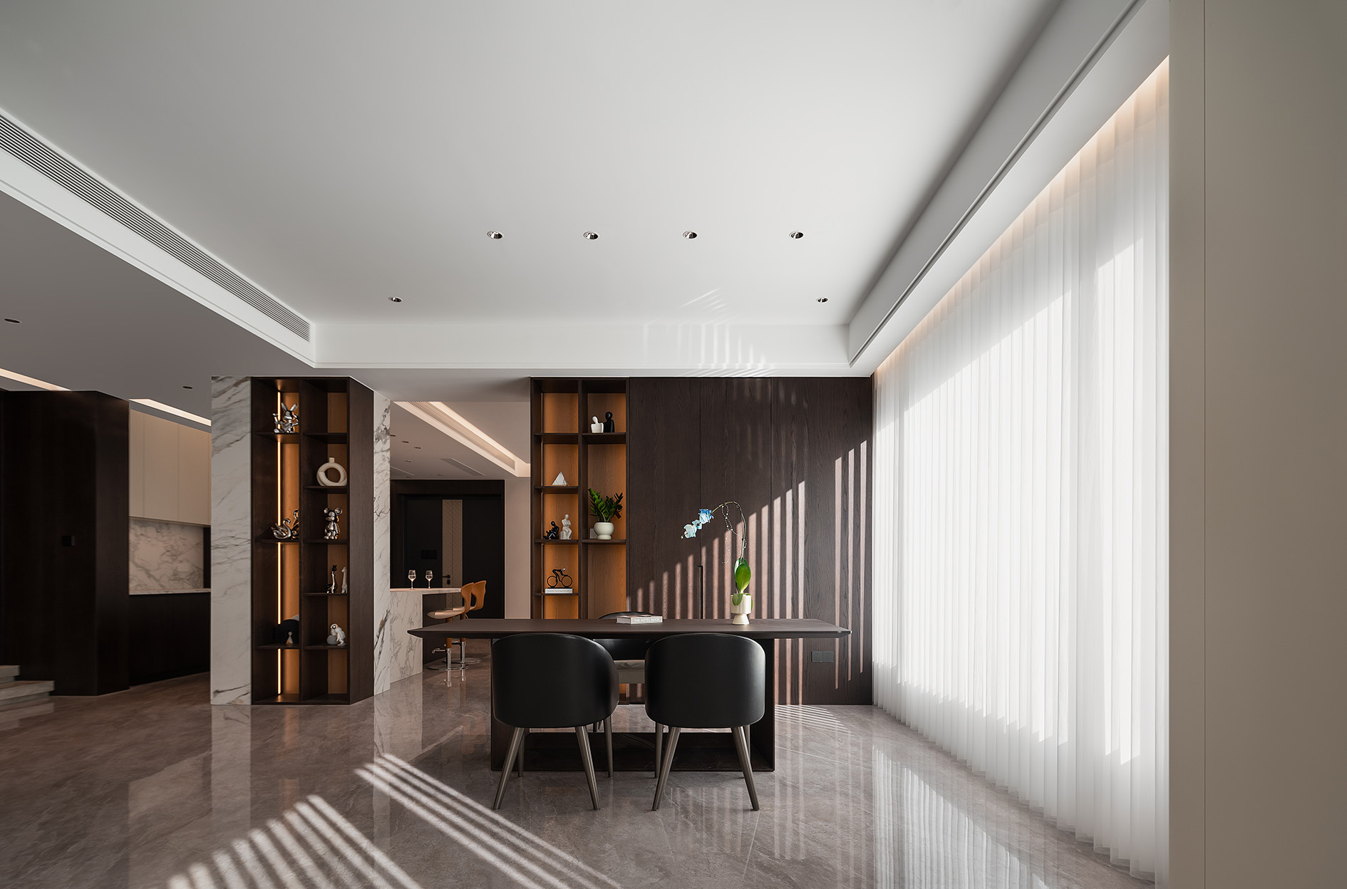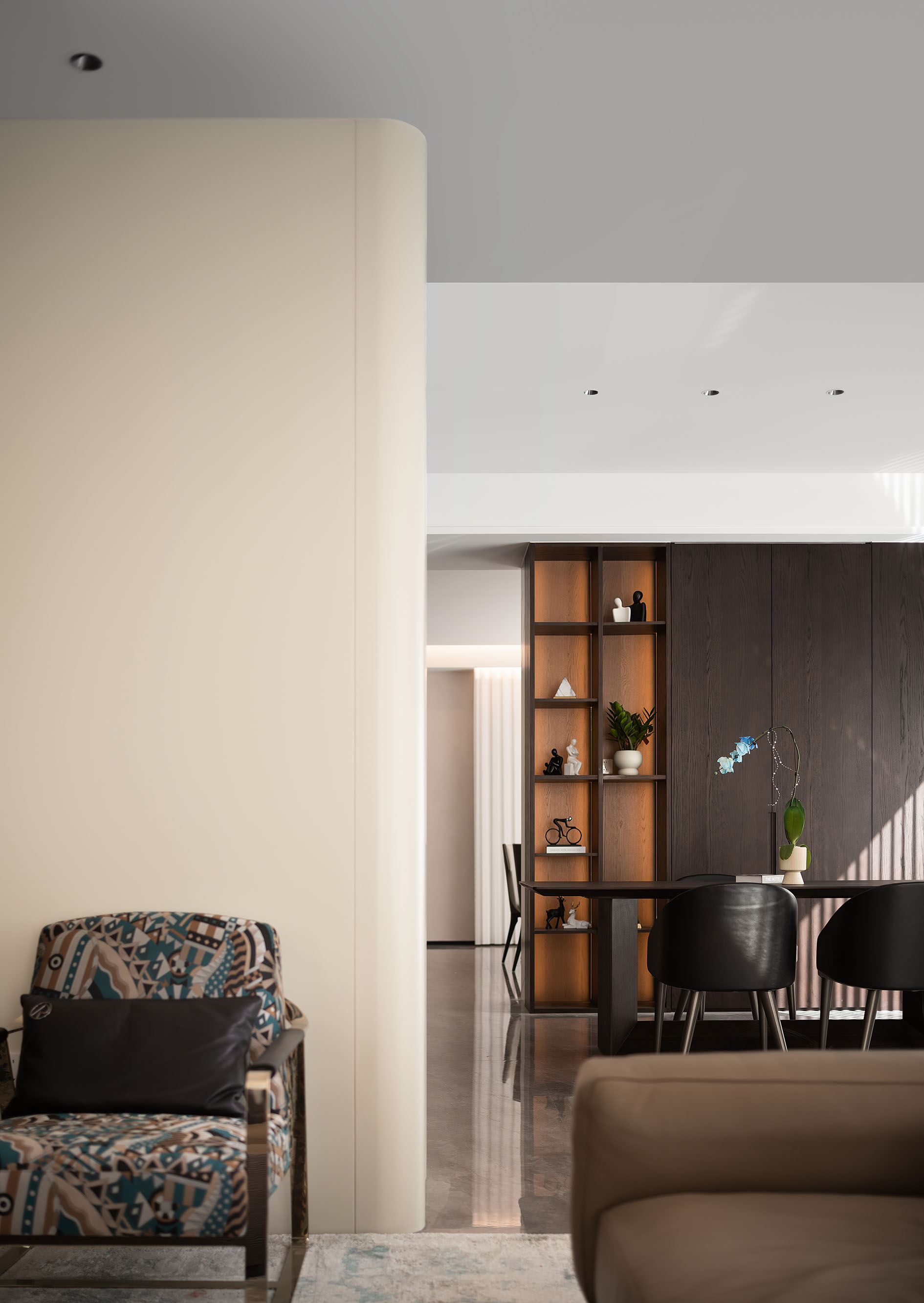 项目定位:以“无界共生”为理念,打破传统空间界限,将西厨、餐厅、书吧与客厅有机整合为连贯的开放式生活场域。