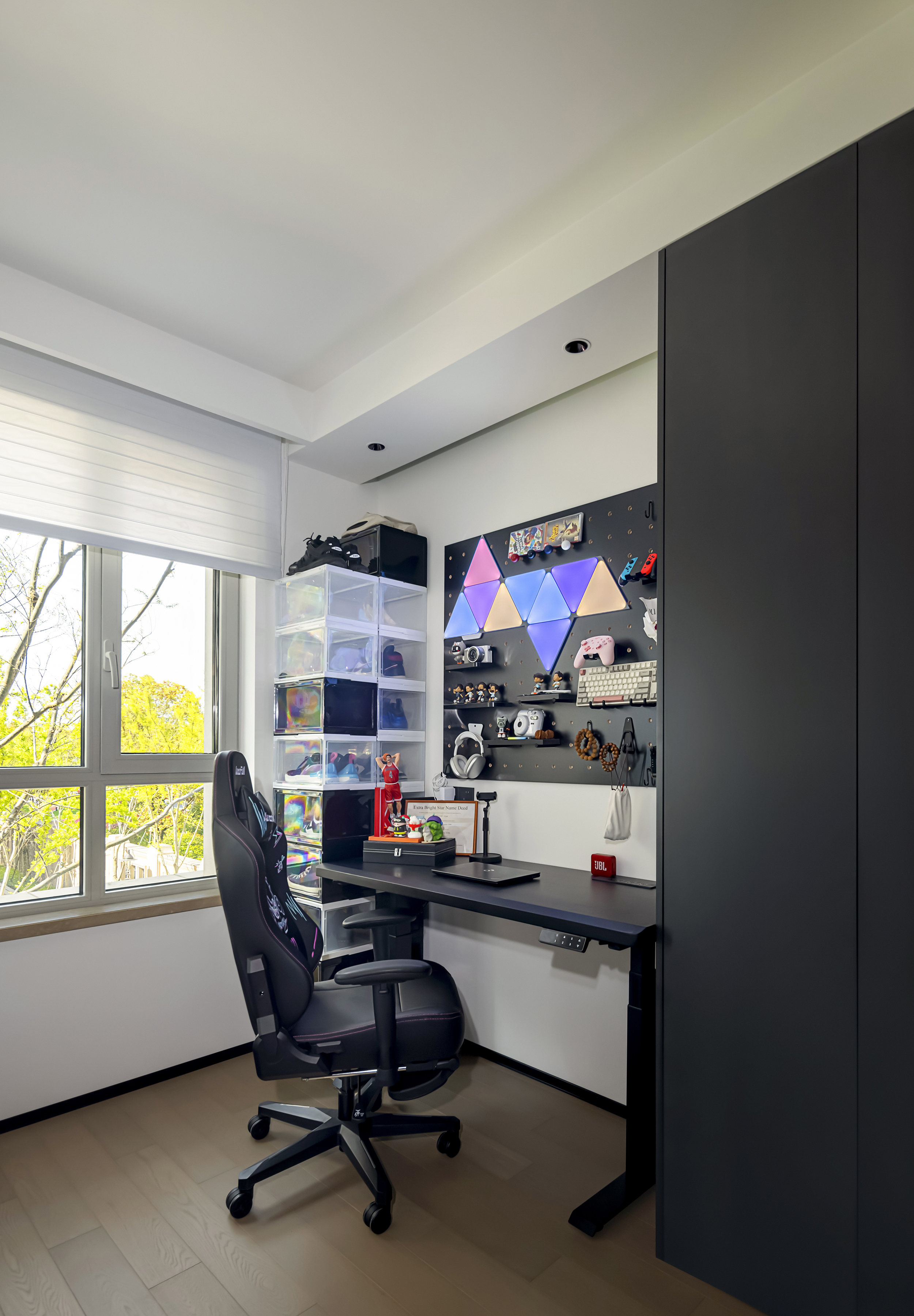 墙面分割出层次感,增加不同收纳空间。