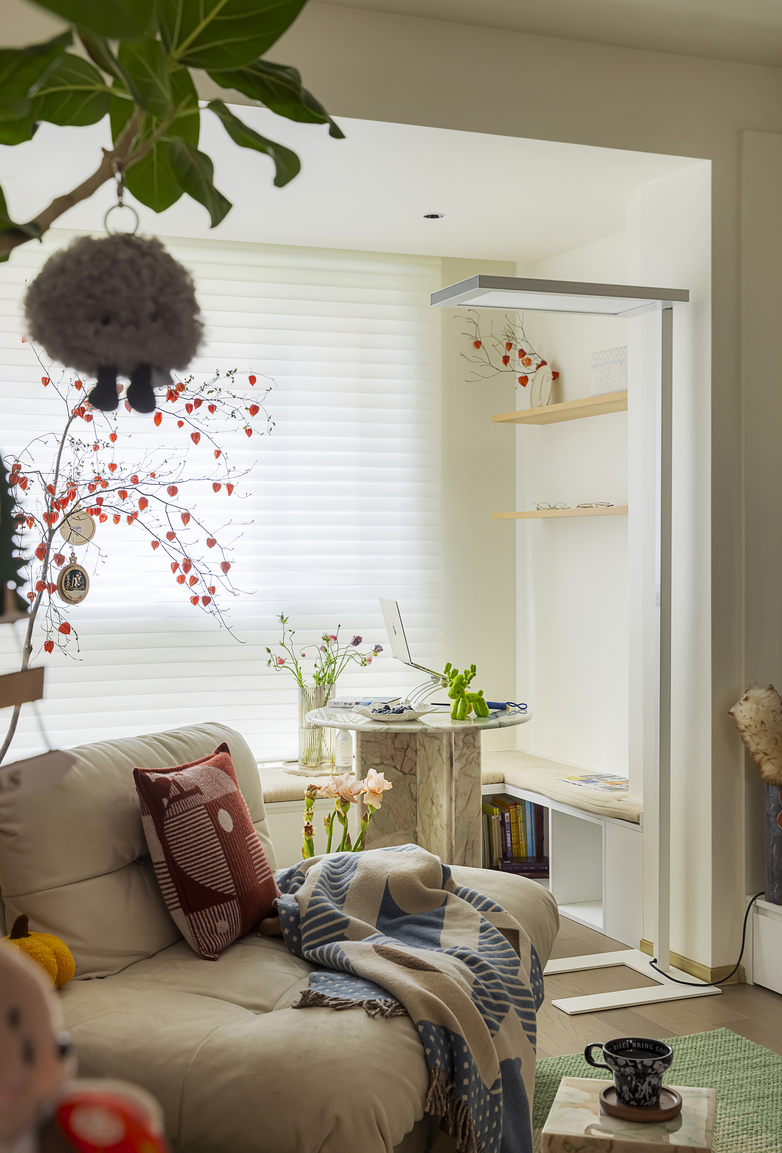 在设计中最大化消除了传统实体边界,将阳台作为休憩之地。百叶窗拓宽视野,成为衡量自由畅通的尺度标准。