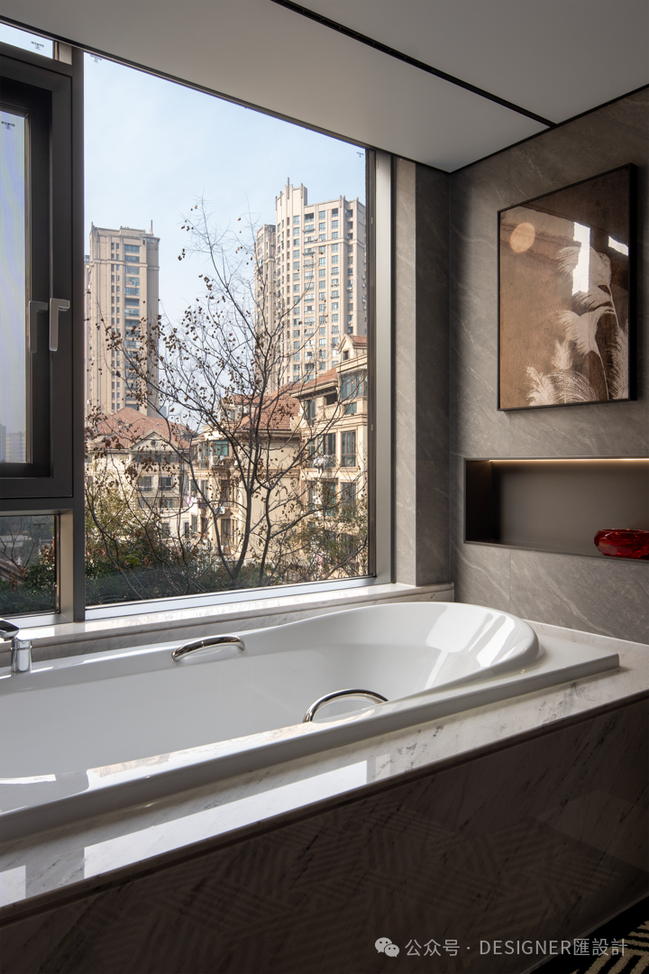 4.巧用玄关空间,匠心打造豪华主卧卫浴,不仅提升生活品质,更融入适老化设计。便捷的辅助设施以及动线设计,每一处细节都为居者将来的养老生活所考量,让其能够在养老岁月中,安享舒适与从容。