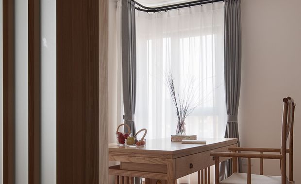 6.将原有阳台区域精心改造成女儿房的休闲角落,为她打造一片惬意小天地。面对空间中承重梁带来的限制,设计师凭借专业技能,利用CAD软件细致排版,量身定制出完美贴合墙体的书桌,既巧妙规避了结构问题,又增添了实用与美观兼具的学习空间。 -