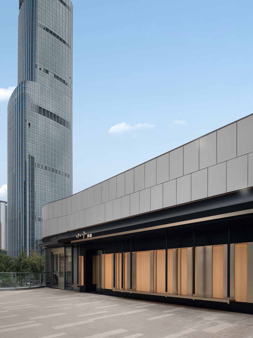 用户体验:建筑的主体轮廓经高度抽象化处理后,犹如一艘静泊于这片金色“水面”之上的轮渡,成为内部空间意境的绝妙序章——由外入内,从日光下的“浮光跃金”到室内的“静影沉璧”,空间体验的叙事于此形成完美的闭环。