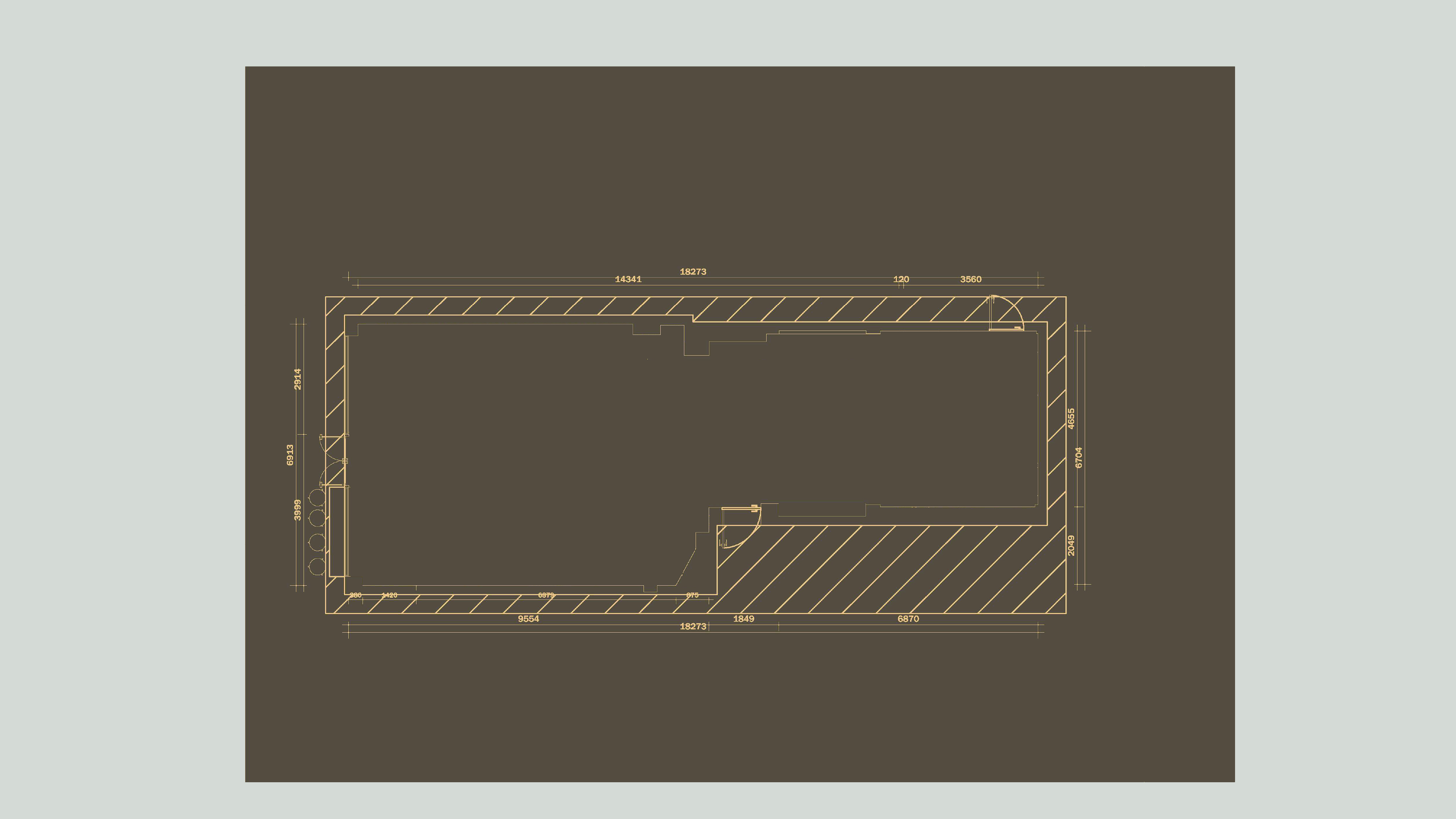 2. 下方分区做铝制木纹框做线条外框门上方做弧形造型体现门头主营业务。