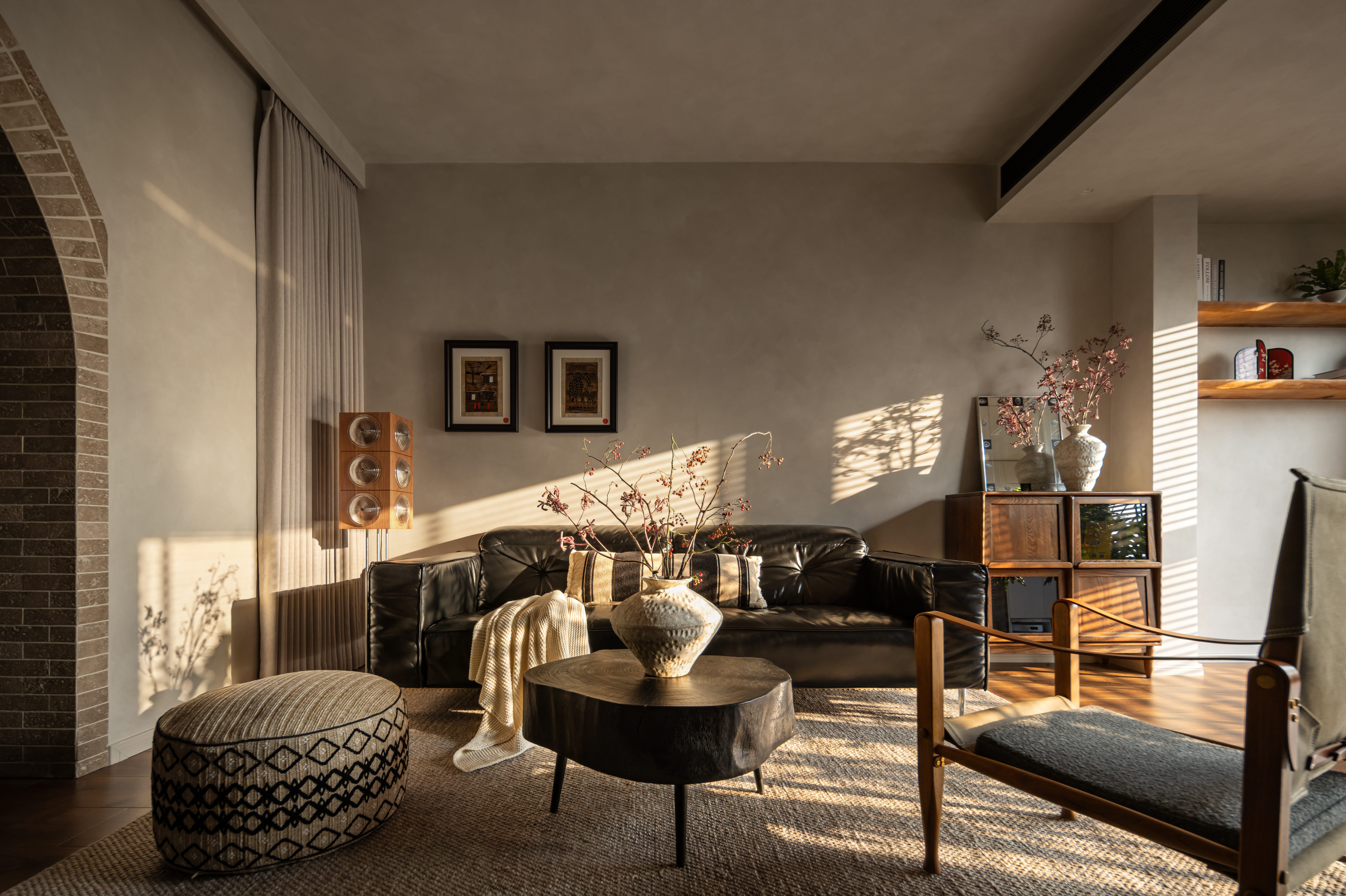 项目定位:本项目并非一次常规的风格化装修,而是一场针对都市人居痛点的空间疗愈实验。定位为 “为光阴设计的容器” ,旨在为厌倦快餐式生活的业主,打造一个能感知时间流动、安顿身心的精神栖居所。它超越单纯的美学呈现,核心在于通过设计重构人与光、与自然、与旧物的关系,在现代住宅中实现一种“有温度的侘寂”与“可生活的中古”。