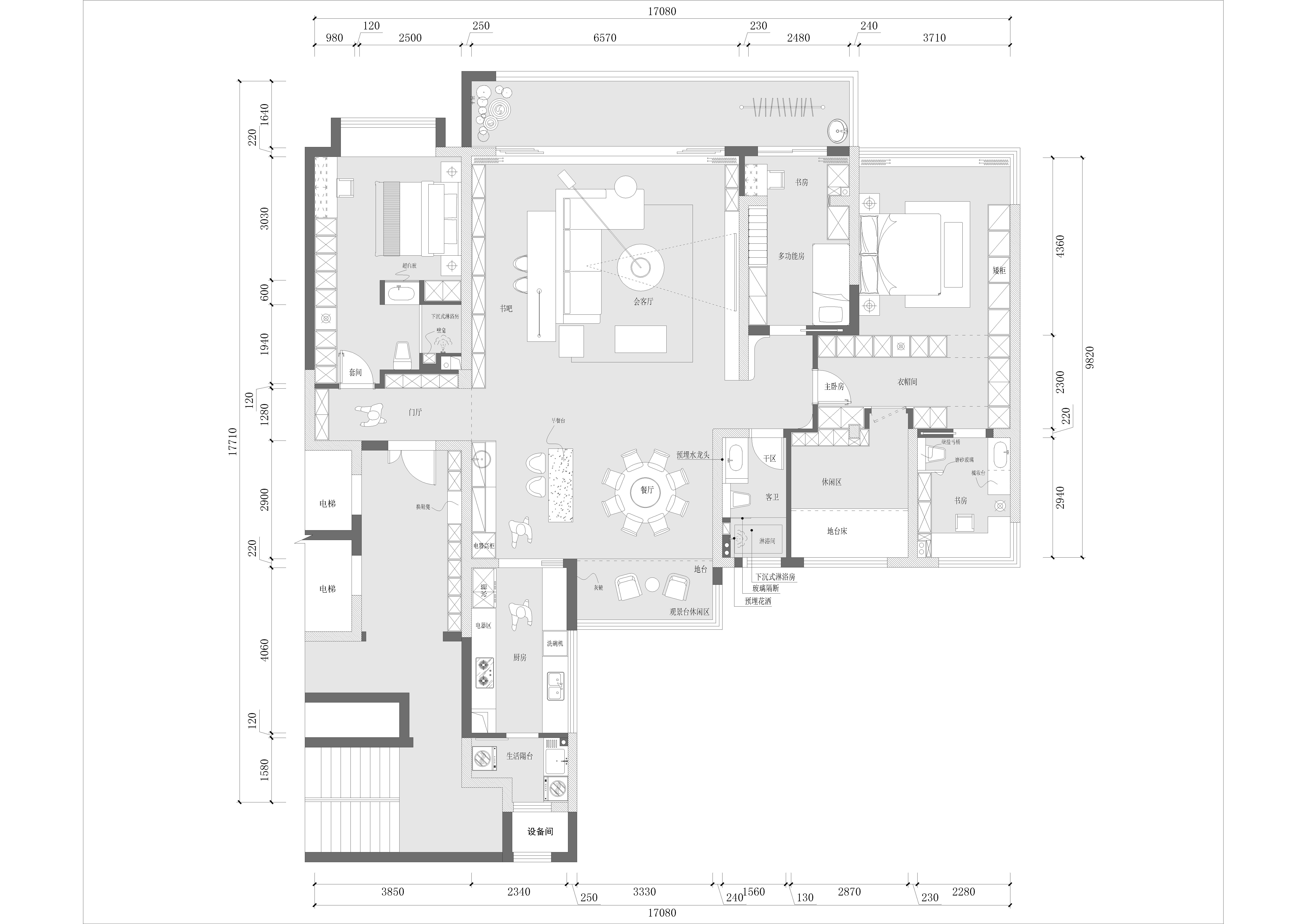 项目定位:该户型独拥北面观湖的绝佳优势,推窗即揽浩渺湖景,成为空间里最动人的背景画。设计师深谙居者对于生活品质的追求,考量到其对于卧室数量需求不多,巧妙将四房改造为三房,让每一寸空间都承载着与湖景相拥的惬意。改造后的三房,每一寸空间都透着疏朗的阔绰。无论是主卧连接的北向观景阳台,还是餐厅专属的湖景休闲区,都将湖景最大化利用,让居者在起居、休憩、欢聚的每一刻,都能与这片湖景温柔相伴,实现其把家安在风景里品质梦想。