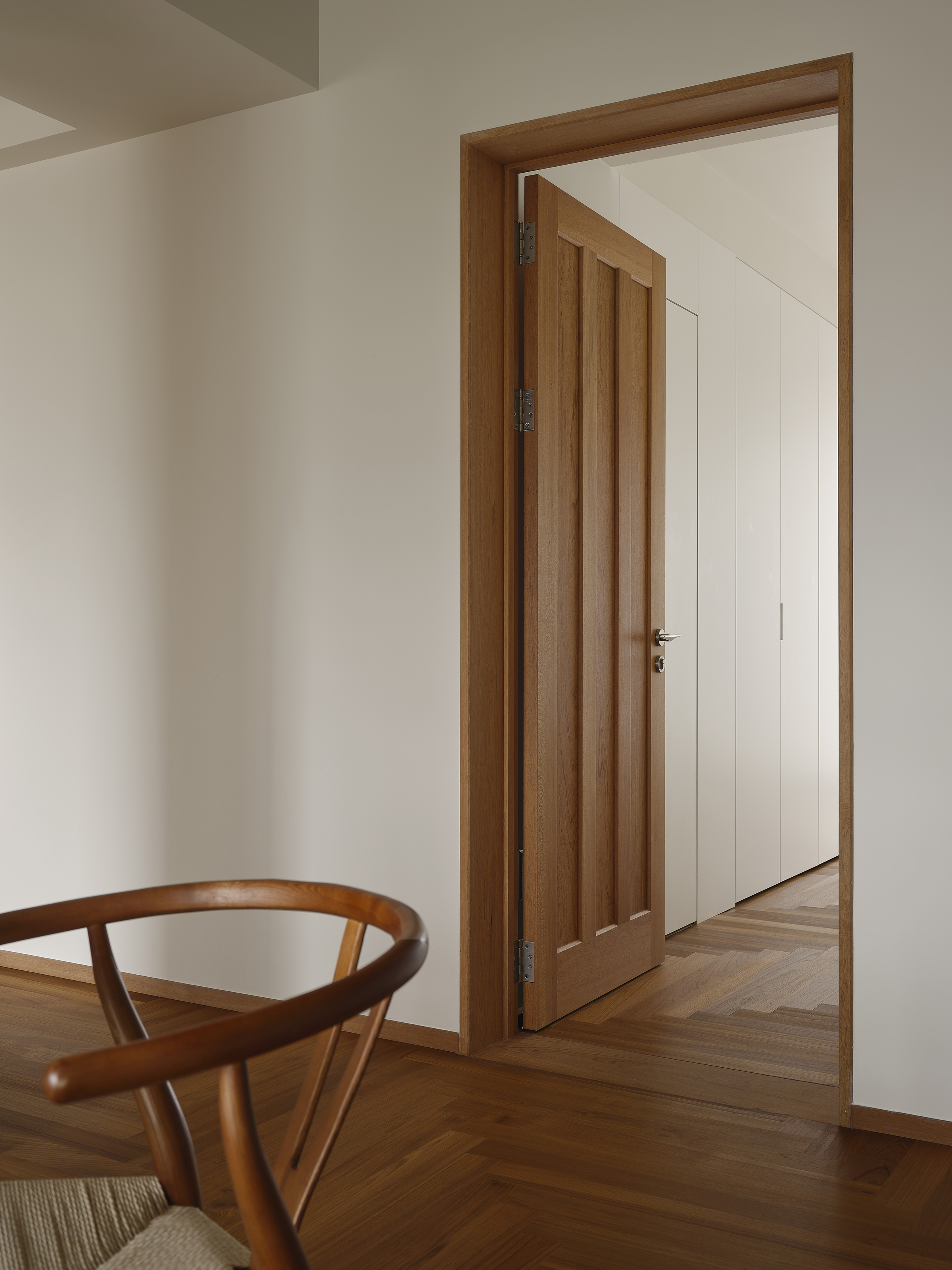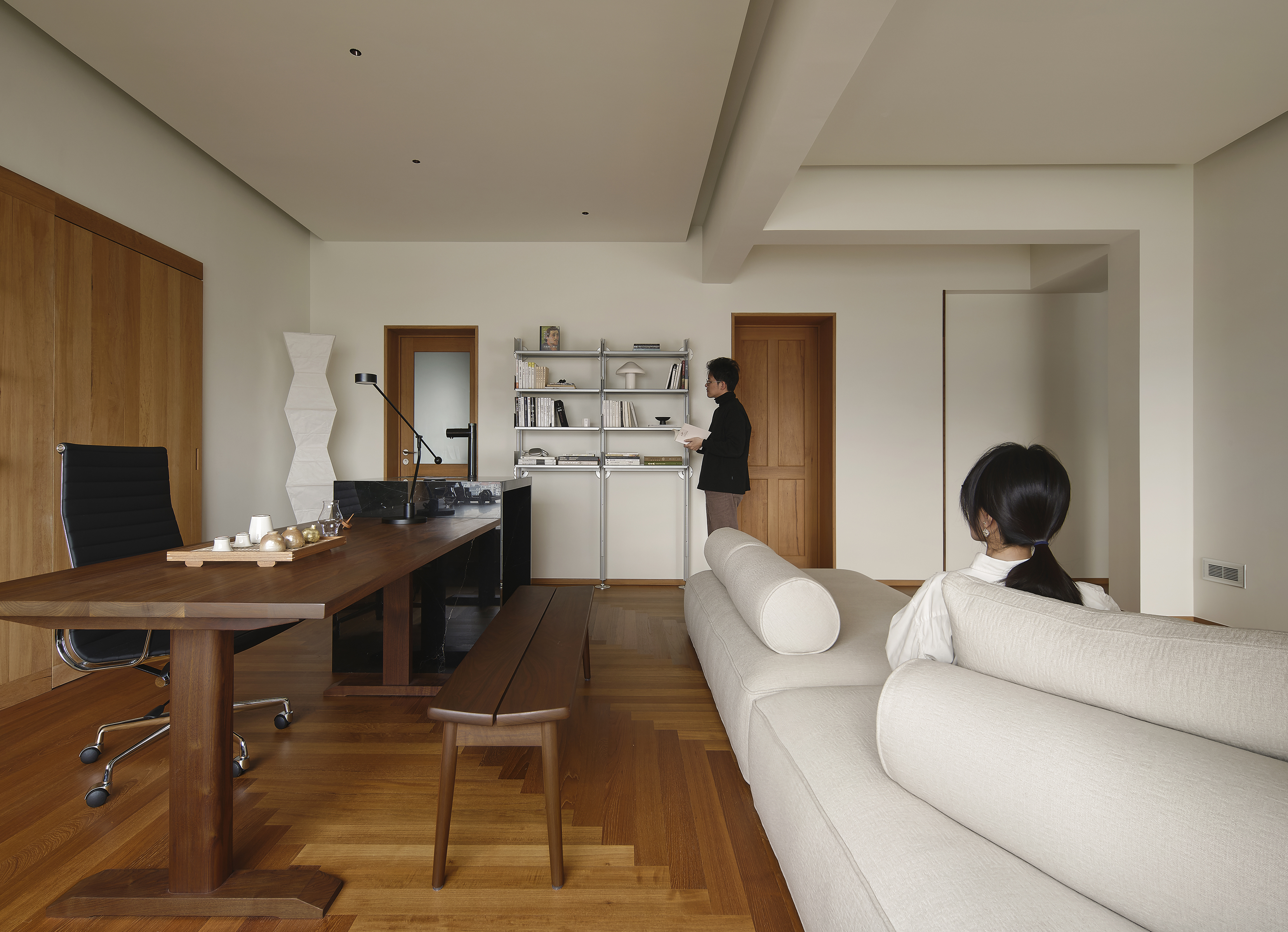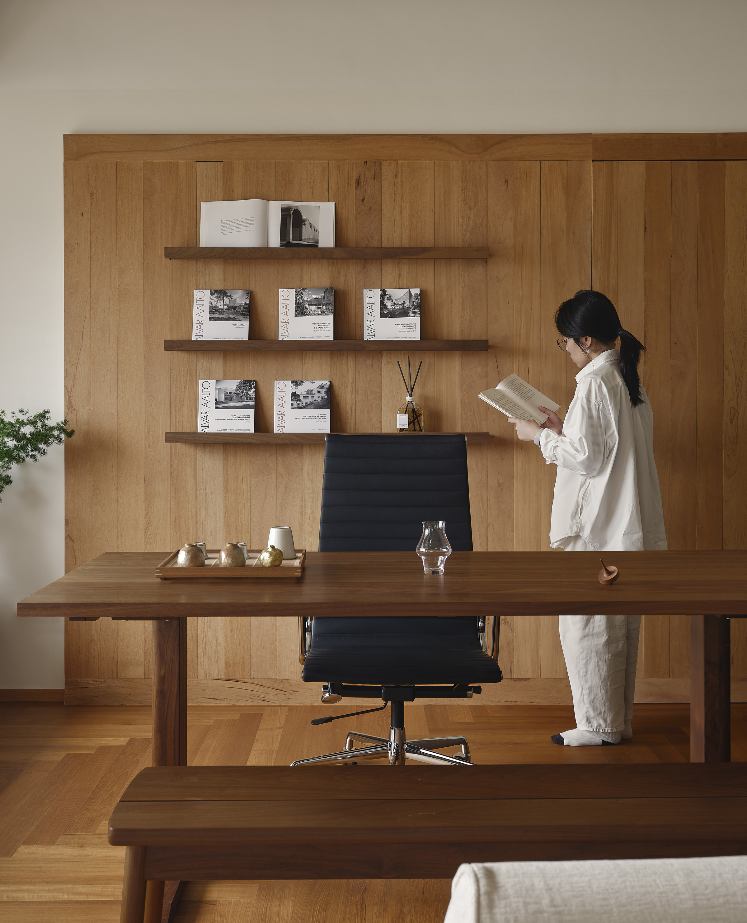 实木作为可持续使用的材料,经久耐用又极致环保,在缩短业主等待入住时间的同时,也能为空间增加更多自然温度。