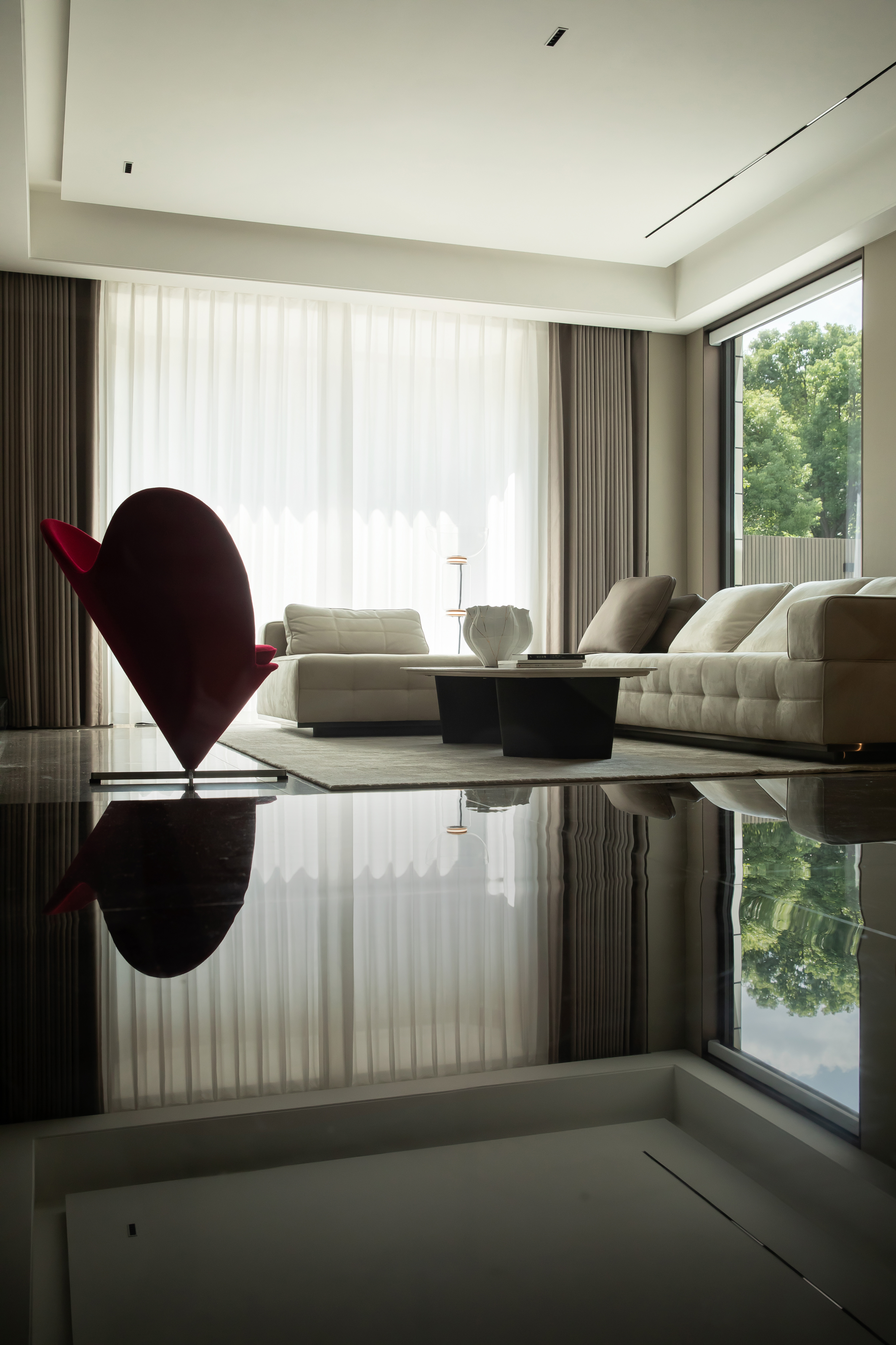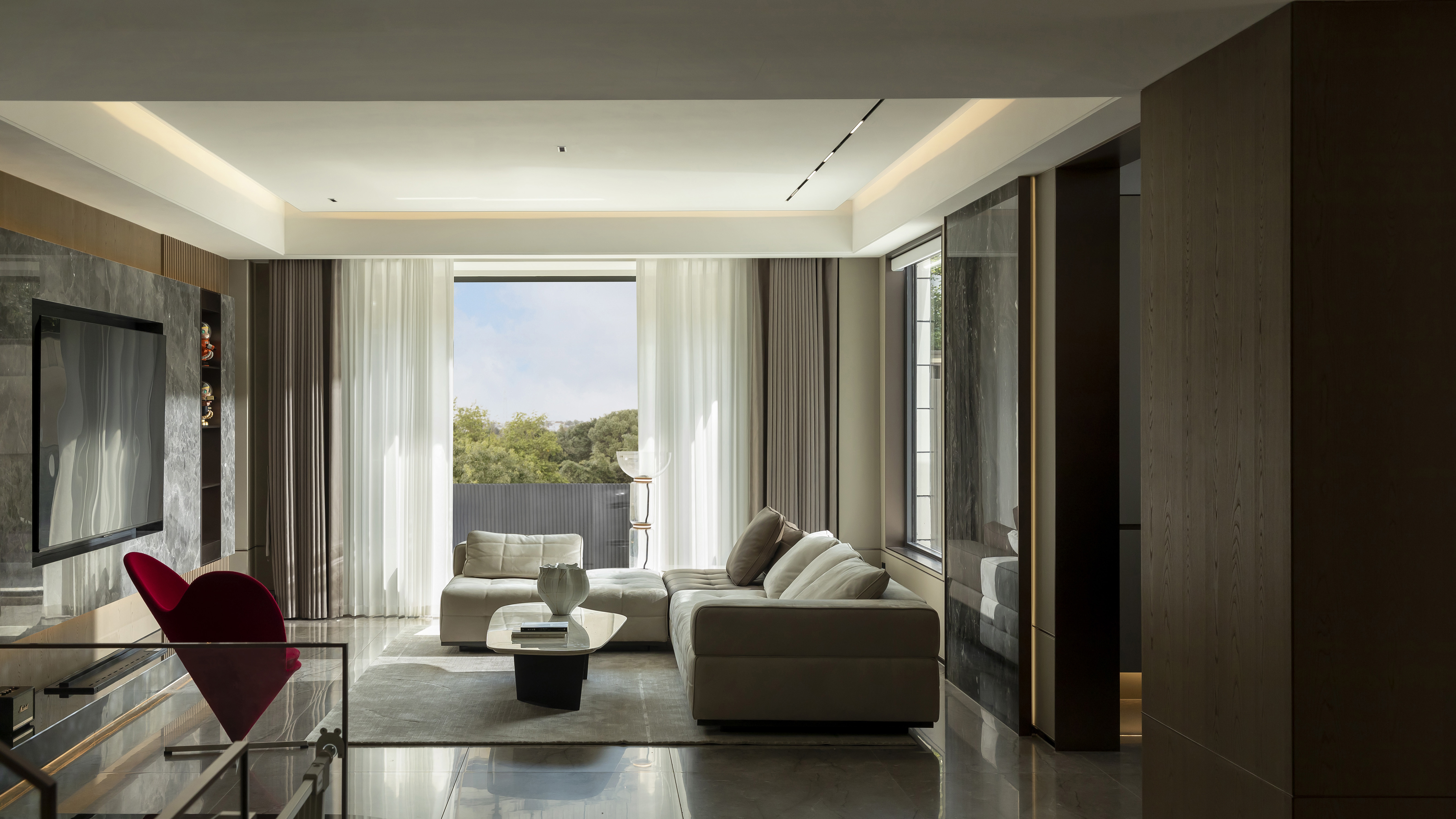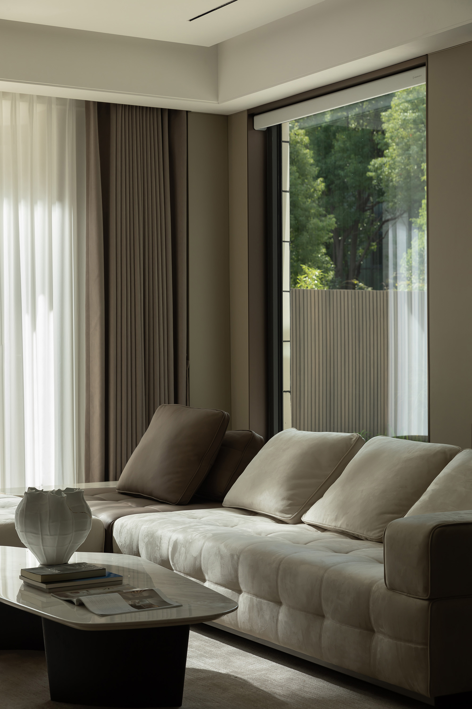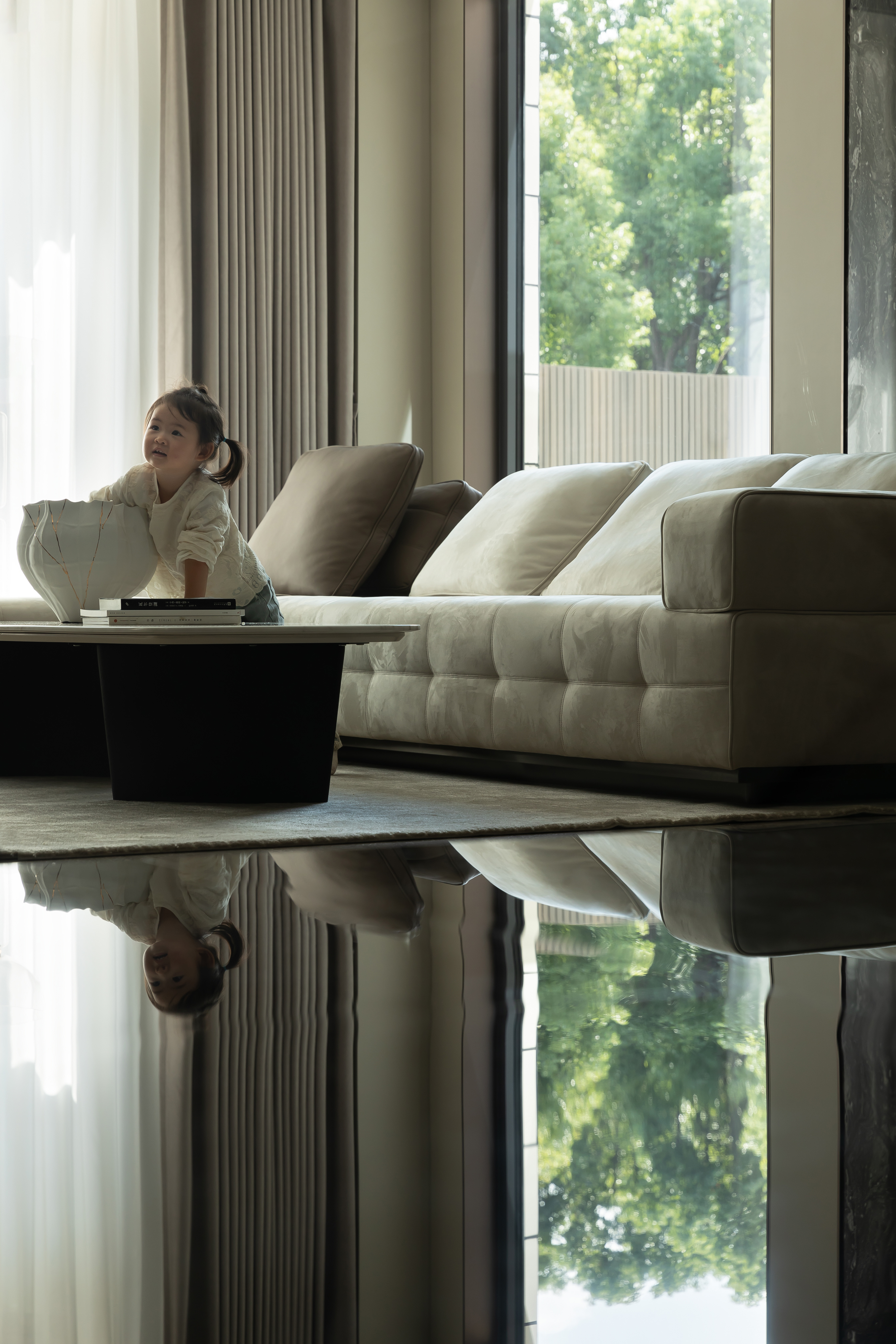 客厅里,白色的纱帘半遮掩时,光透过院子照射进来,忽明忽暗,在这光影里孩子摇摇晃晃长大了,这一幕仿佛就定格在家里,不管三年五载,情感愈加浓郁,而家一直优雅舒适。