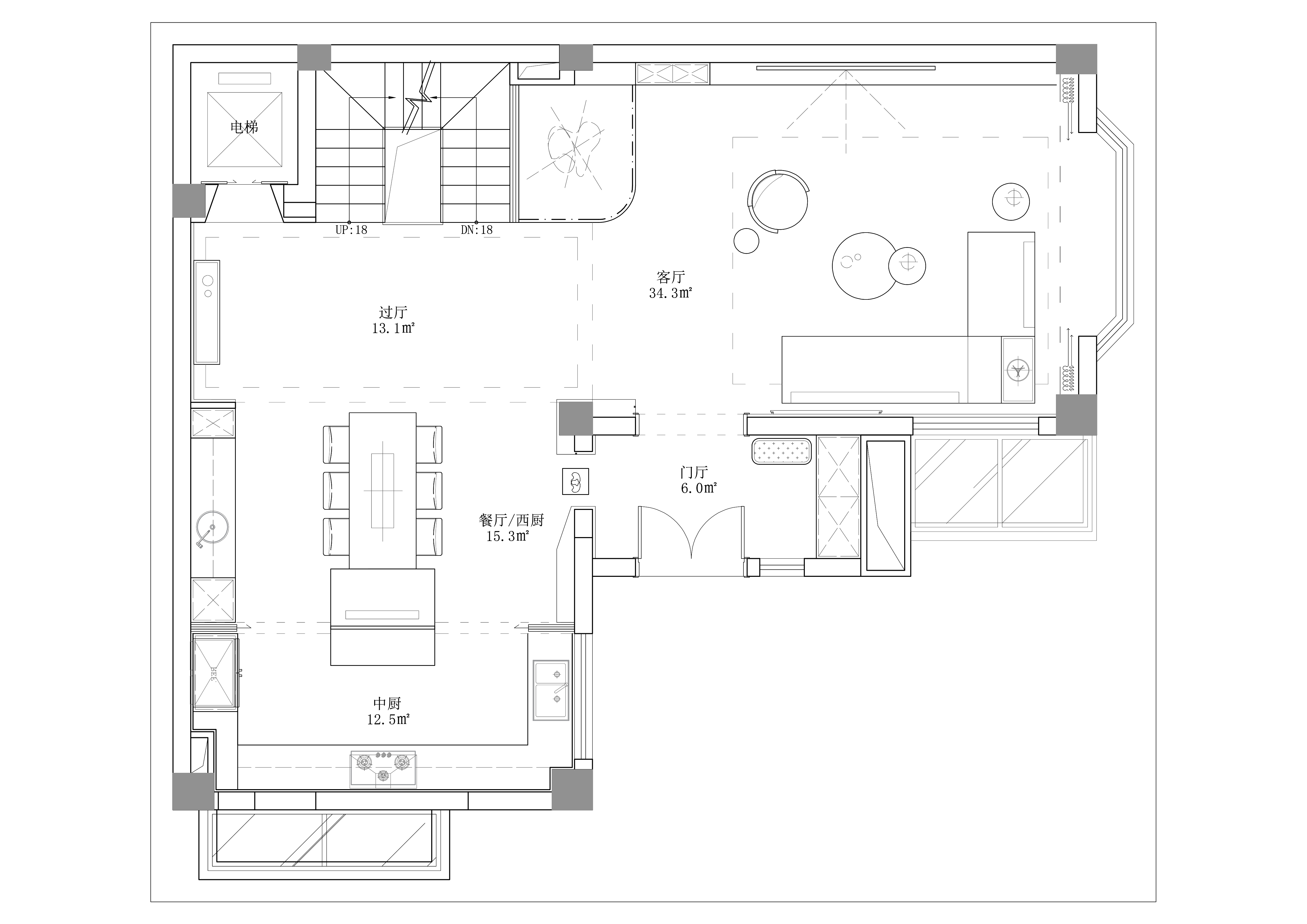 项目定位:原户型中一层不够通透,厨房和餐厅都偏小,对于一个正在生长中的家庭使用起来会产生诸多不便。我们把整个一层做了改建,打通后整体更加开阔,保证了客厅、餐厅、厨房的完整性。