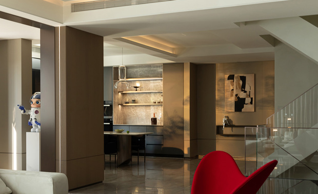 一个舒适的家不在于是否奢华,而是一切都恰到好处。空间的尺度刚好让人能舒适地行走,将人温暖地包裹其中,一切的形式被淡化后,经典永存,加之主人的小趣味得到照拂,每一天的生活既有人间烟火的真实感,又有幸福浪漫的治愈力。