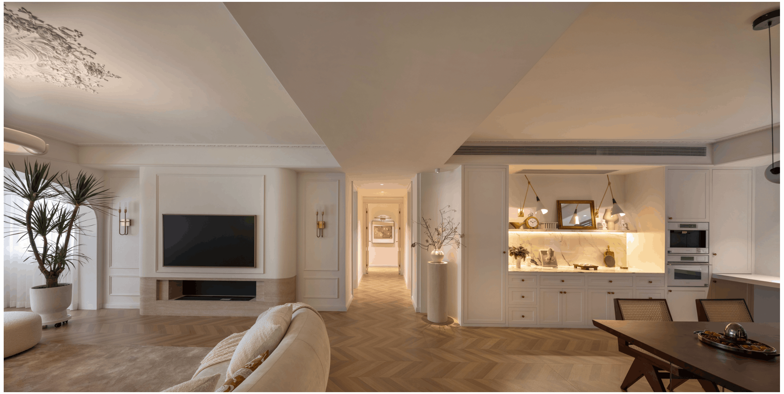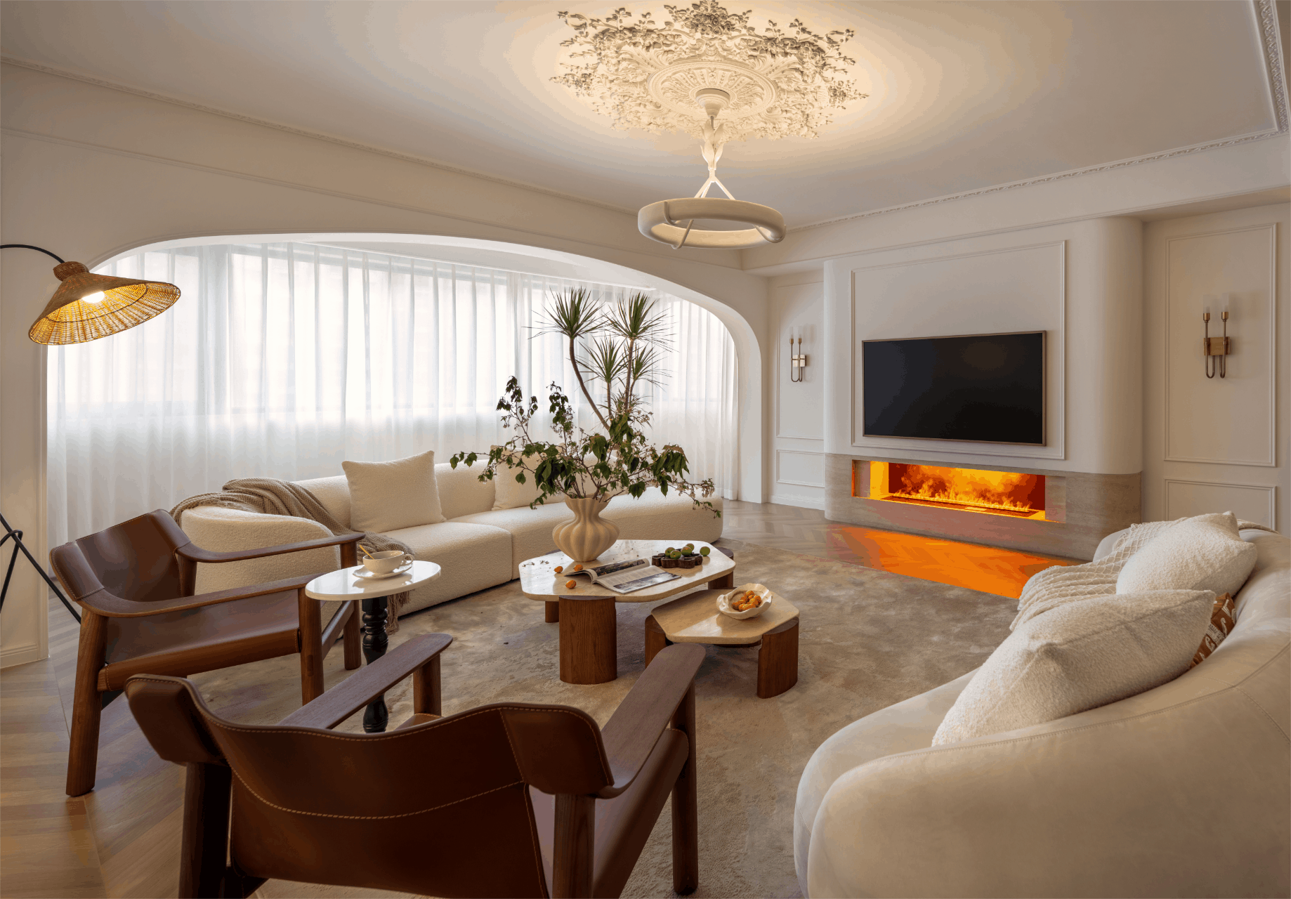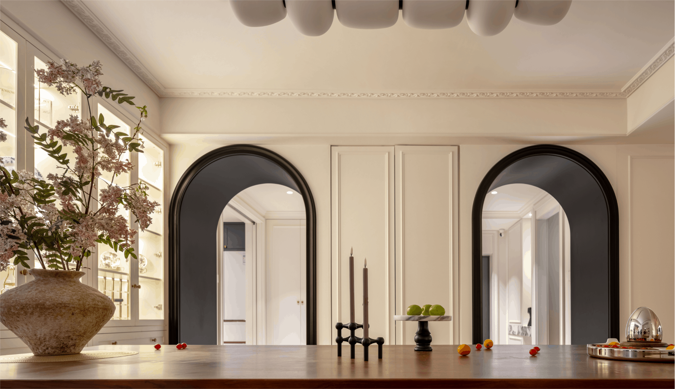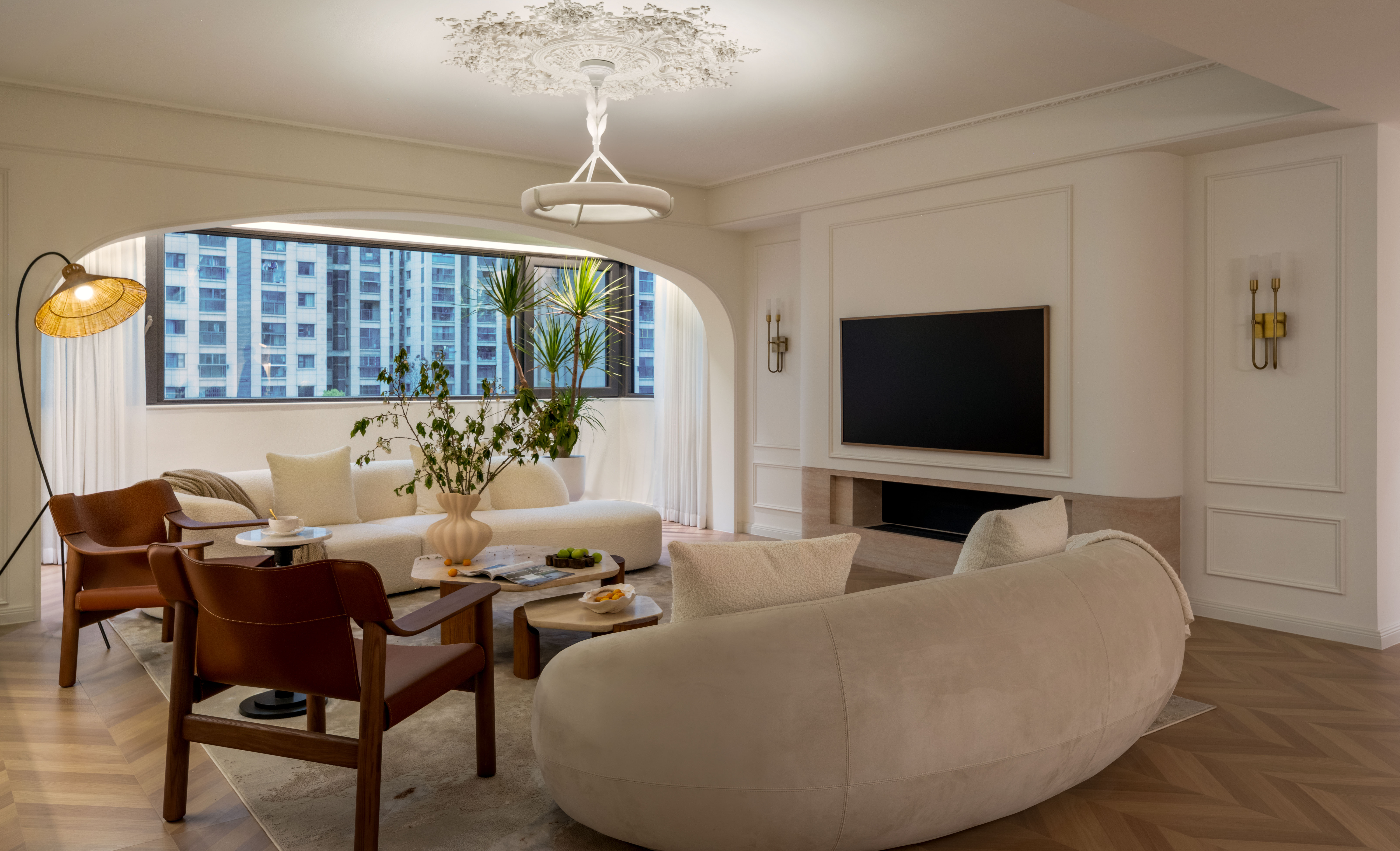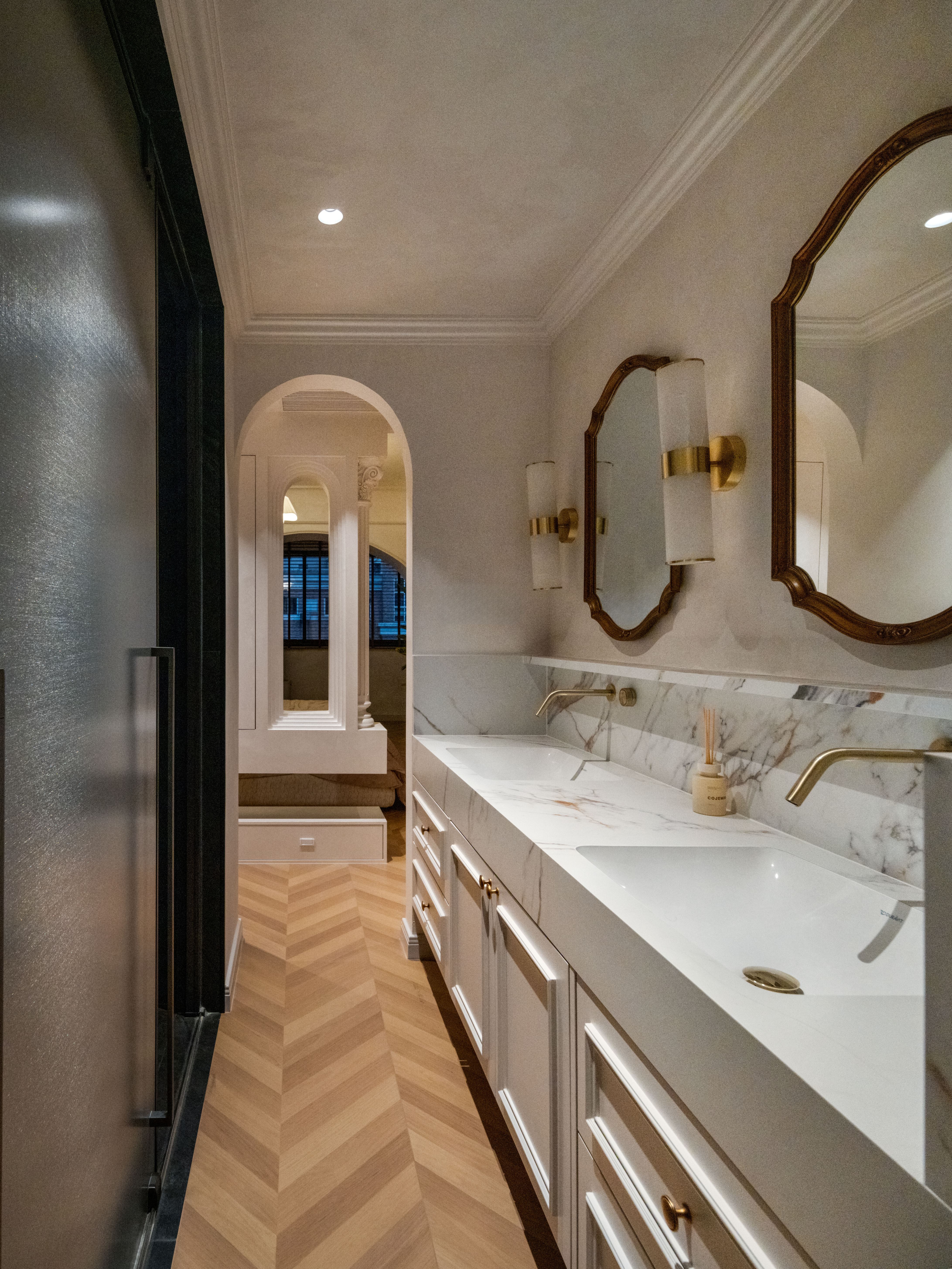 双道柔弧以连续的优雅,划破空间的方正,既呈现法式的古典秩序,又注入一丝流动的现代诗意。