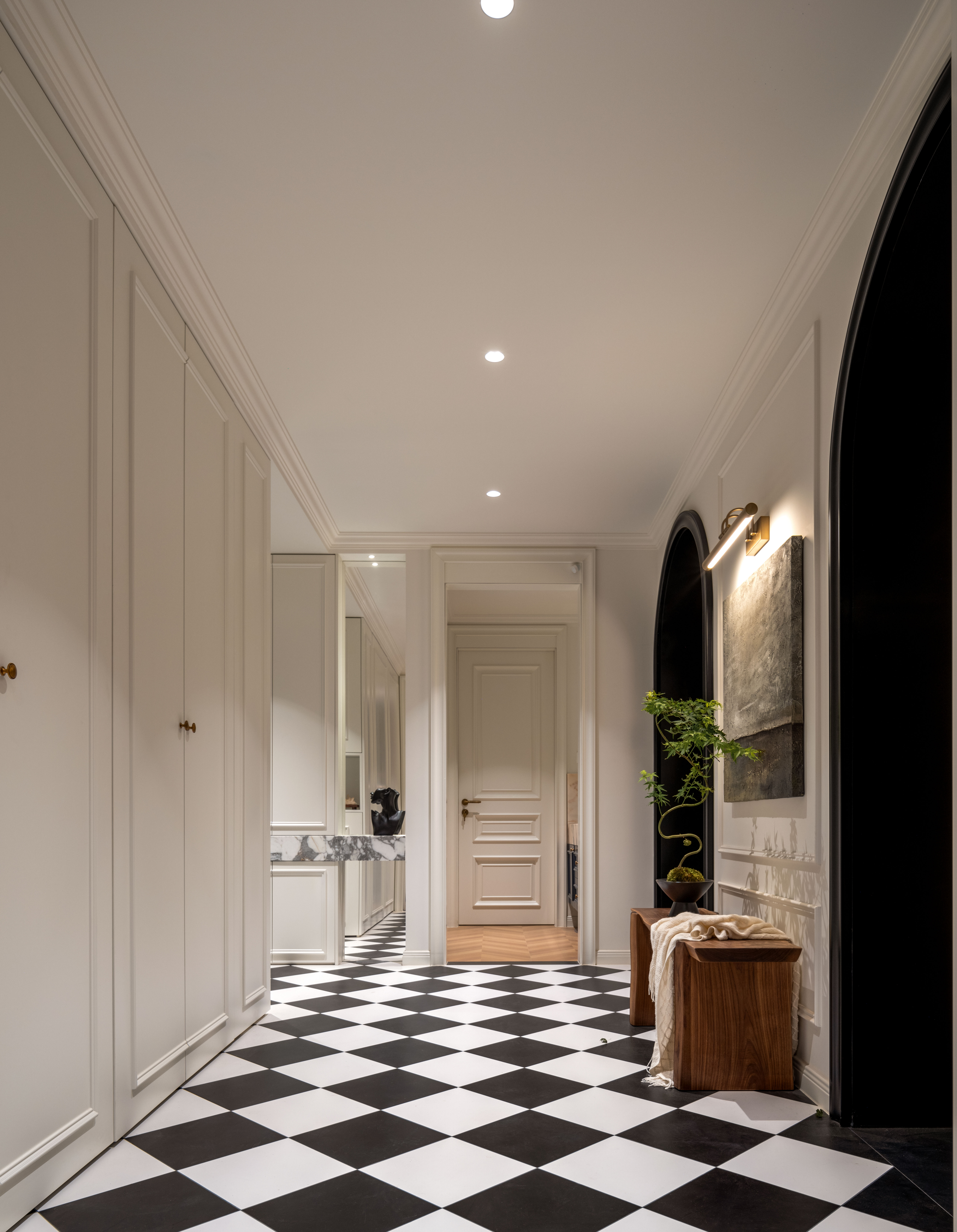 至关重要的“800库”——这个设计中的收纳巨擘,如今完美地隐匿于视线之外,将大型物件、家政设备悉数容纳,只留门厅一片清雅与从容。
