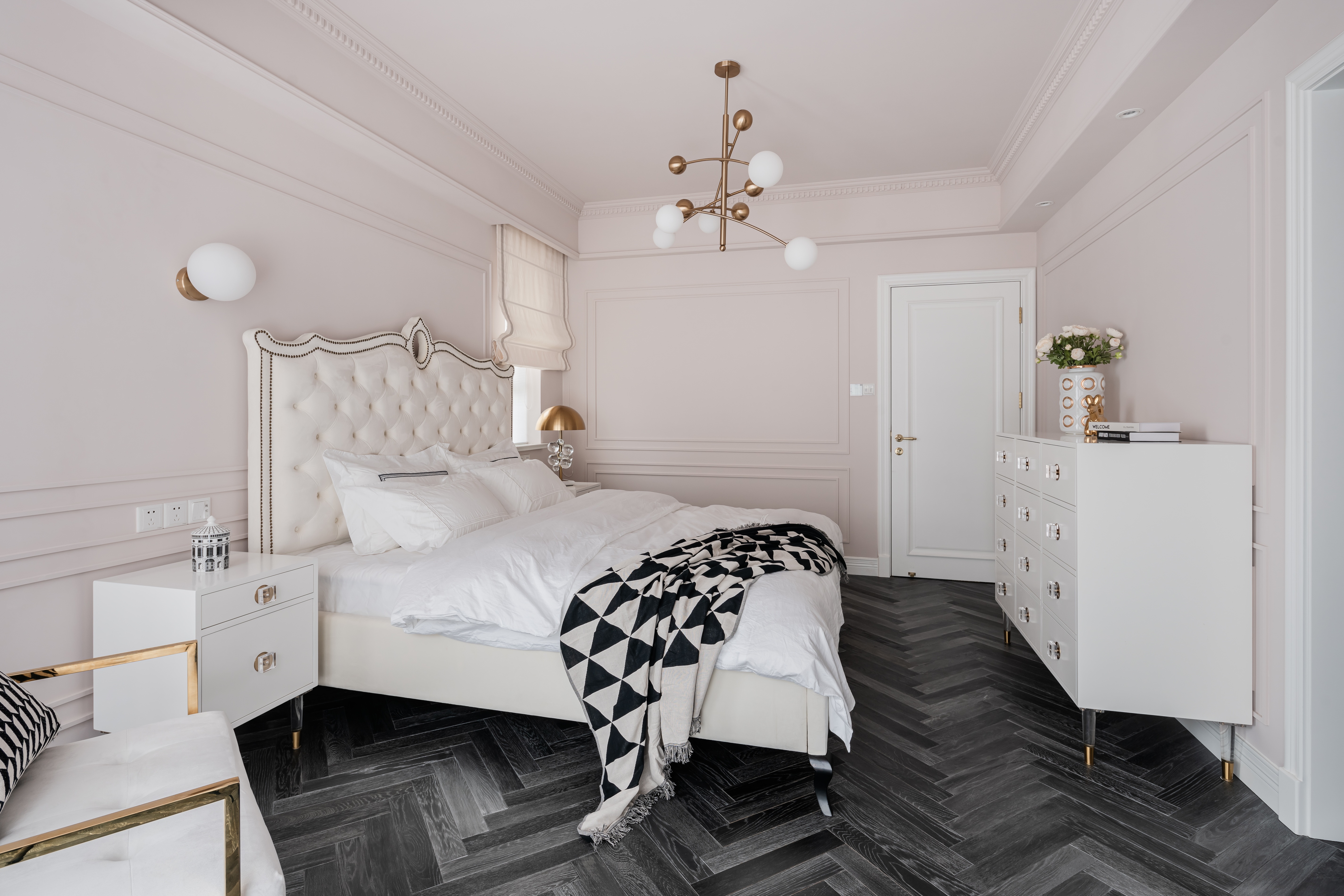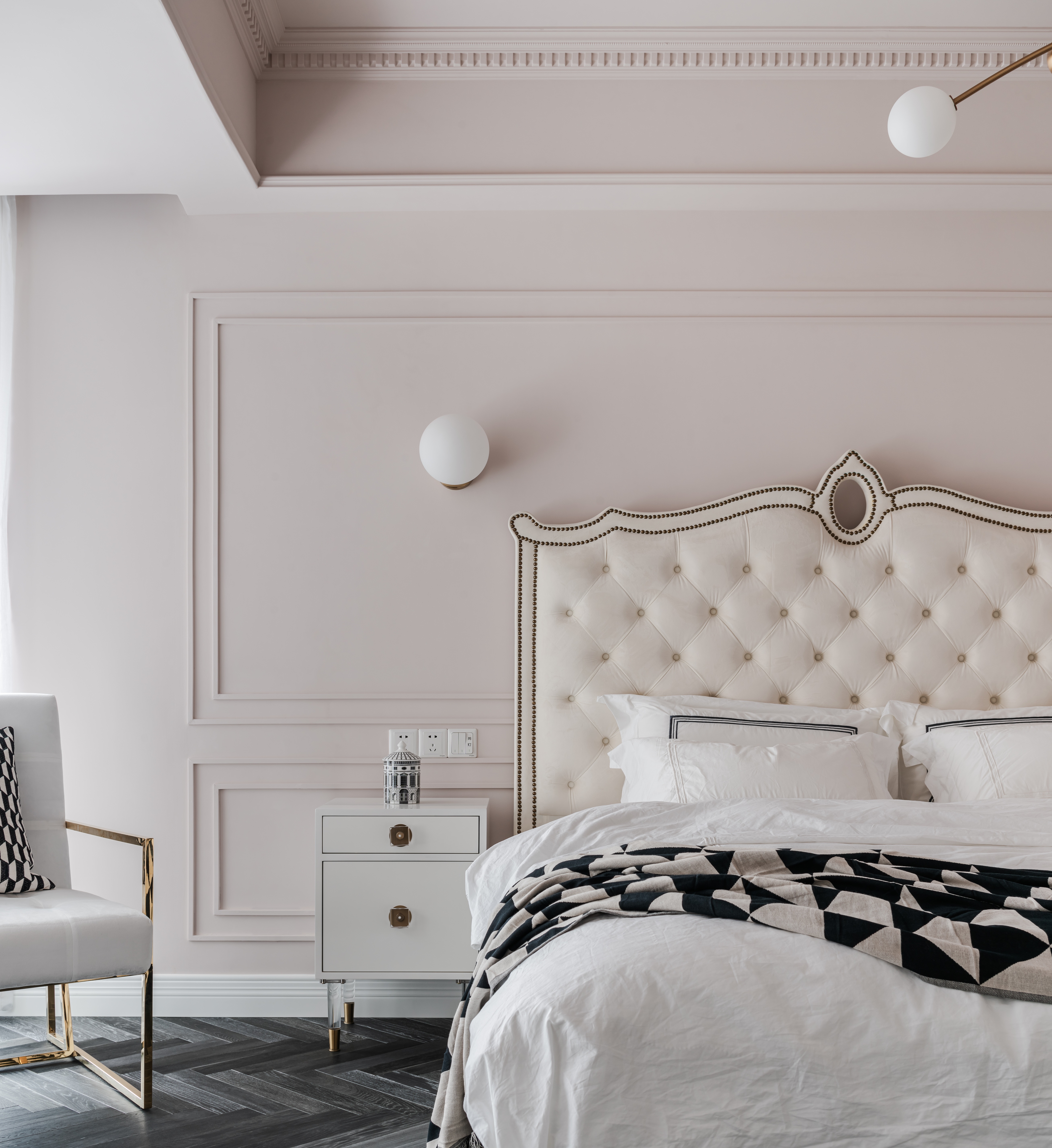 硬装上采用轻法式设计,轻奢质感用金色点缀,整体氛围精致大气。