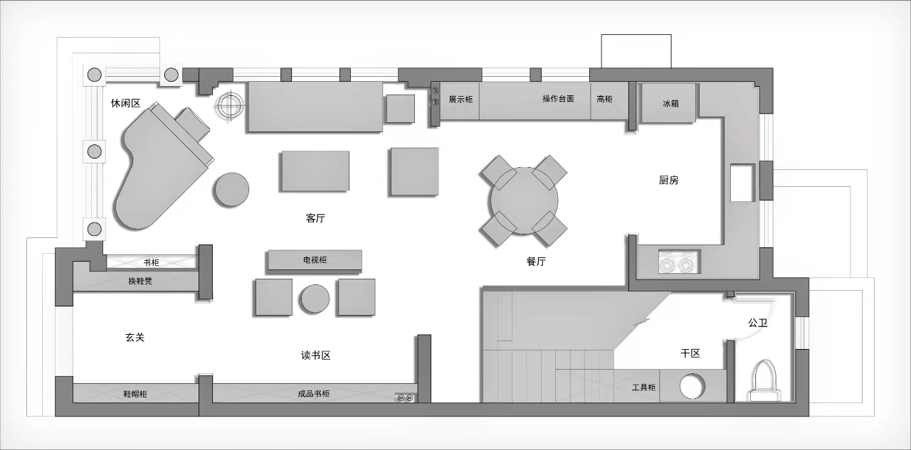 空间布局:布局上的核心创新是 “功能性重组与流动式渗透”。
