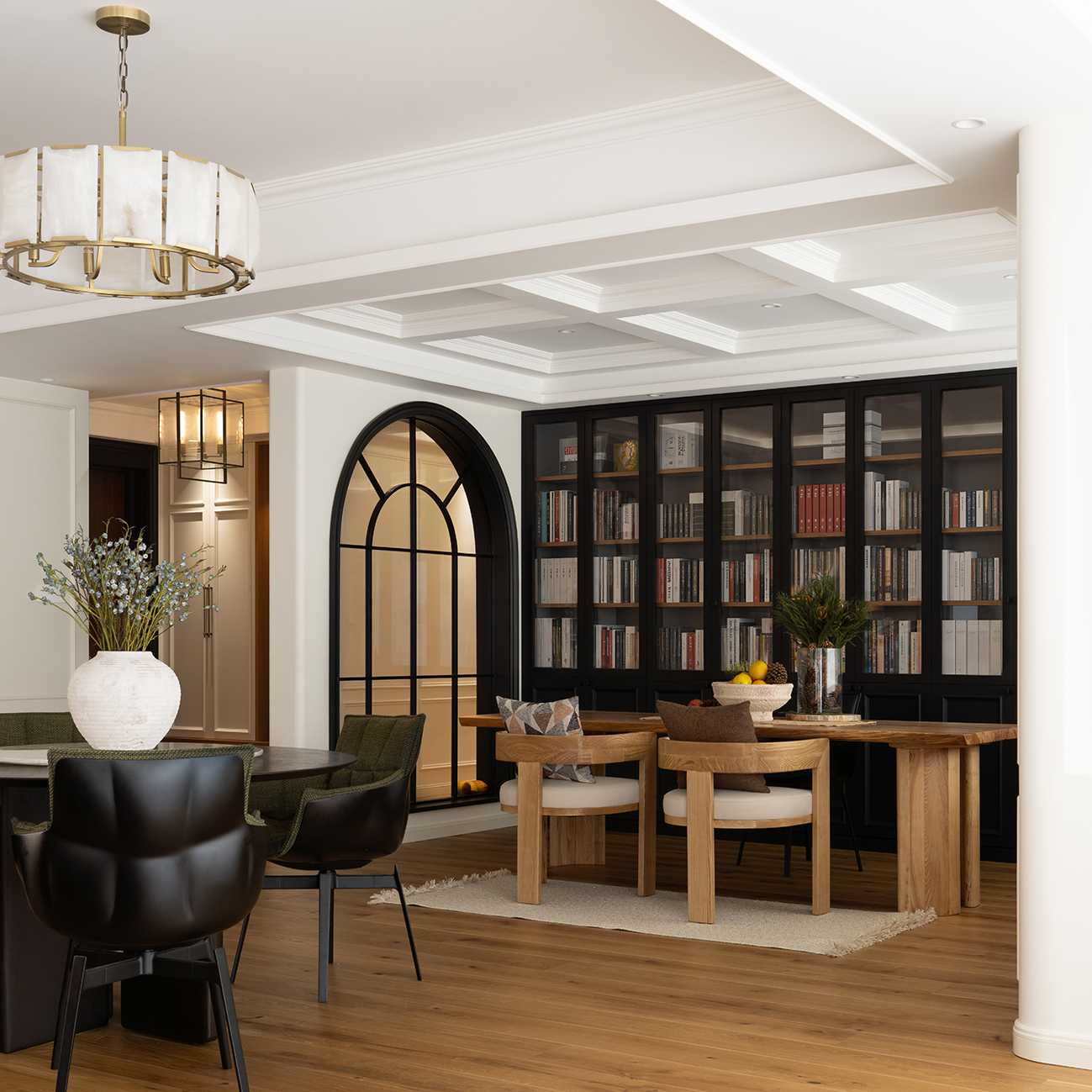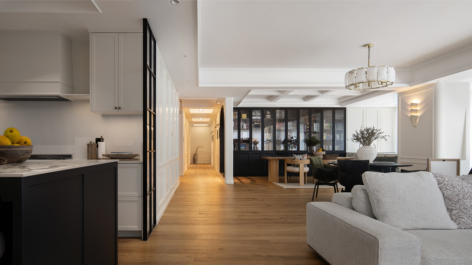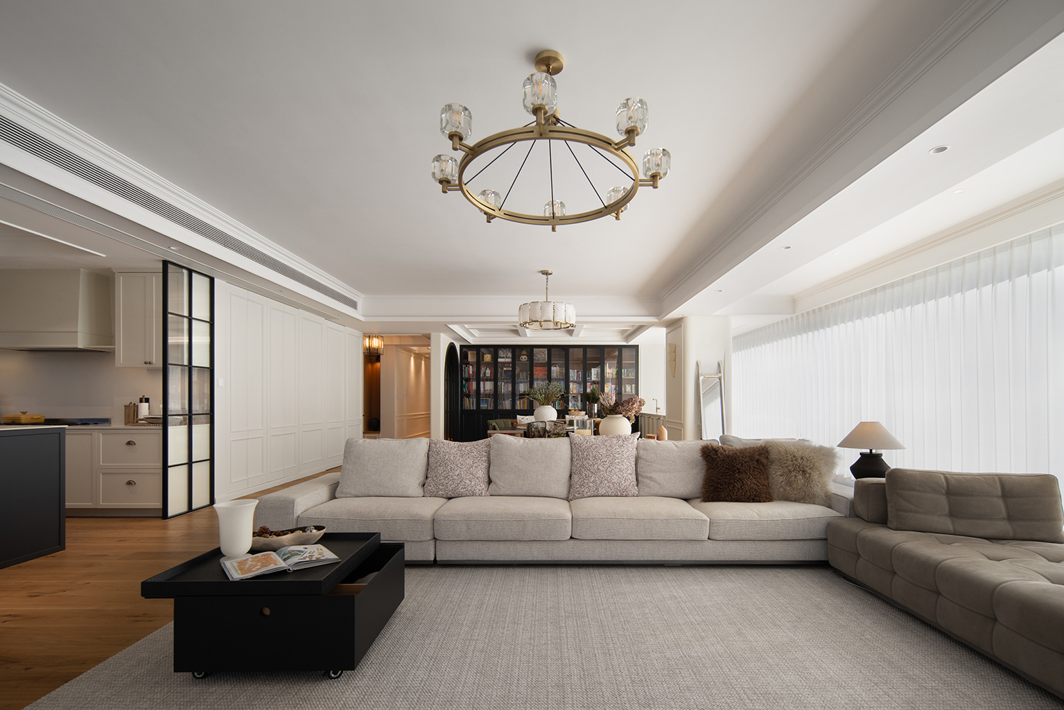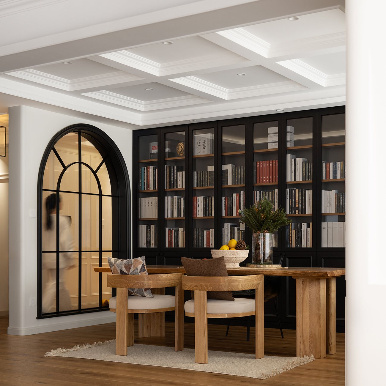 空间意境:在美式风格的基调上,我们摒弃繁复的装饰纹样,保留其经典的结构线条与标志性元素,并融合当代中国的生活习惯与审美需求,为业主打造一个既舒适自在、又贴合个人气质,不囿于固定风格标签的居住空间。