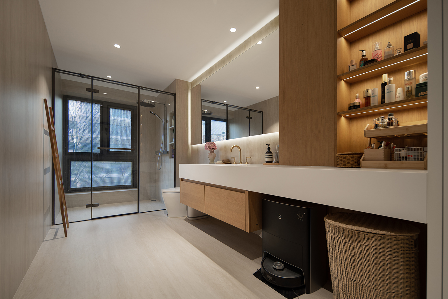 6、主卧区域将卫生间与衣帽间做开敞一体化设计,提升空间通透感与储物效率。 -