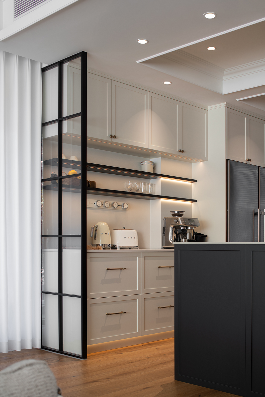 3、将部分空调机位的外部空间纳入室内,改造为厨房专属的储物与收纳区域,进一步优化了空间利用率。