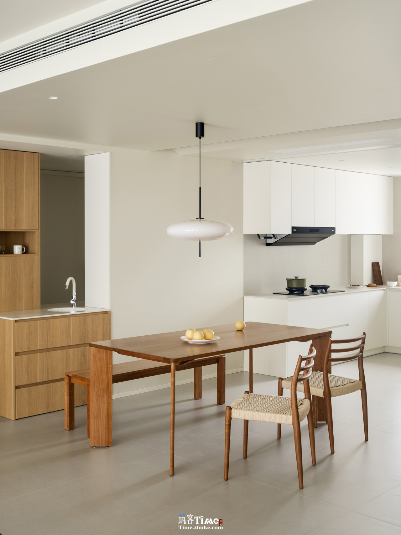 2.利用原有过道区域增加家政空间,以及餐厅的咖啡角功能,同时在视觉上狭长的过道变得开阔。