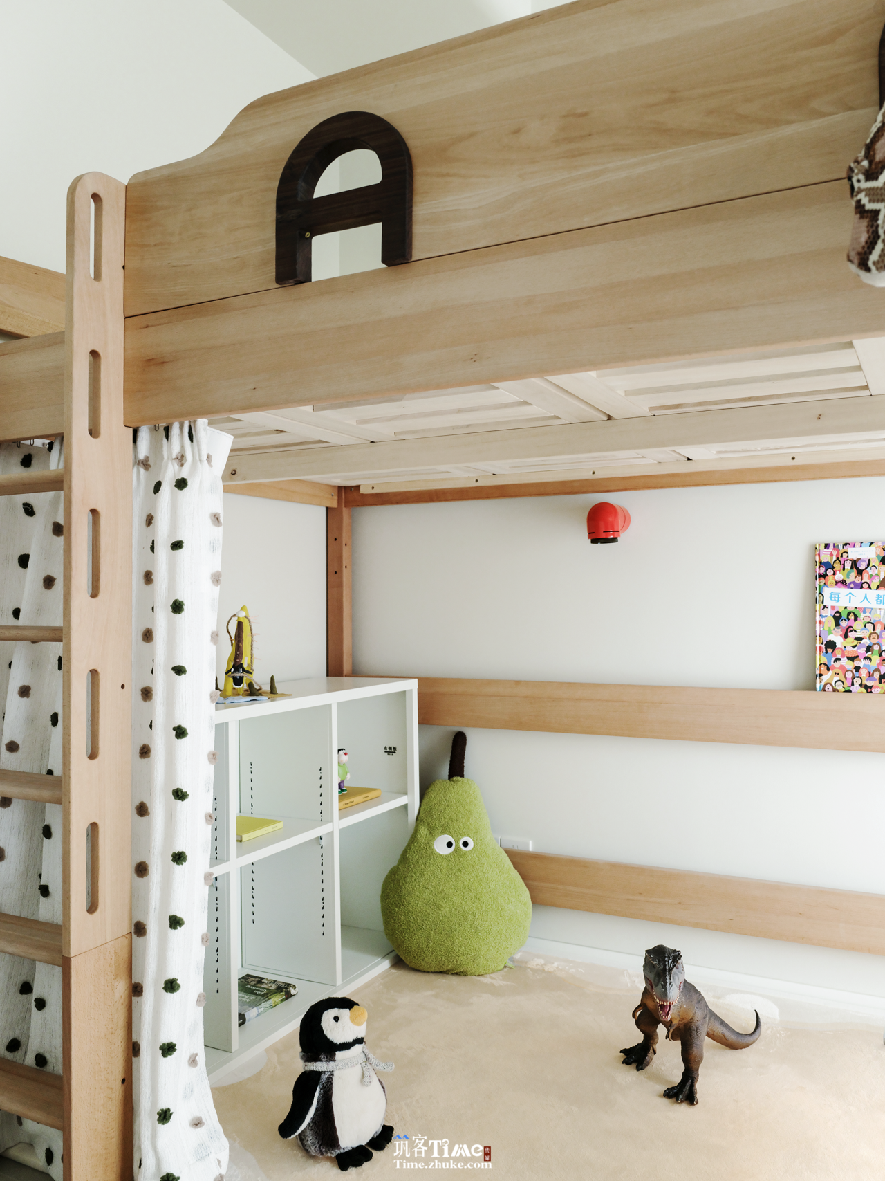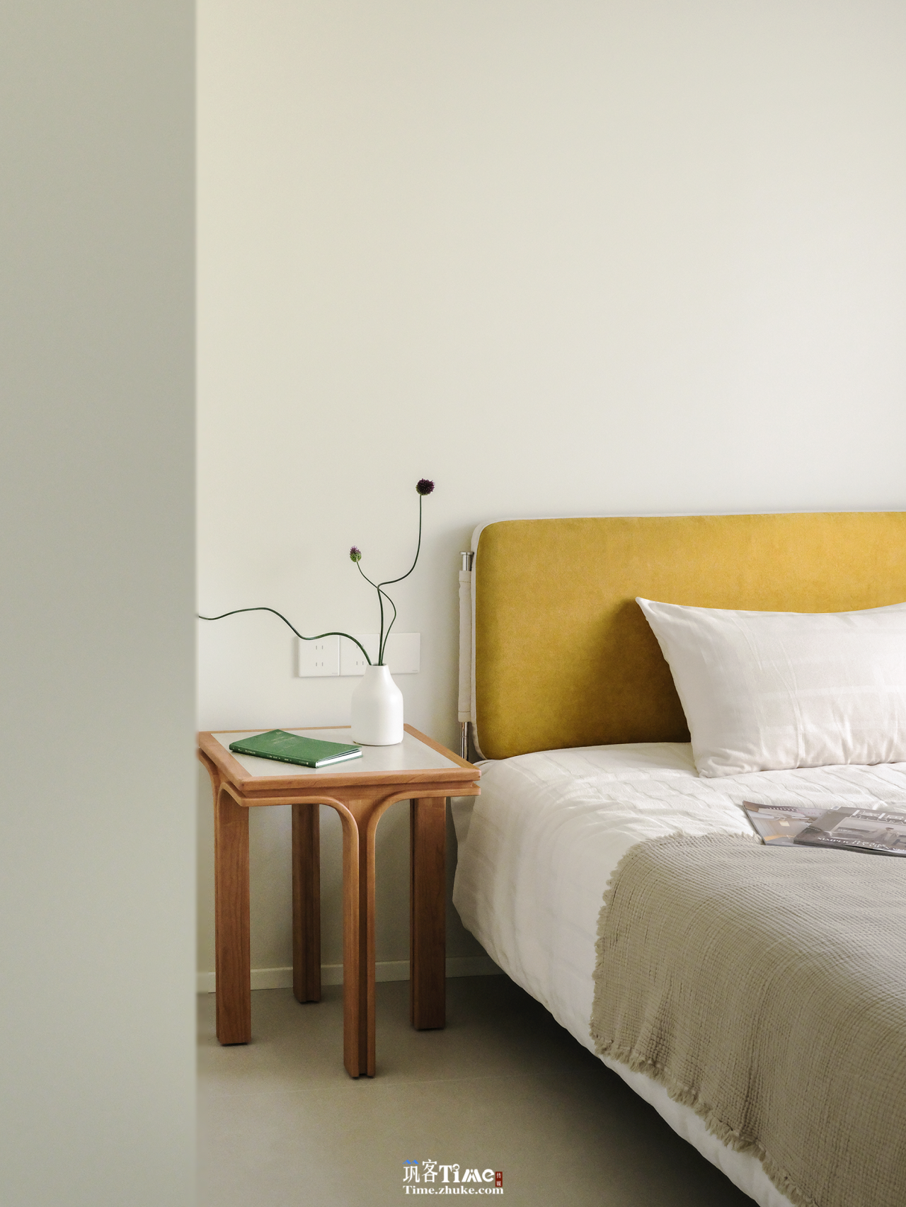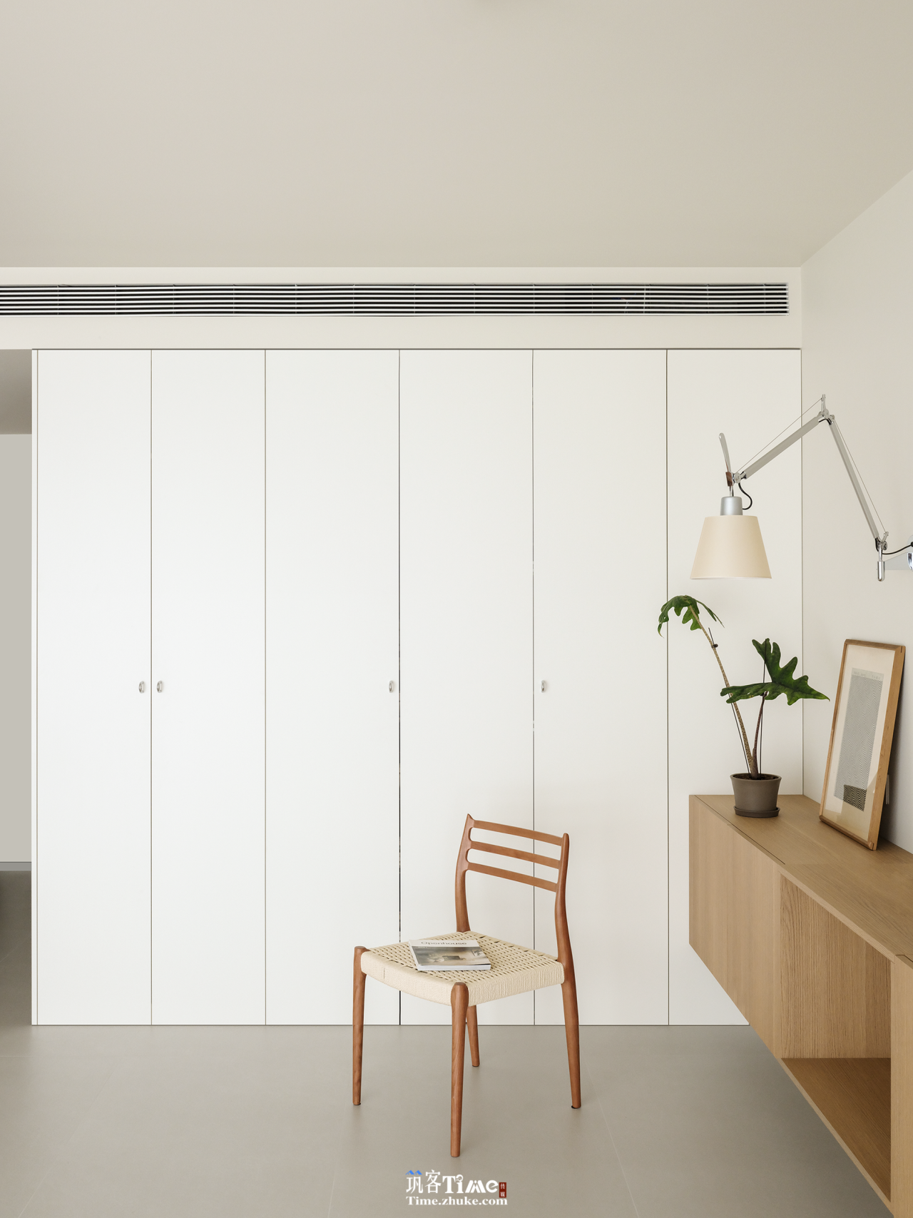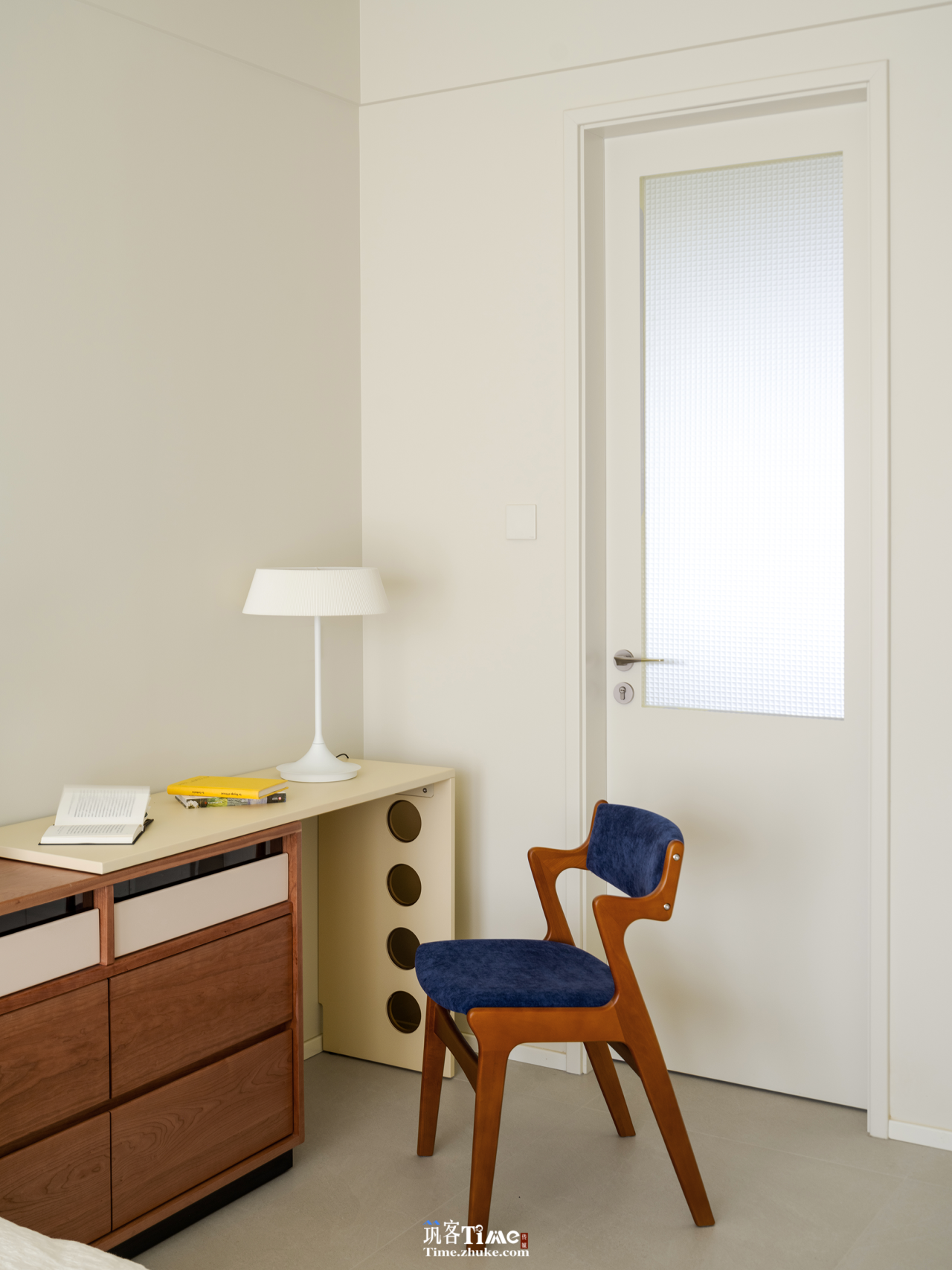 主卧的 “移动”,恰到好处的配合着空间的温柔重构。与儿童房相连的墙体,拆掉非承重部分后,重塑出一道 “凹” 型墙面,儿童房因此有了专属衣柜区域,主卧的柜体也与之以 S 形自然衔接,像是啮合效应,结合的严丝合缝。所有衣柜只定制柜门,内部嵌着金属衣架,既省却多余花费,又透着环保的巧思,空间格局也能随需求自在调整,让空间中的每一处线条的咬合,都形成生活与空间的默契对话。 -