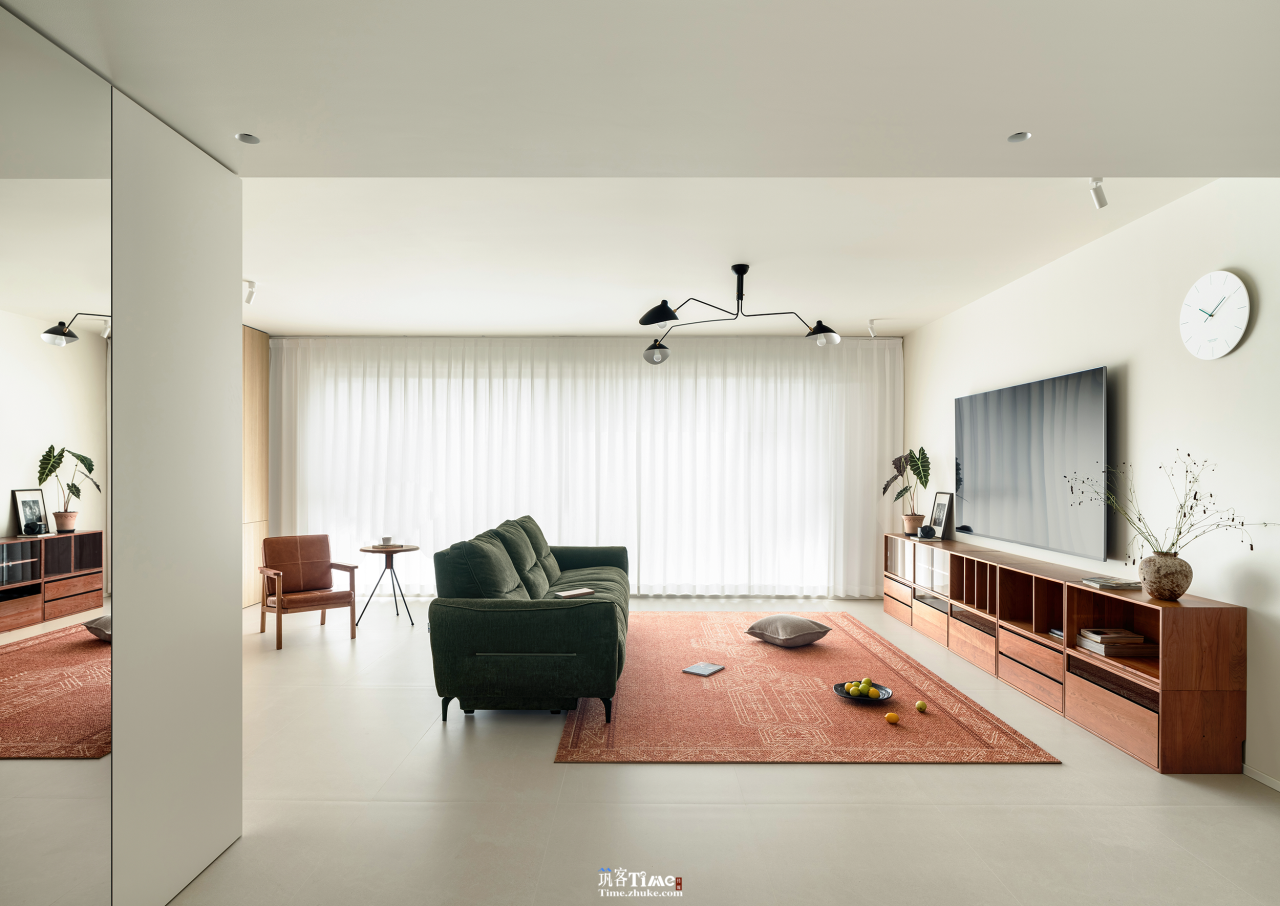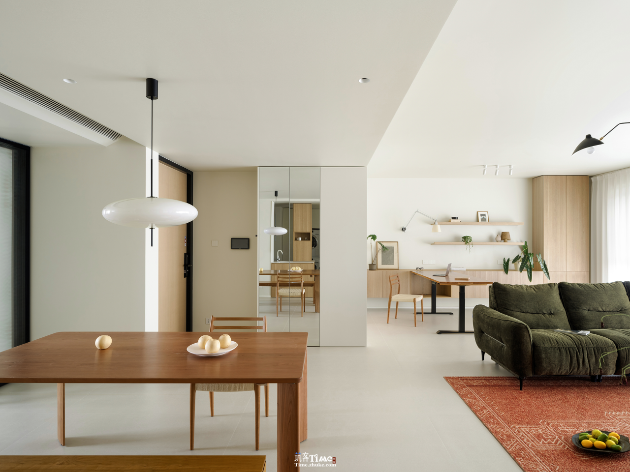 阳光漫过窗棂的客厅,是家的舒展地带。因其开阔,恰好匀出一角安放办公区,工作与生活在此温和过渡。硬装以简素为底,未加繁复装饰,客厅整体区域过低也没有增加吊顶,设计师便循着业主心意挑选家具,用几笔吸睛的色彩与之呼应,悄然晕染出 “简约却不简单” 的气韵,营造出与生活长久相处的舒服格调,让风穿过家的缝隙时,都带着不易察觉的芬芳。