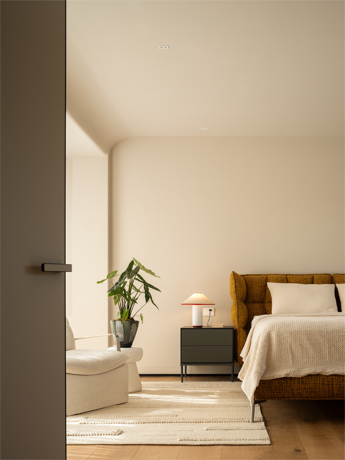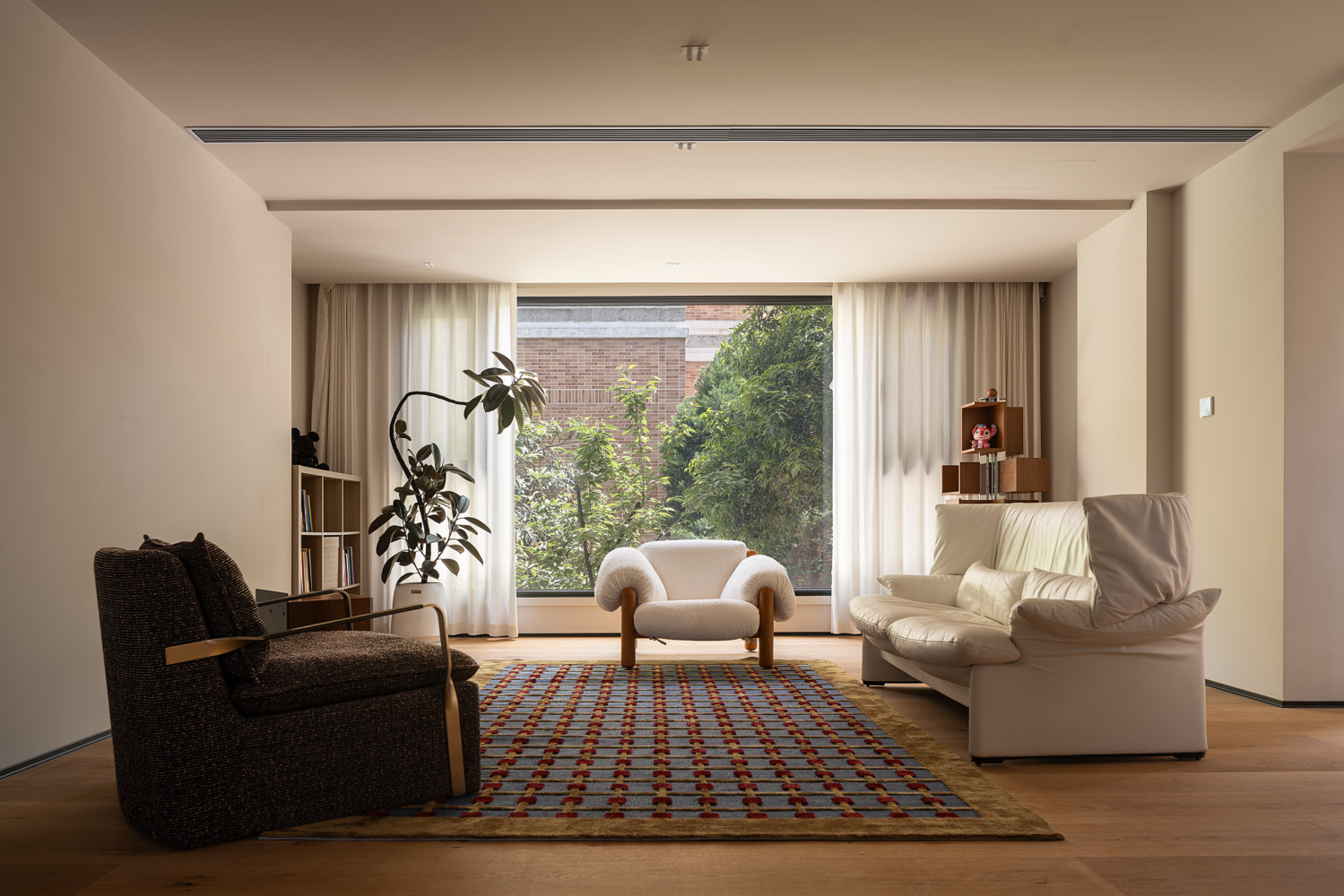用户体验:设计的终点是“细节”,设计的预知是设计师对屋主生活的深度分析推演而来,因此会多一步留白,给未来的生活留出成长空间,比如,装修之处,屋主是两个孩子,装修好了,迎来的三胎宝宝,“留白”的空间成为有效的预知,起居厅兼具开放式的休闲功能,充足的采光和老树成为空间的四季风景,家人闲坐、灯火可亲,生活的美满和松弛感在这里具象了。