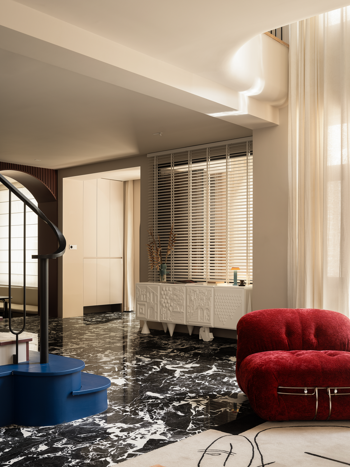 项目定位:本案,屋主购置的已有20年房龄的老别墅,原始300㎡,设计改造后拥有450㎡空间,老建筑部分外立面,工艺细致,肌理美感被保留,空间的本质上,是设计师与屋主共同完成的生活宣言,通过精准把握不同家庭成员的复合需求,在老建筑中植入弹性生长基因,最终实现功能、美学与情感的三重共鸣,色彩碰撞,是全家不同的性格互溶,老树新枝间流转的不只是光影,是在眼下、手中、成为独特的“自我”。
