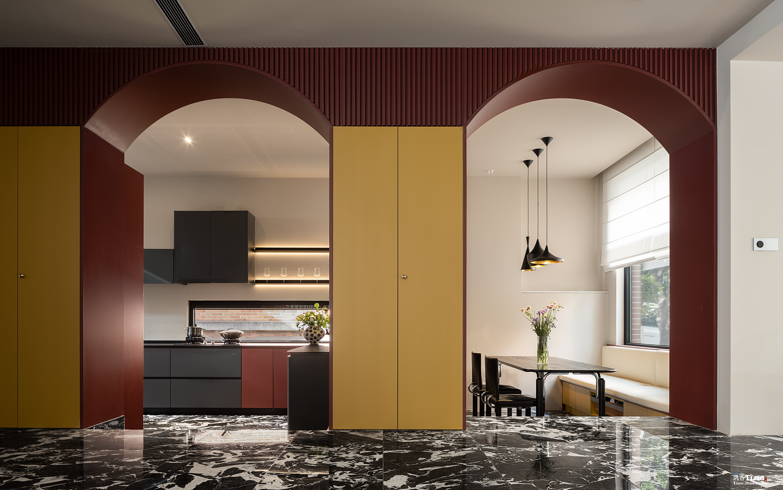 小与大的设计魔法在多次家访相处的过程中,发现孩子们非常喜欢卡座,设计大的景观窗,满足孩子们的卡座需求,卡座的形式为厨房释放了大量空间,这里成为“家庭故事”的集散地; -