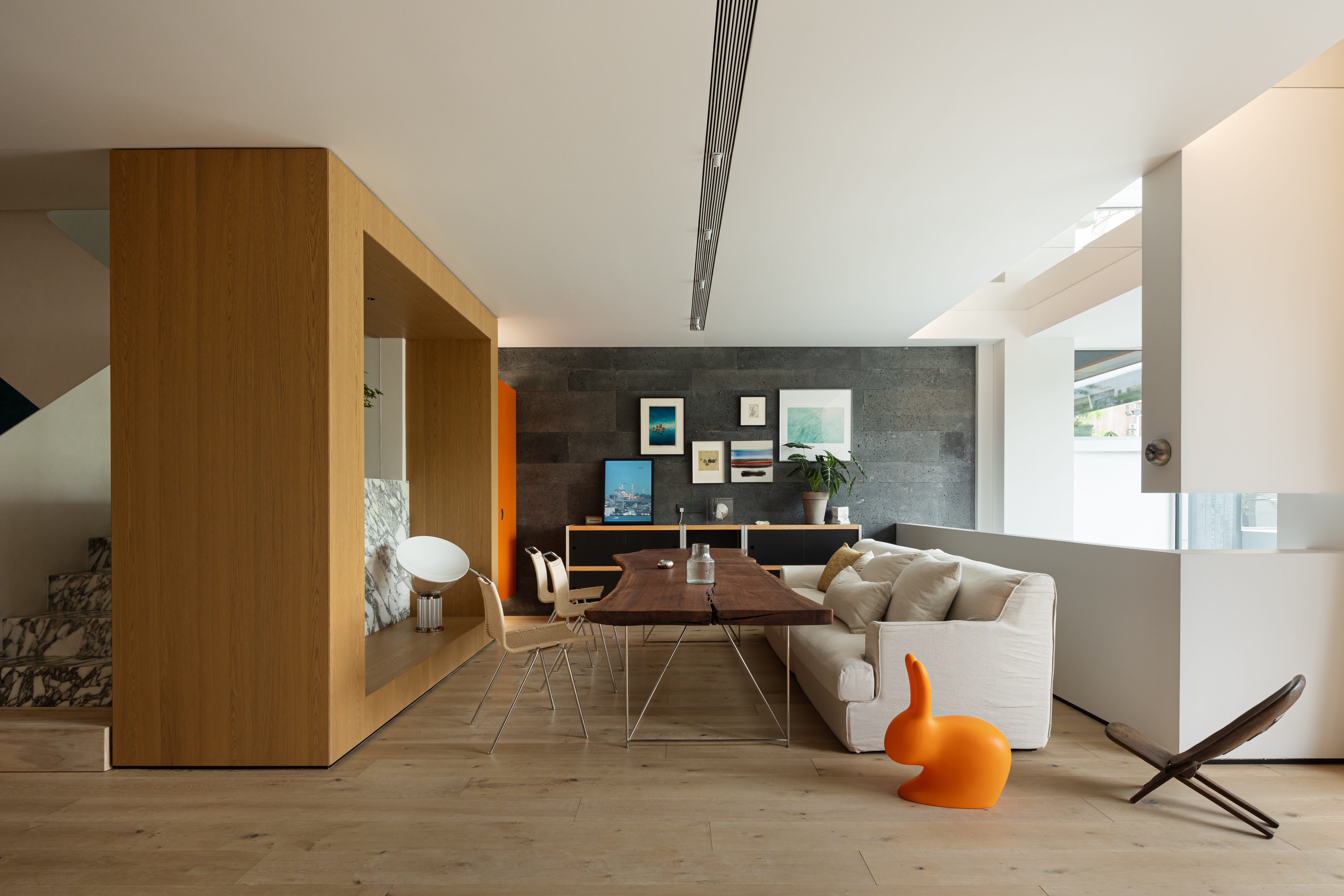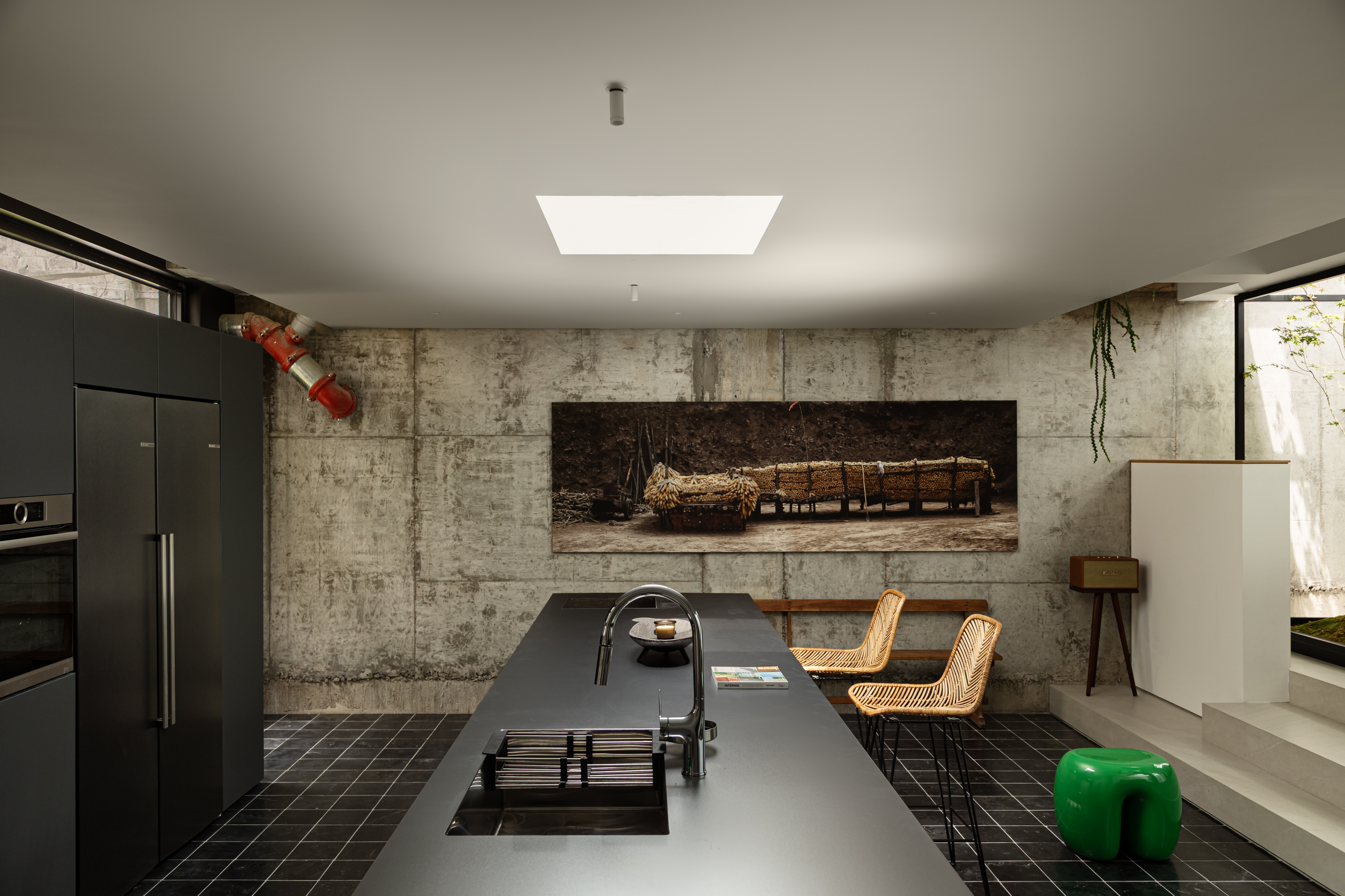 本项目打破传统别墅的空间价值序列,将家的核心从传统的客厅转向充满阳光与生命力的开放式地下空间。本案为一个热爱烘焙的业主量身打造的四口之家,设计并非围绕常规的客厅展开,而是以女主人热爱的烘焙事业与家庭互动为核心,将充满阳光与生命力的开放式地下空间打造为家的情感枢纽。