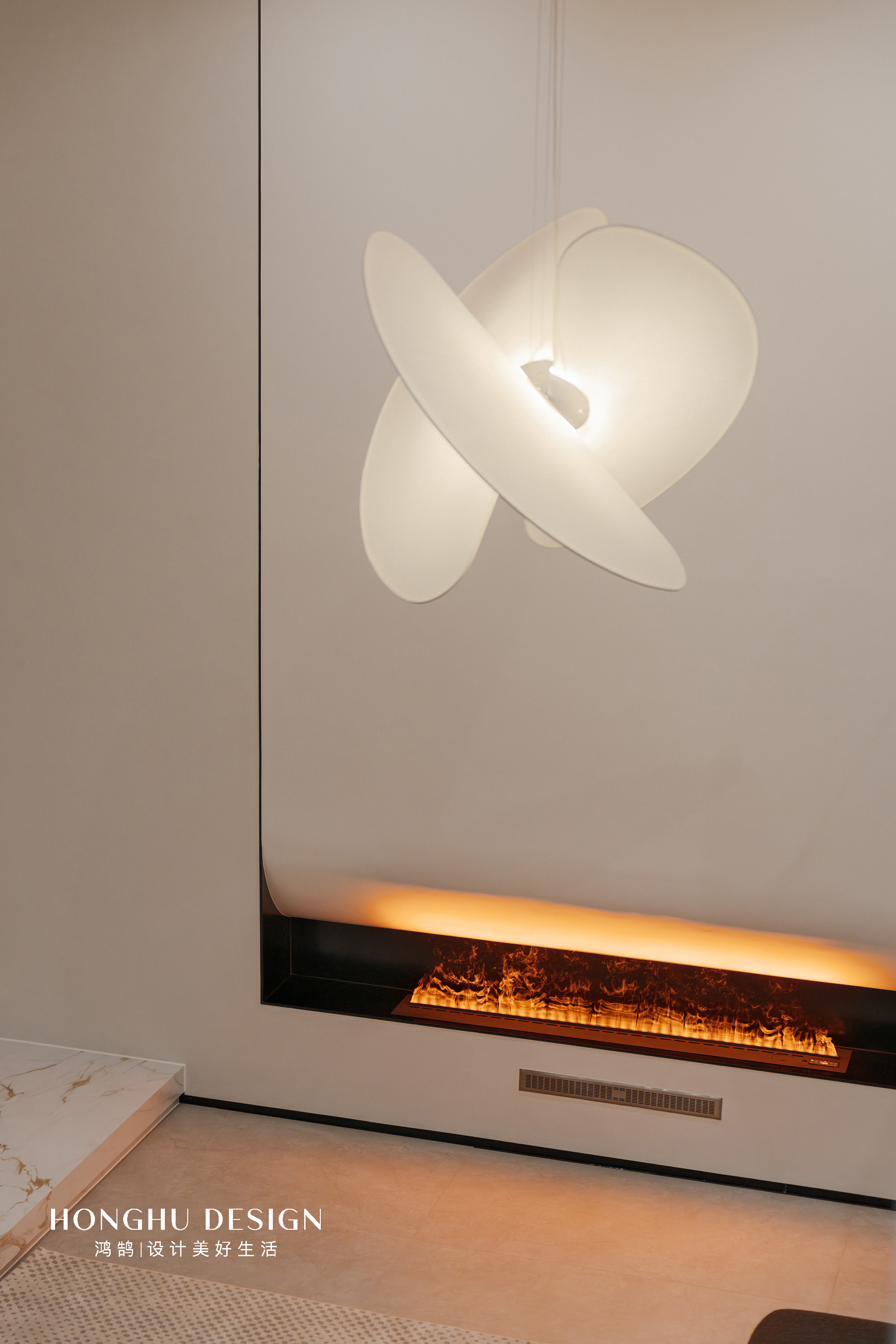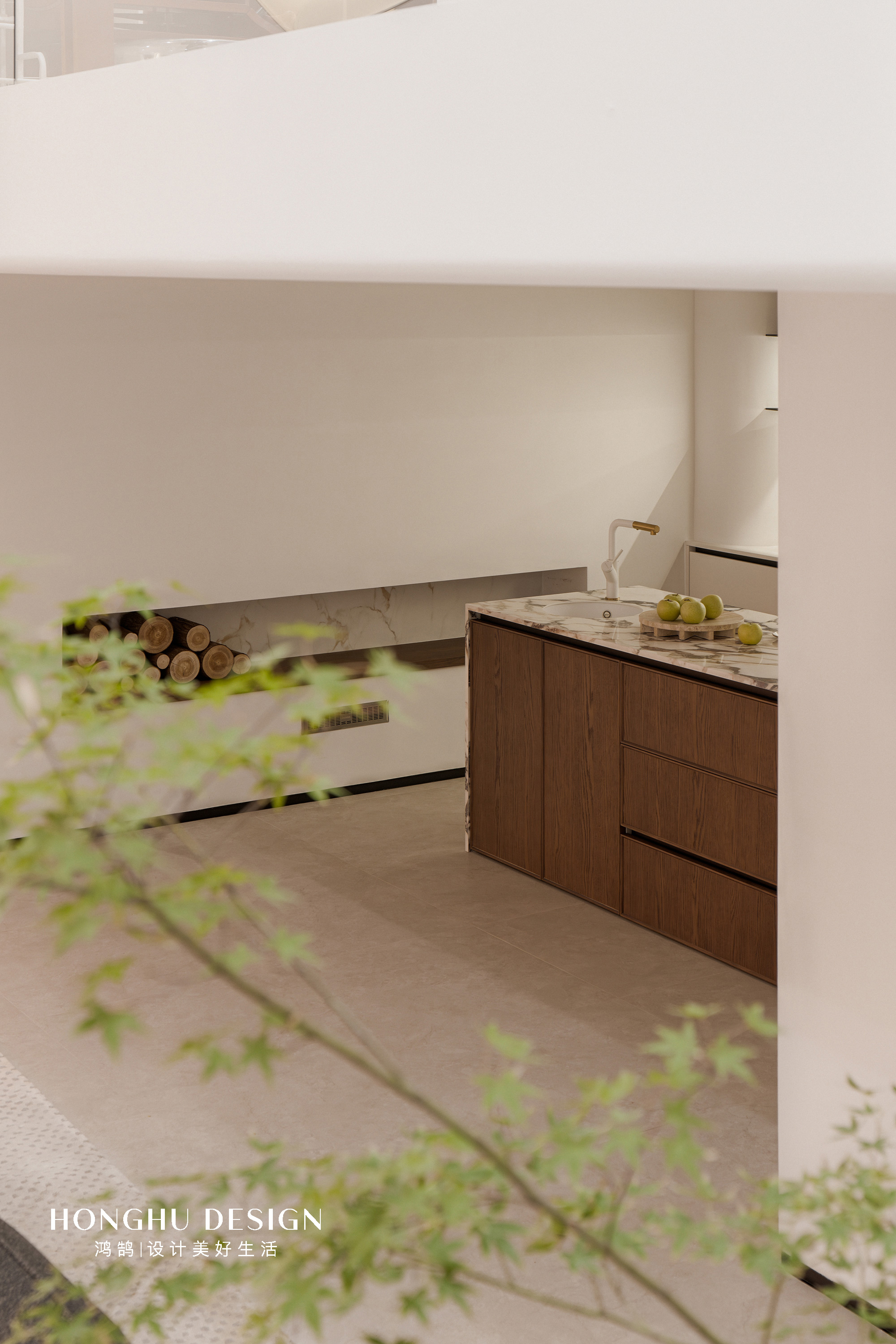 各个空间都有一个不一样的视角,都是半打开的状态,没有做封闭,而且设计师还利用了造型墙,使得每个空间望去都是一种风景的状态。