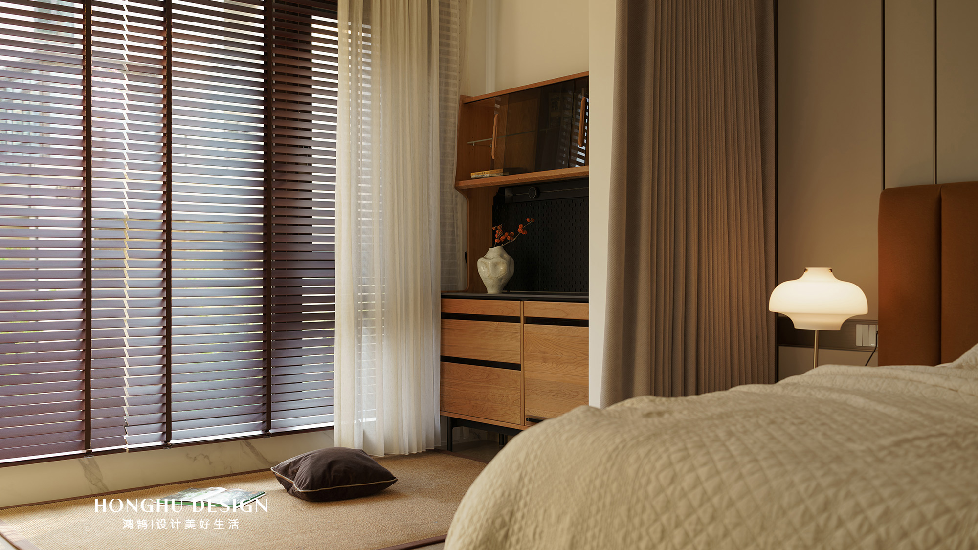 业主是一个非常懂得生活的人,空间里很多软装都是来自于业主之前家里比如名品灯具/床头柜还有一个电视柜都保养的非常好。即使当下使用也是毫无违和感。
