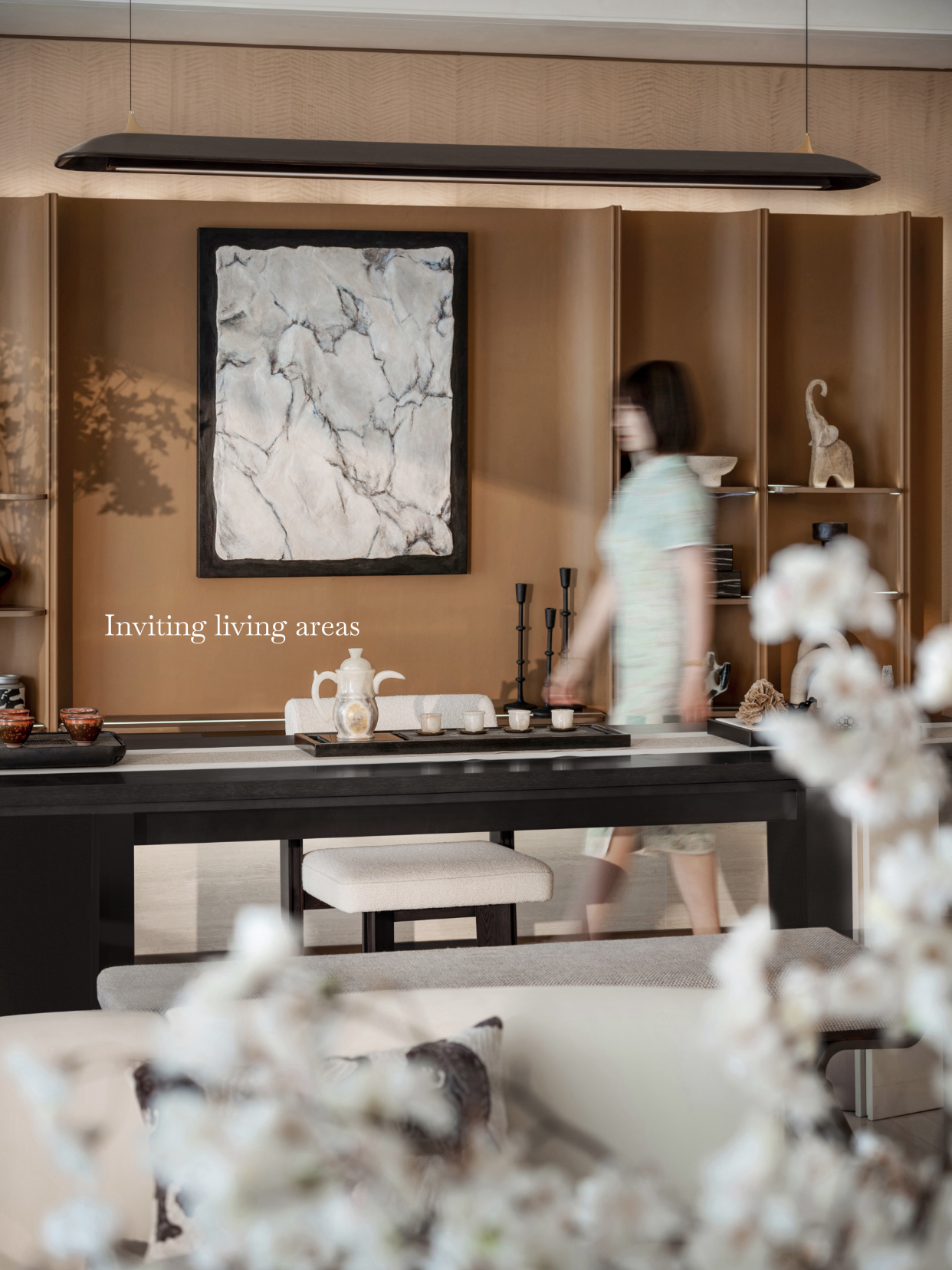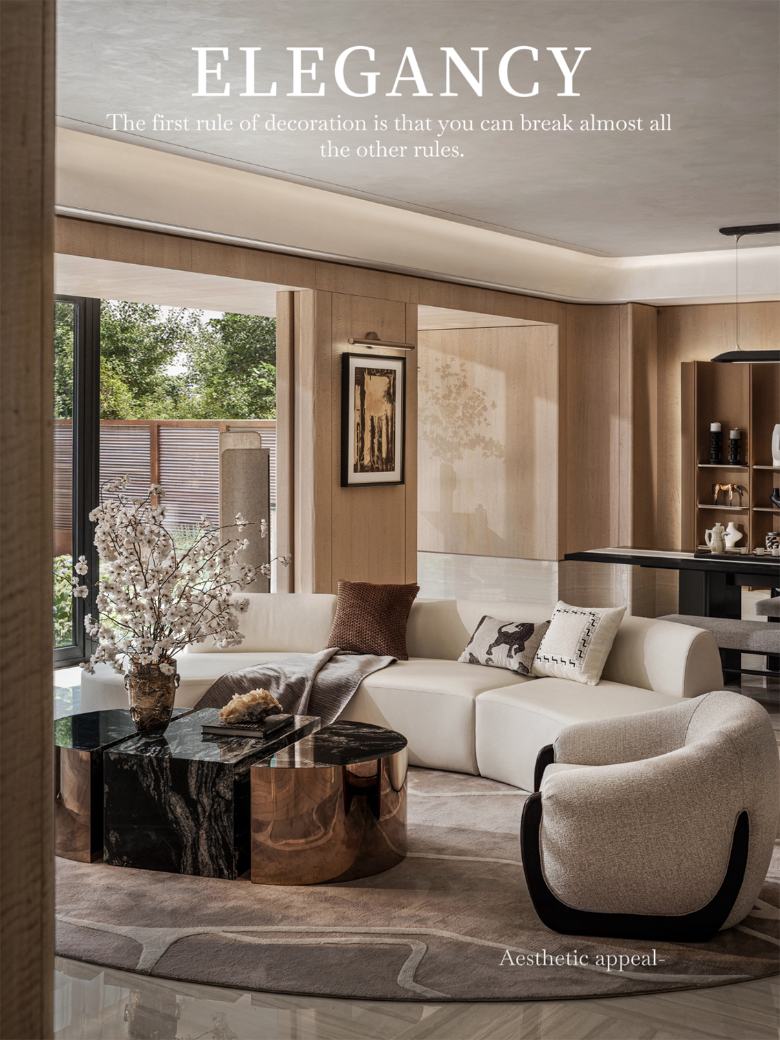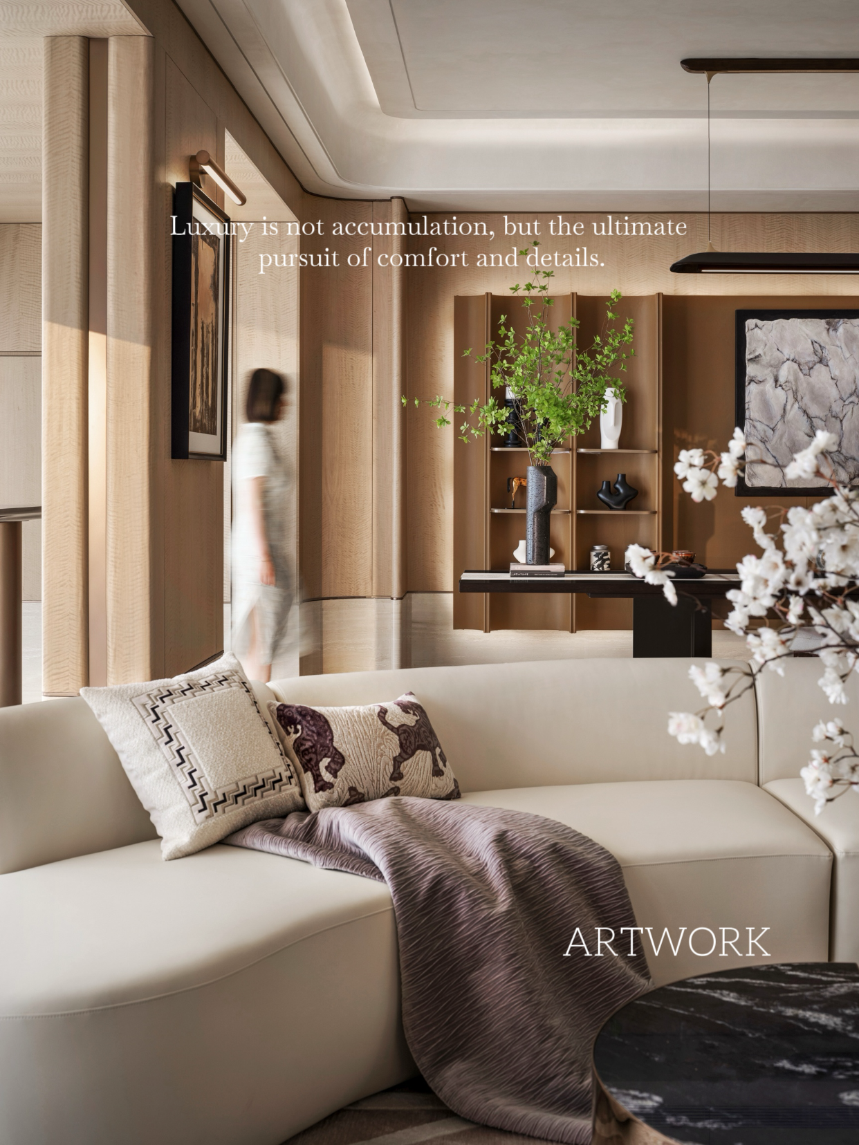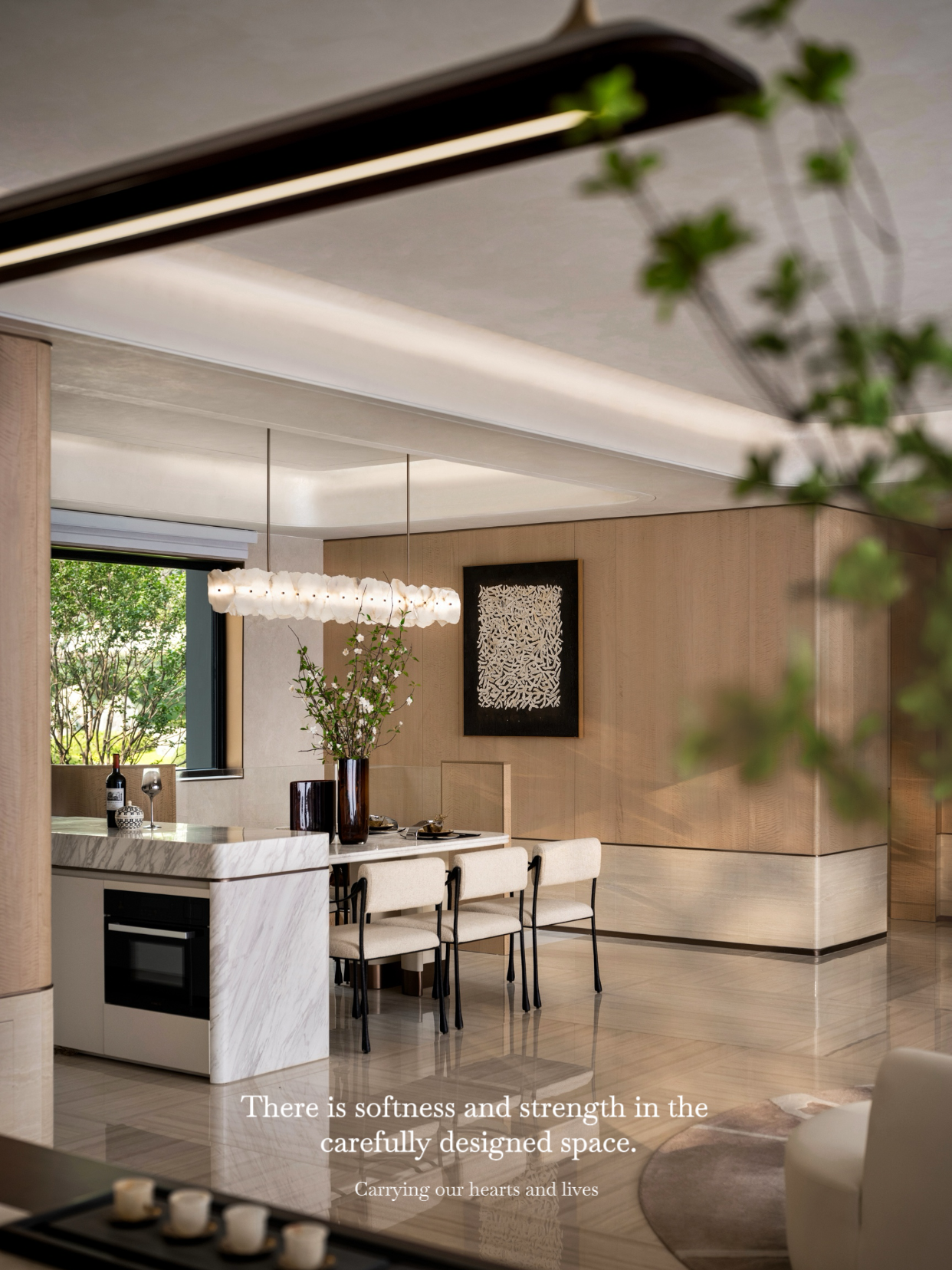 空间意境:奢华一词不再只和金钱、品牌、消费直接挂钩,而开始和时间、家庭、秩序有关。家的灵魂,始终来自住在里面的人,所以我们的设计不止于空间,而是全面思考,从空间骨骼到每个家庭成员的生活方式,回应当代精英阶层的生活需求。