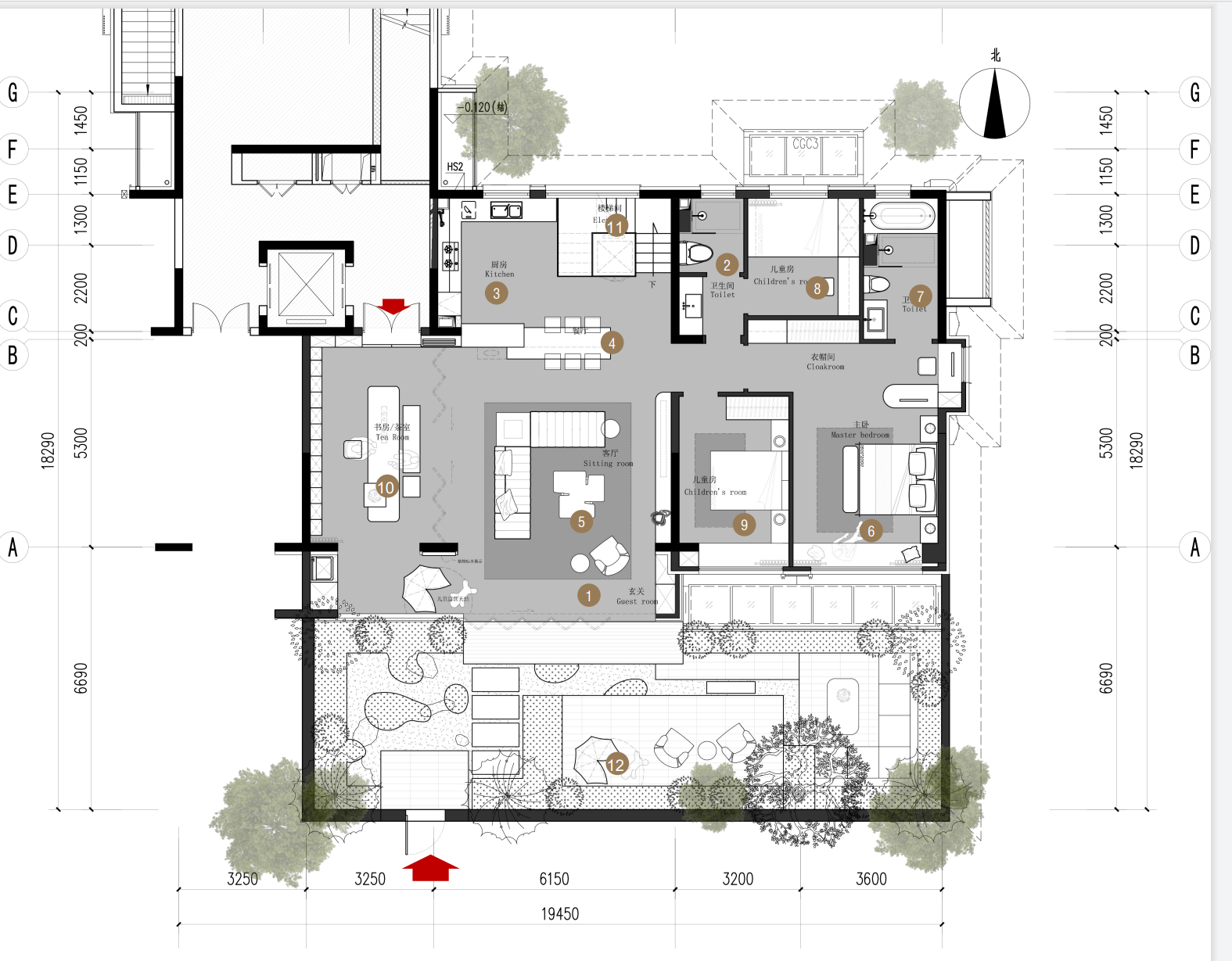 空间布局:所以在最初平面阶段,我们重塑了整个空间的居住形态,把原有客厅与卧室的窗户改成了一个4联动推拉门,可以想象一下,当门扇完全打开时,客厅与庭院瞬间化作浑然一体的生活场域——清风穿堂而过,阳光肆意洒落,真正实现了“客厅即庭院”“庭院即客厅”的通透格局,让自然与生活无缝衔接。
