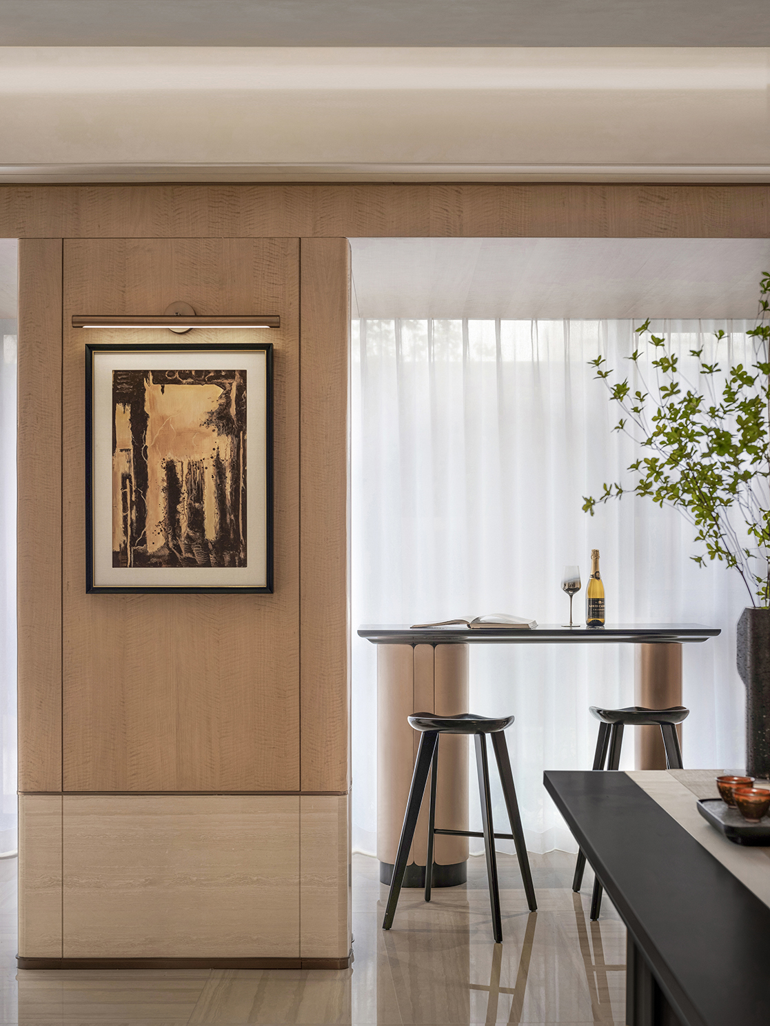 项目定位:我们意在诠释天津的神韵与风骨,而非浮于表面的符号。她的摩登雅致与弄堂深处的烟火气,都缱绻于设计的肌理之中,空间气质是慵懒而从容的,是一处让生活痕迹自然生长,而非被风格定义的灵魂栖所.