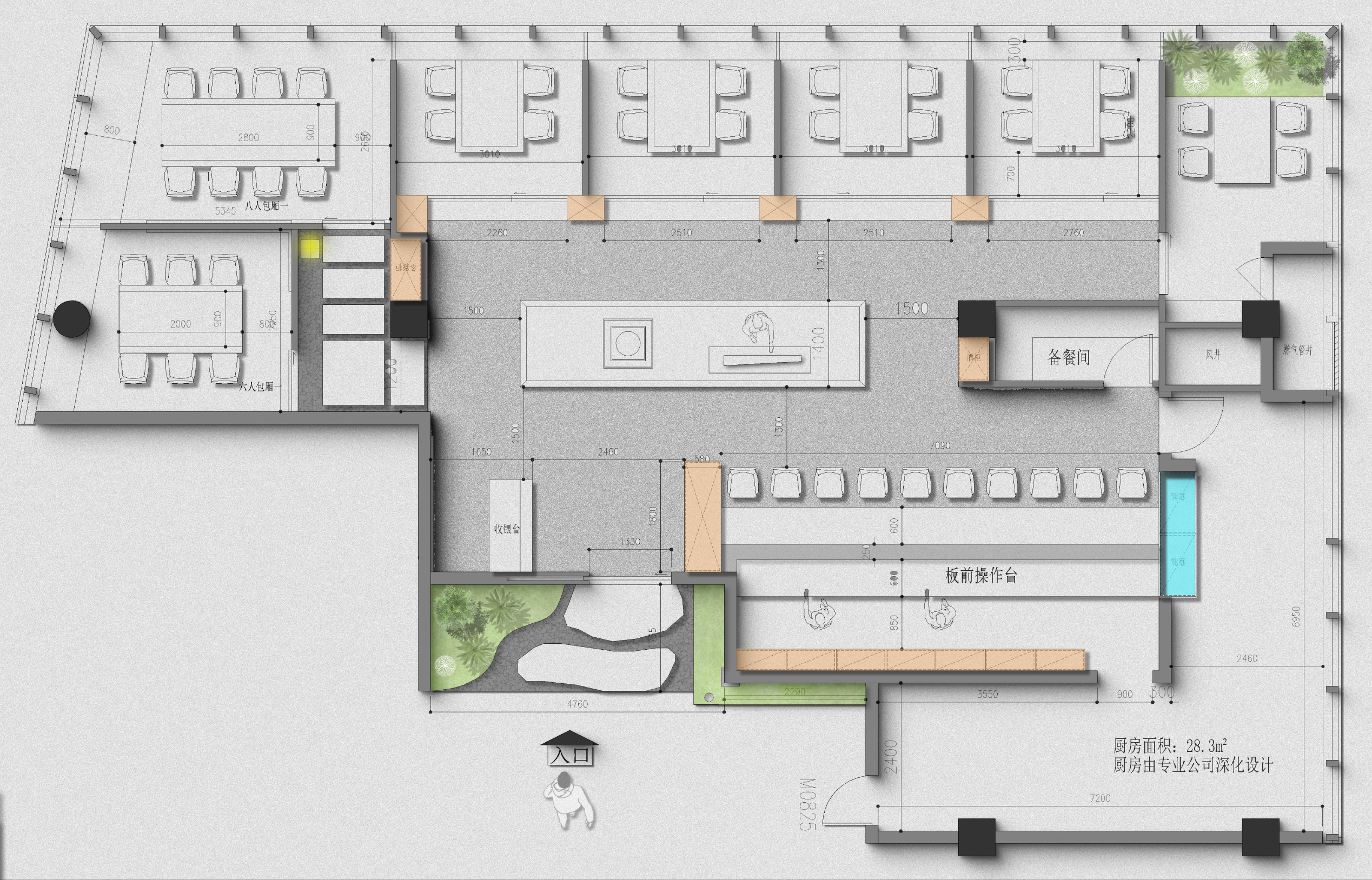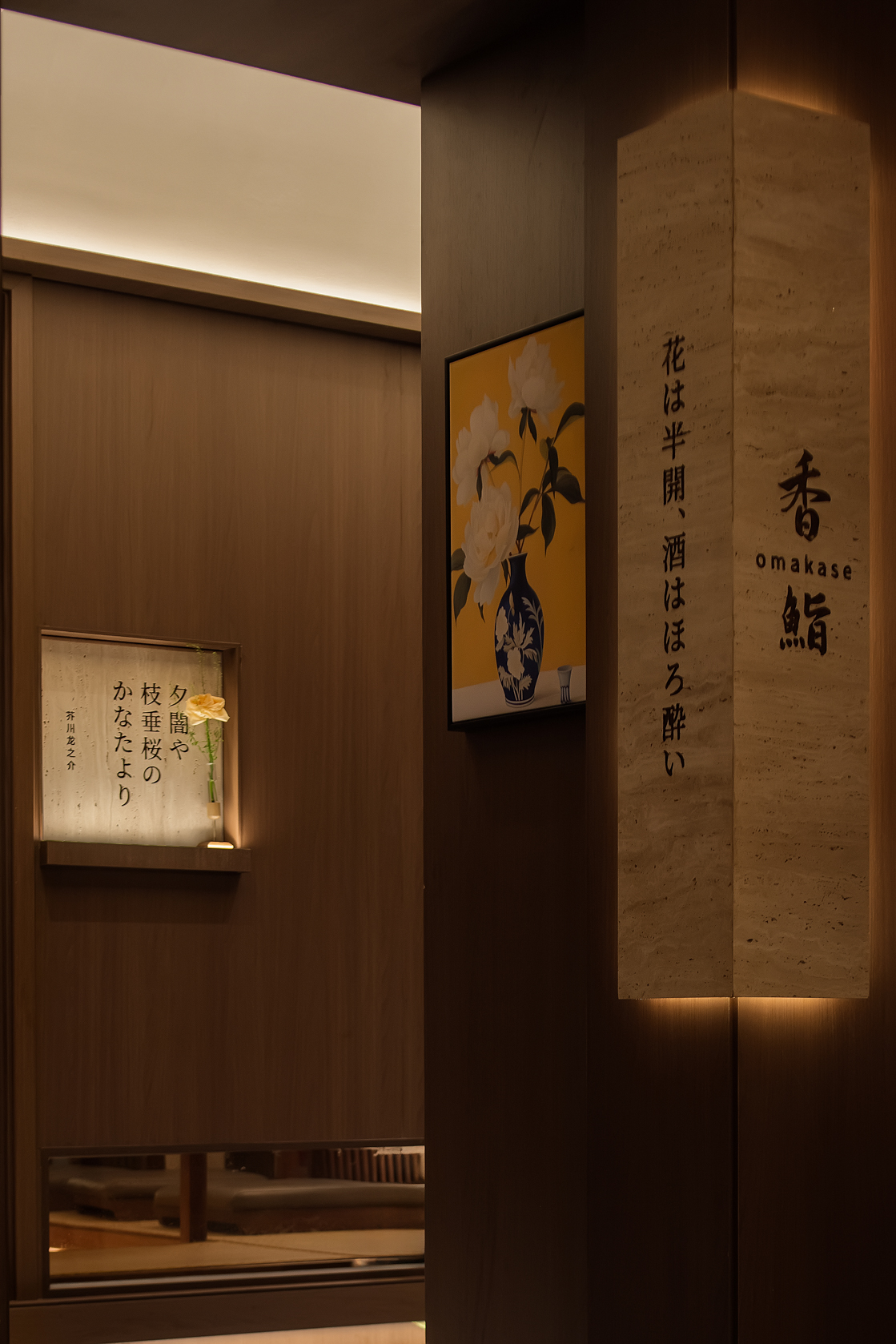 项目定位:项目总面积为220m2 小而精致的店内空间以日式高端商务接待,高端食客品鉴为主,就餐区分为omakase板前区和包厢,没有设立散座区,这也对应着我们的设计策划和定位