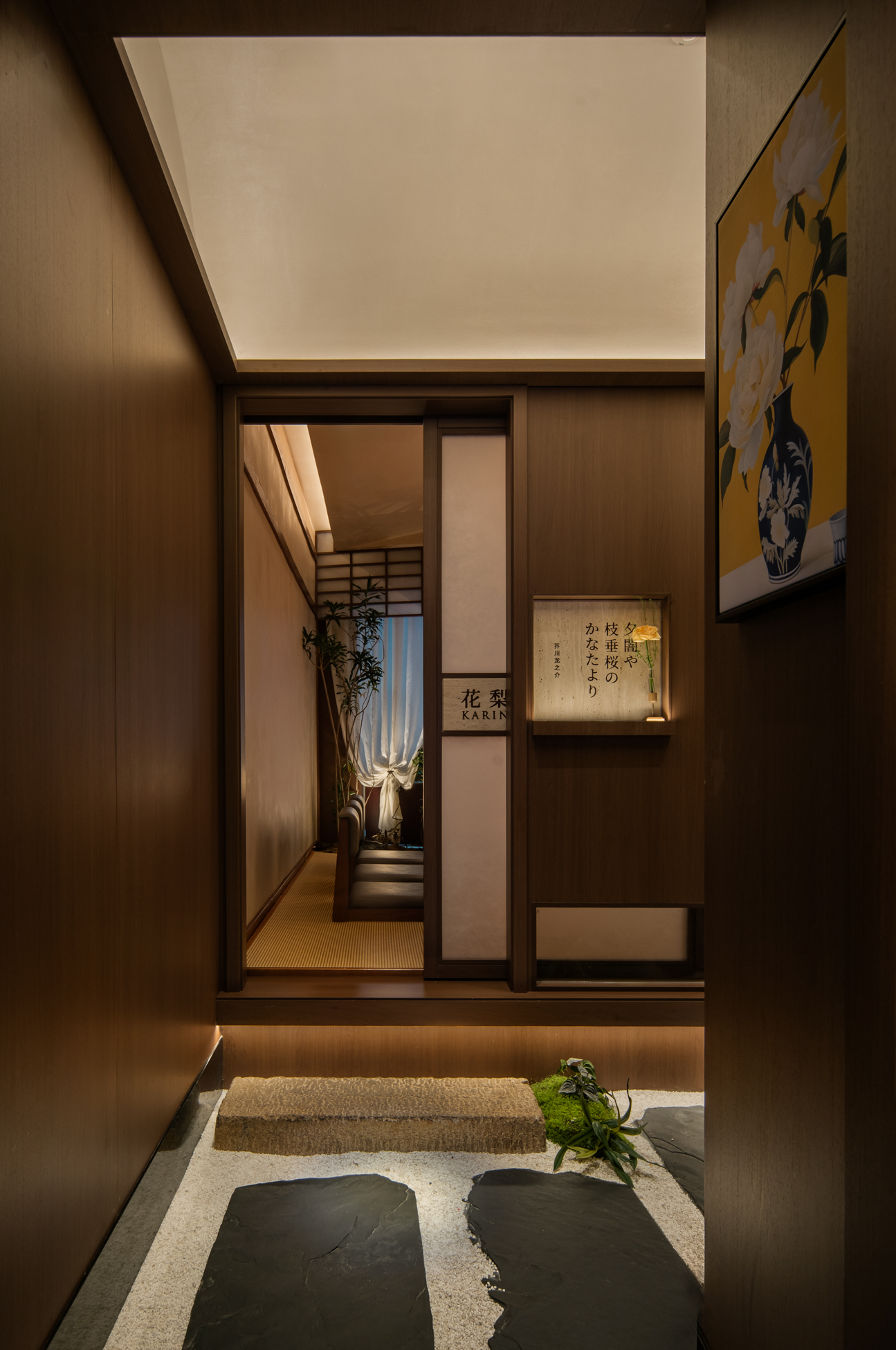 本设计深度萃取日式传统美学精神, 融合现代餐饮空间的功能性需求, 打造出兼具文化底蕴与体验感的日式餐饮空间。 摒弃刻板的日式元素堆砌,转而从空间叙事、材质肌理、光影层次入手, 让食客在一餐一饮间, 沉浸式感受日式美学的内敛与精致。