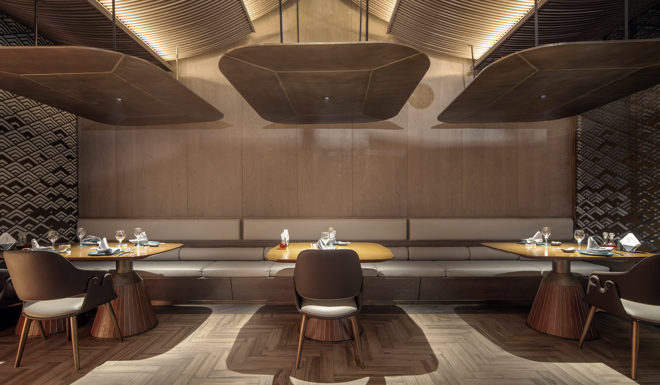 设计选材:可回收金属及玻璃,运用具有防火品质的装饰材料,保障环境安全