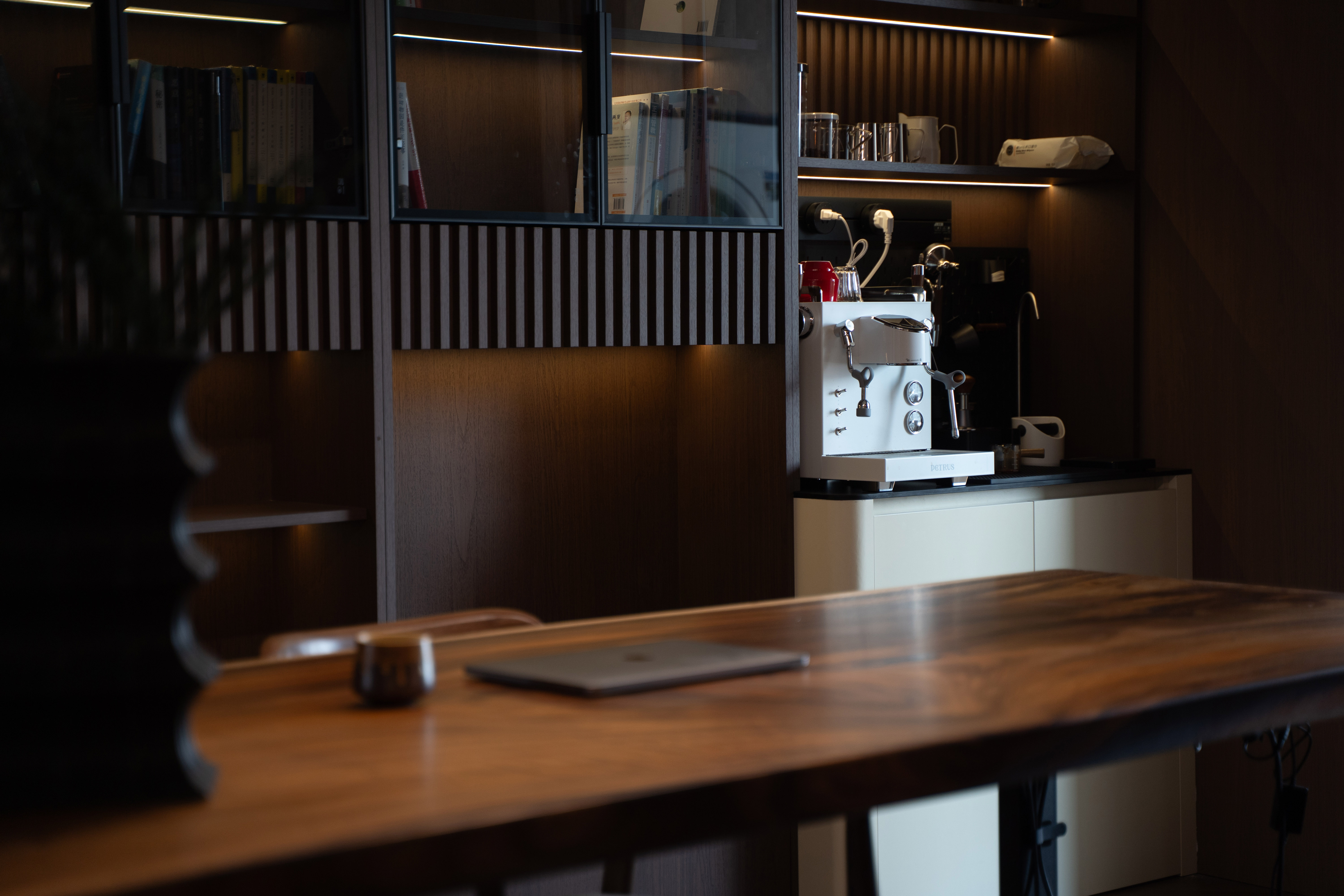 风格基调:沉稳、温润的大地色系(米白、深棕、胡桃木色)为底,点缀墨绿、酒红,营造静谧复古氛围。