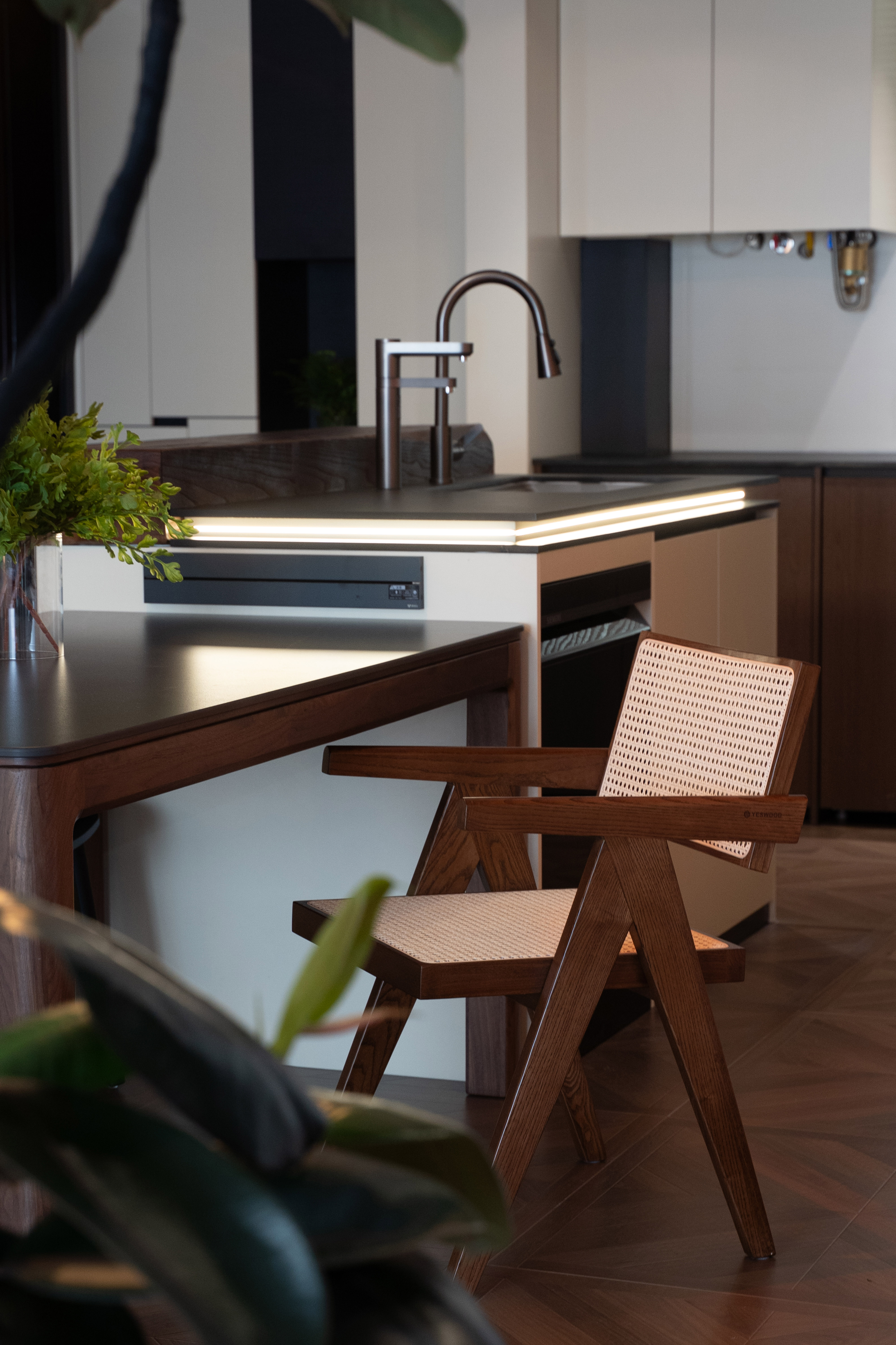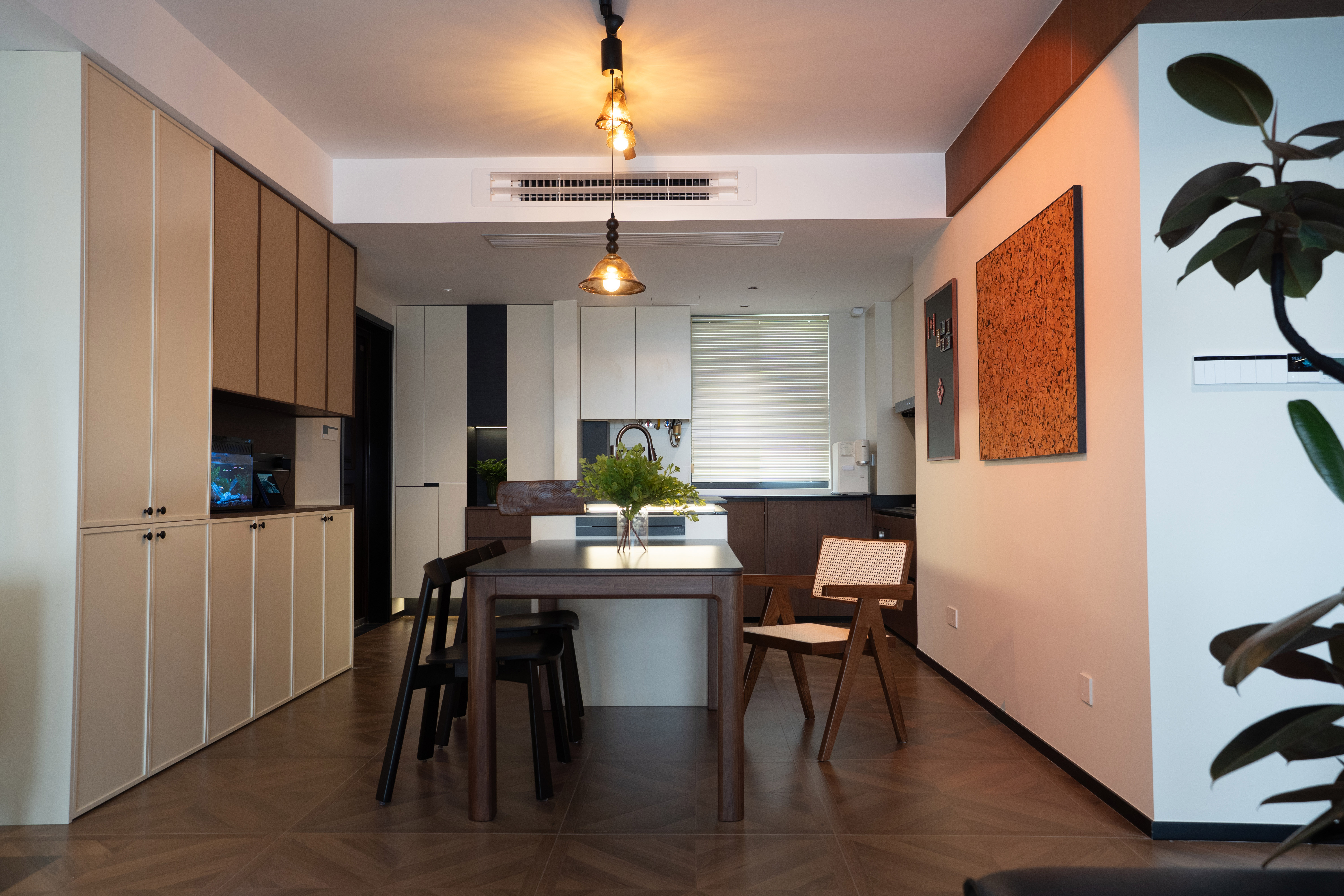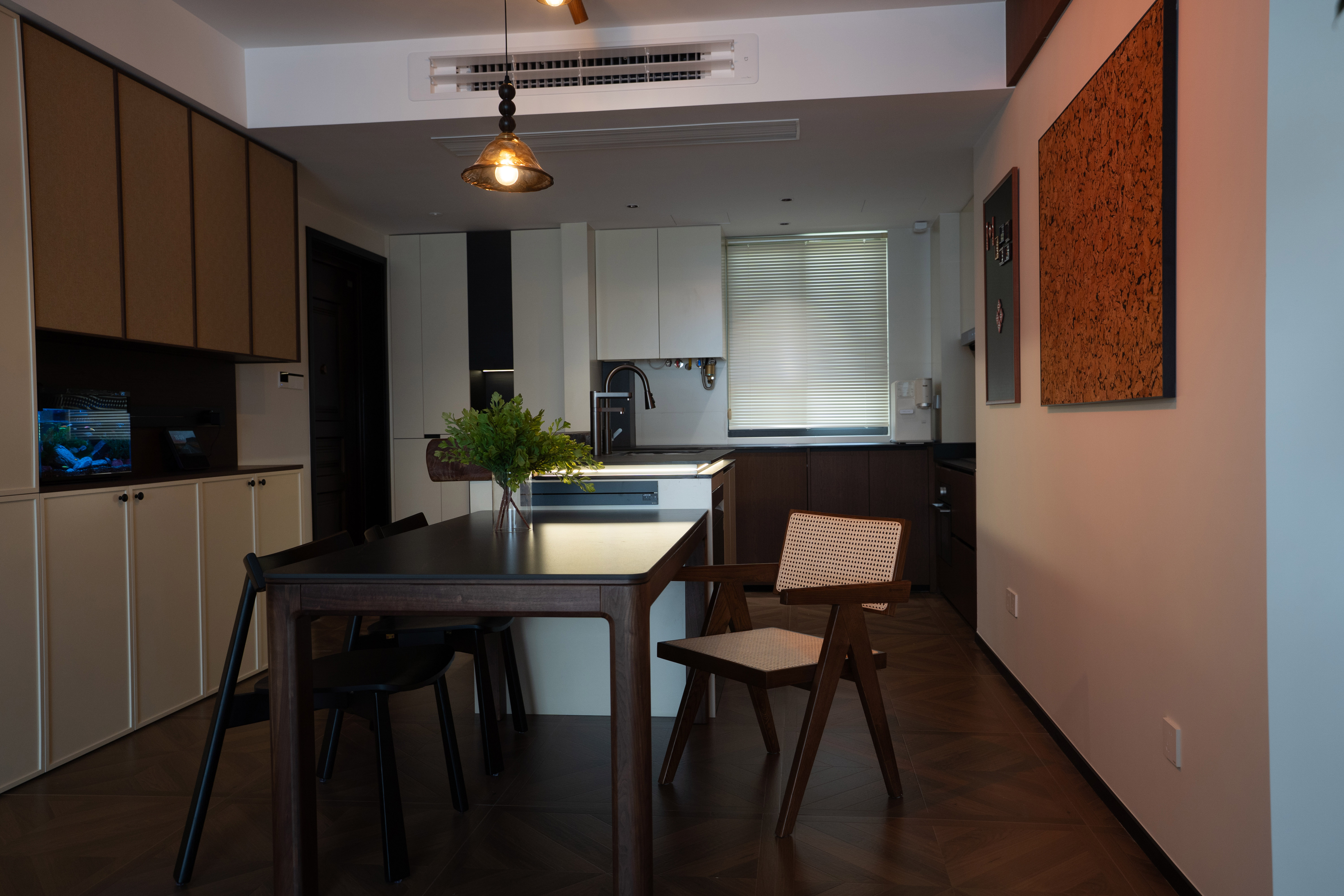 融合的社交餐厨:厨岛台与餐桌一体化或相邻布局,选用天然大理石或实木桌面,成为家庭社交、临时办公的核心。 -