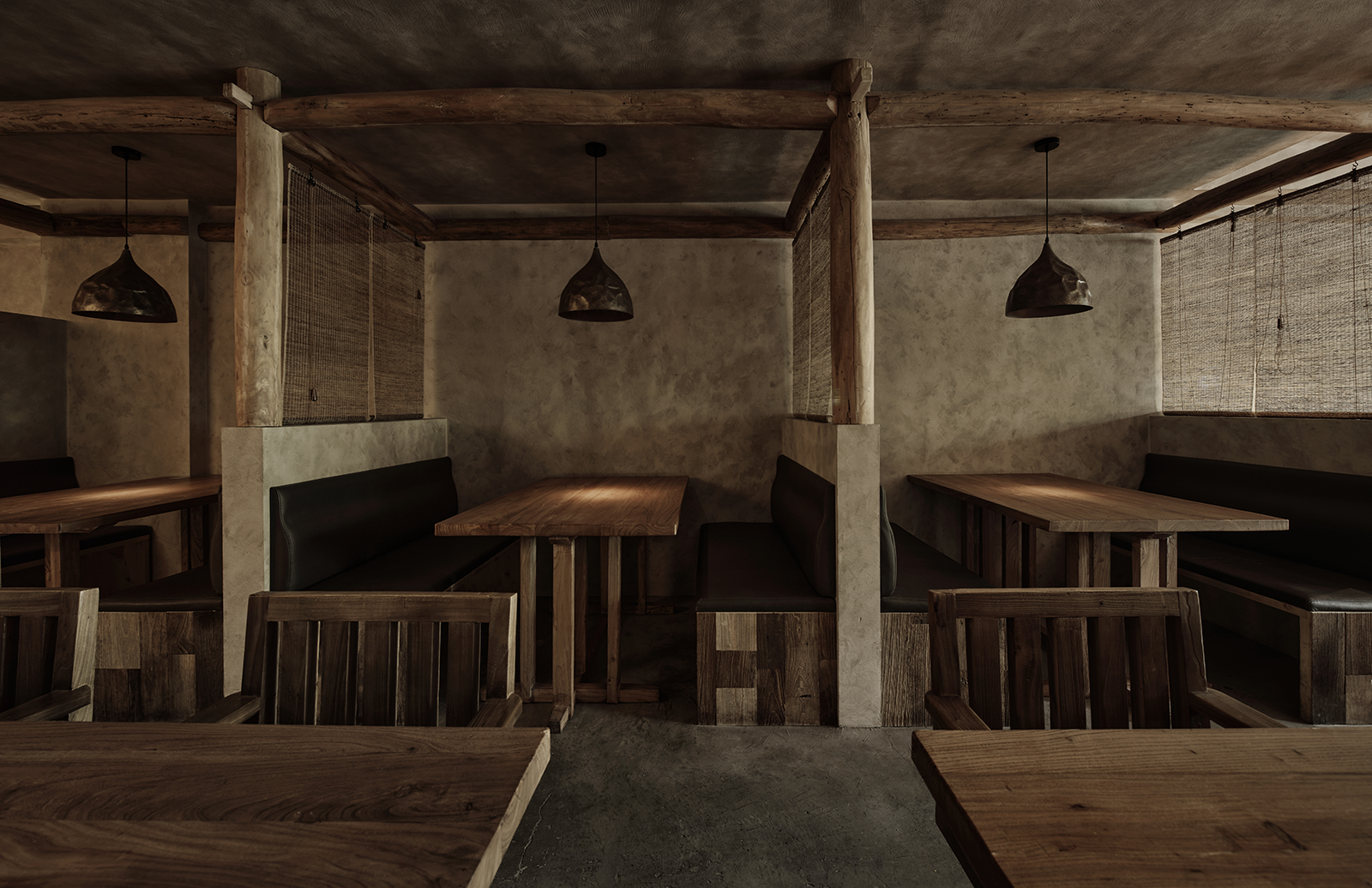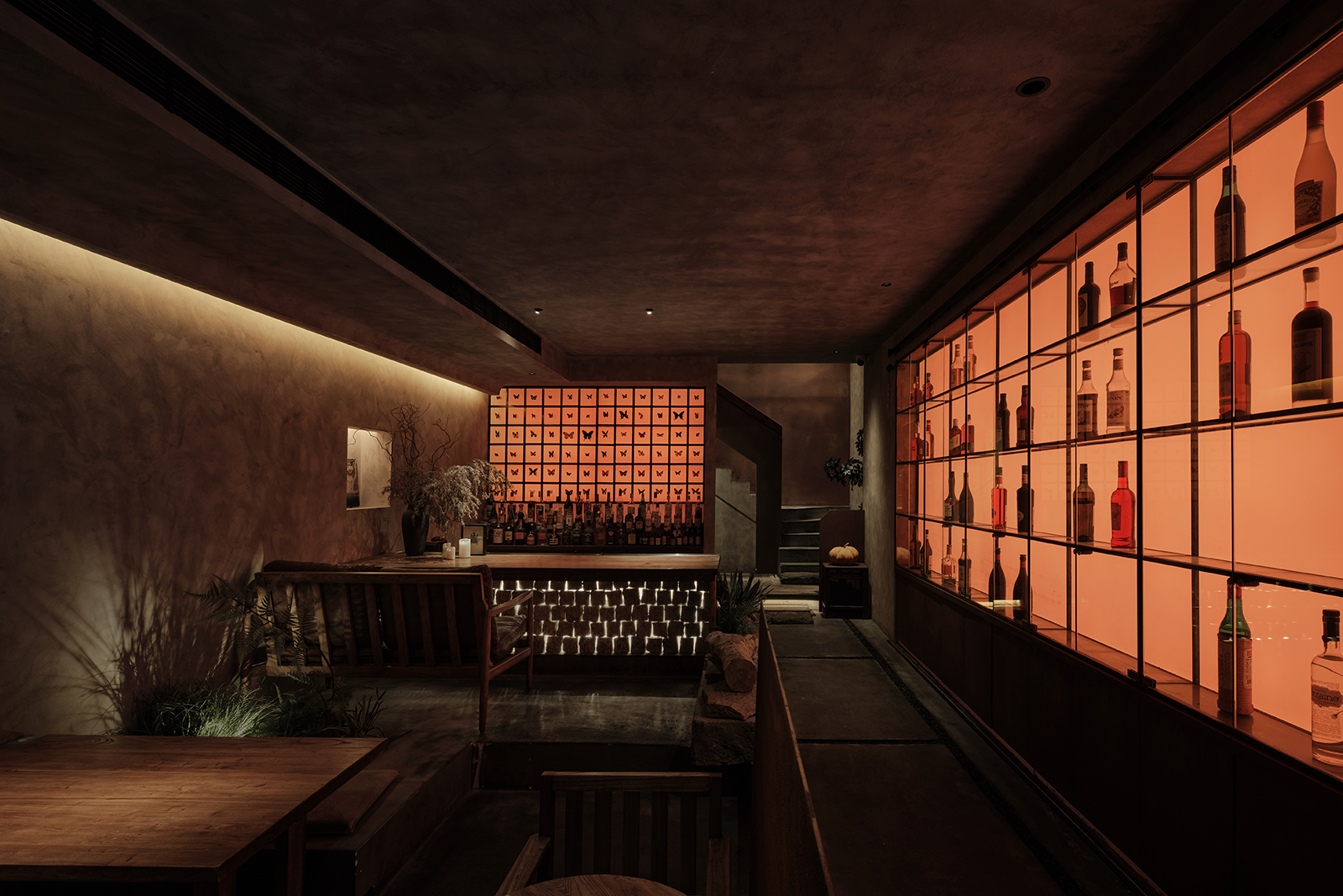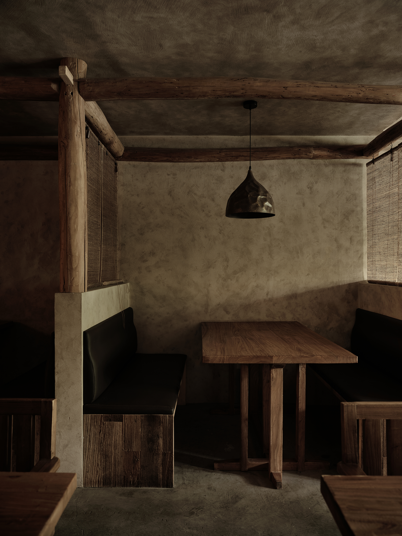 相对于一楼的Bar,二楼作为客人们正餐时间用来安静就餐的区域,整体装修朴素,仅在少数墙面用流水灯光辅助氛围。就餐区部分卡座间用老木头搭建成梁柱,挂上草帘,前后桌互不影响。二楼的靠窗处,永远是客人们最爱的区域,就如同当初我们选择这家店时候的理由一样。 -