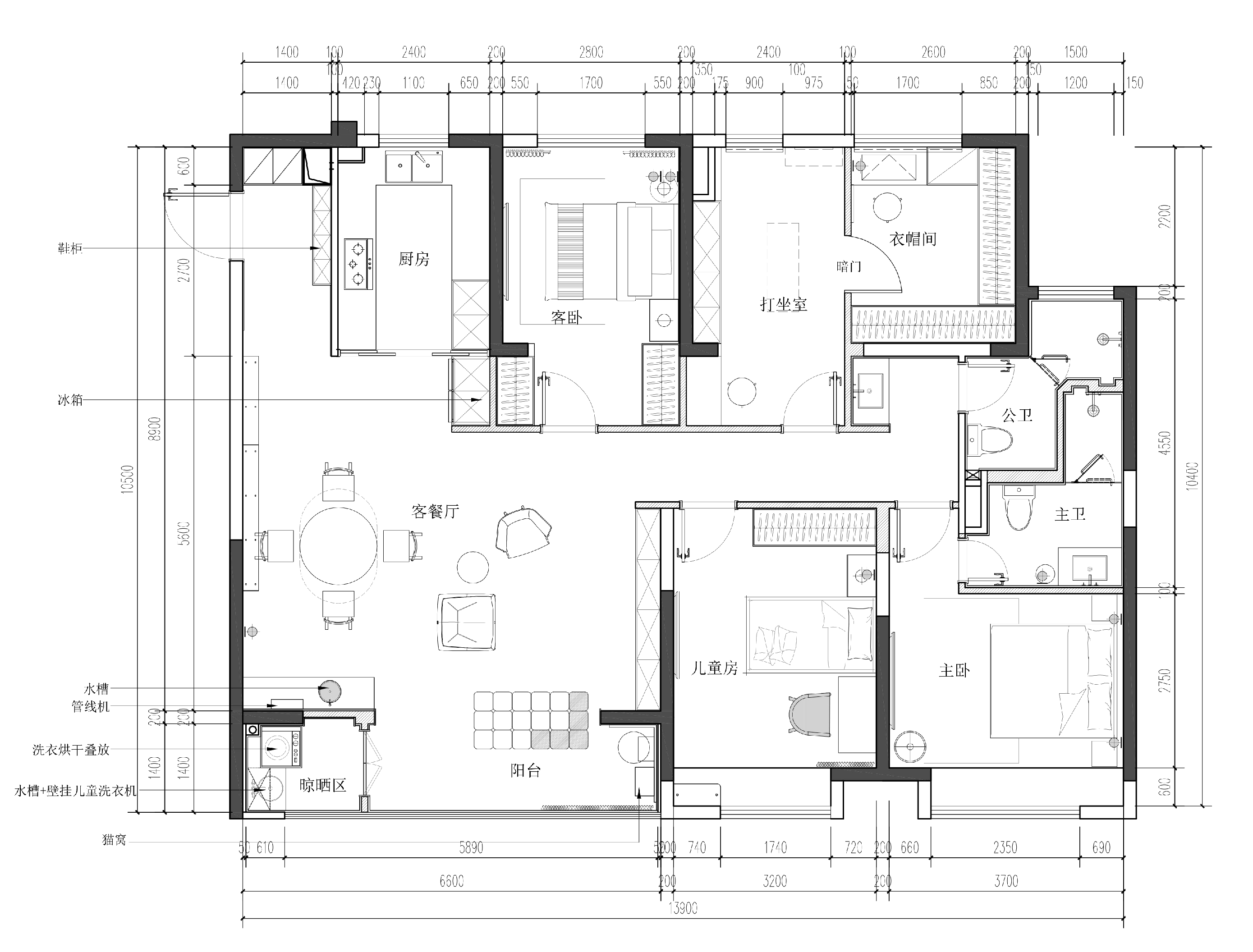 业主为一家三口带有两只猫,业主审美也非常年轻潮流 -