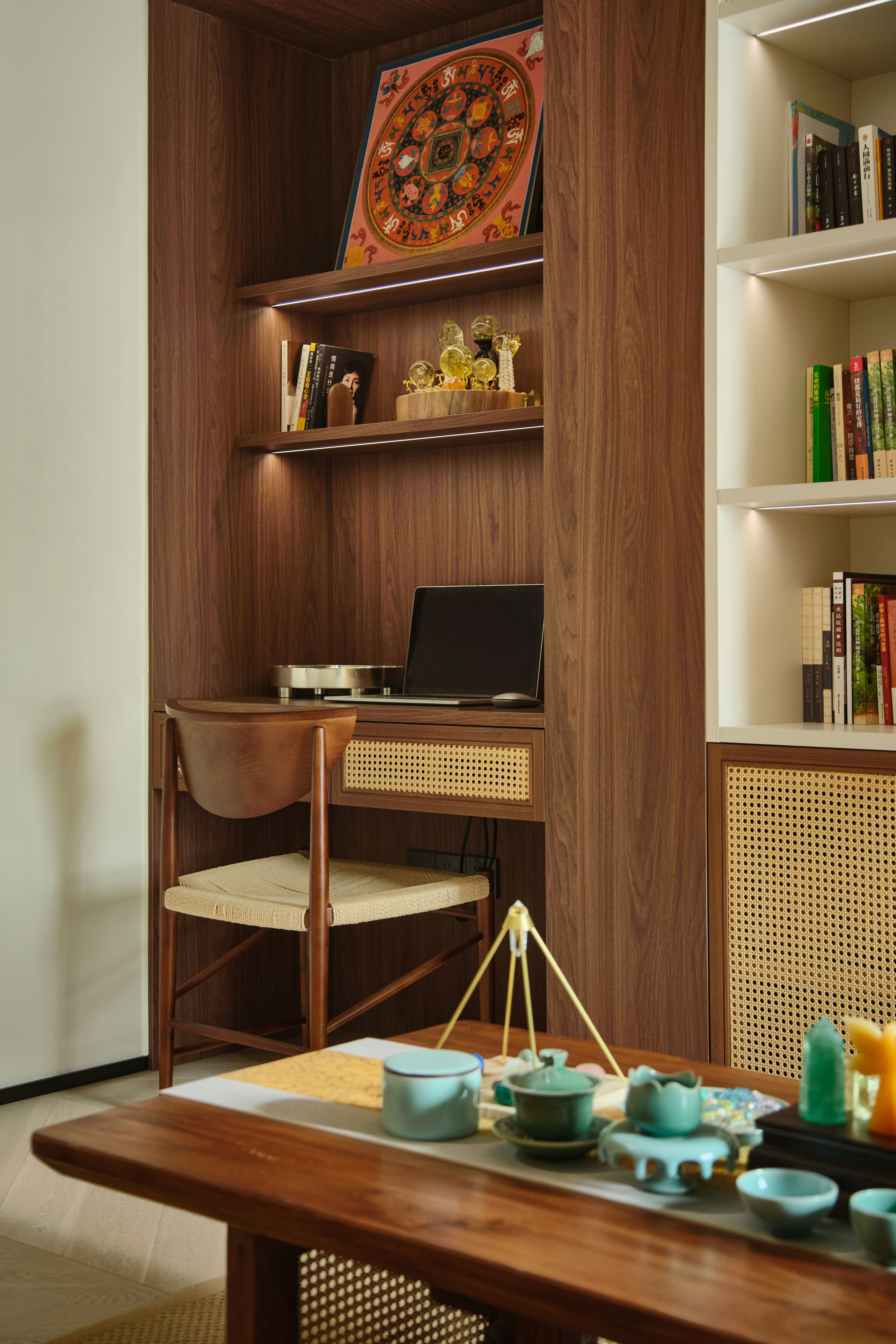 空间意境:整体是比较混搭的氛围,我们认为家的设计应该没有所谓的风格,不是极简,也不是极繁,应该能彰显屋主的气质,简单的硬装给了软装空间更多的发挥空间,可以容纳更多生活的内容在室内空间内