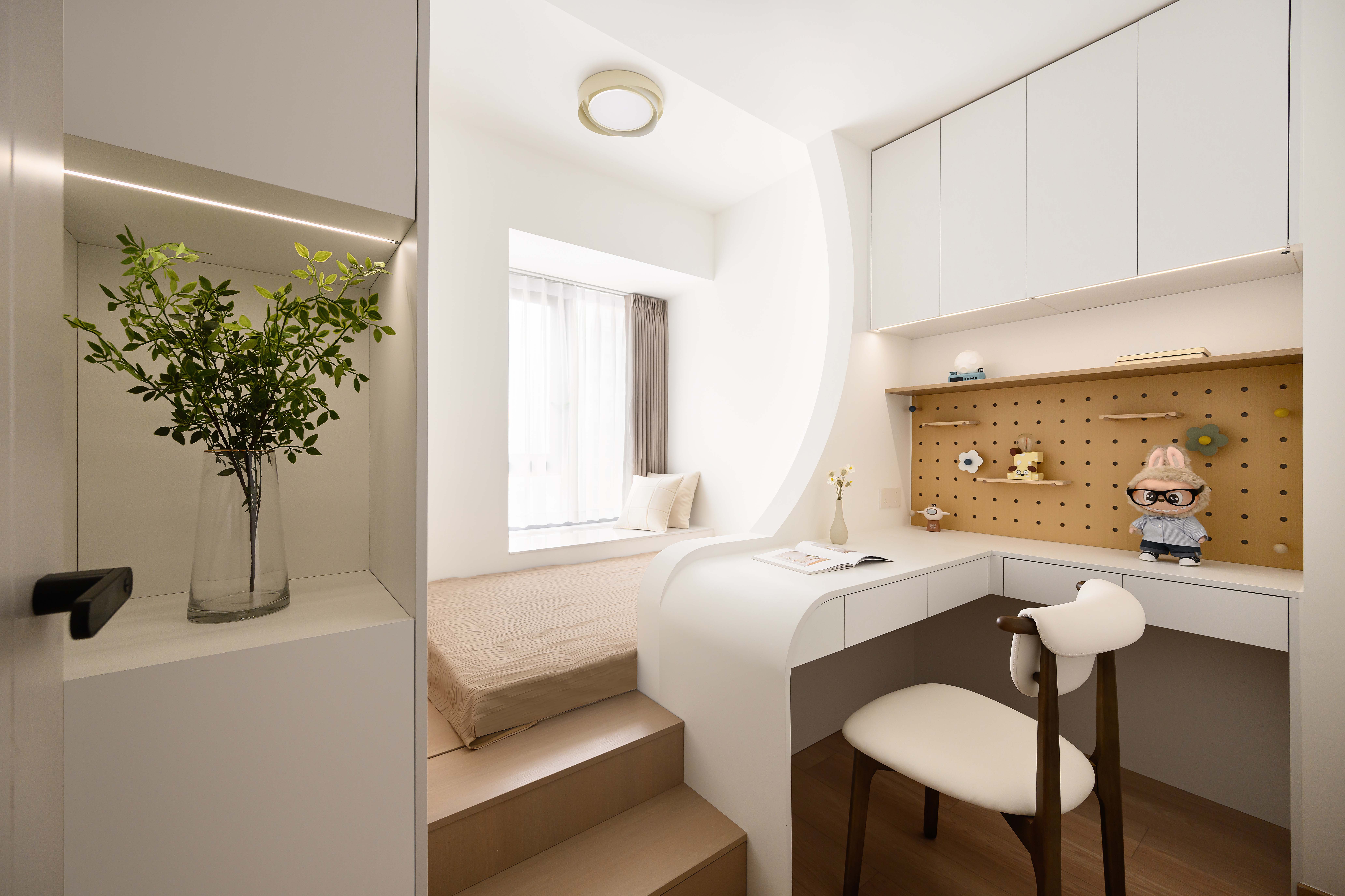 用户体验:本案以简而有致为设计逻辑,将柔和色调、流畅布局与温暖细节相融,通过触觉、视觉的沉浸式体验,还原家是治愈港湾的本质,简约中见温情,于松弛中藏巧思,让空间成为拥抱自我的理想个性生活场景,营造生活格调,表现出空间原有力的扩张与形体之间的联系。