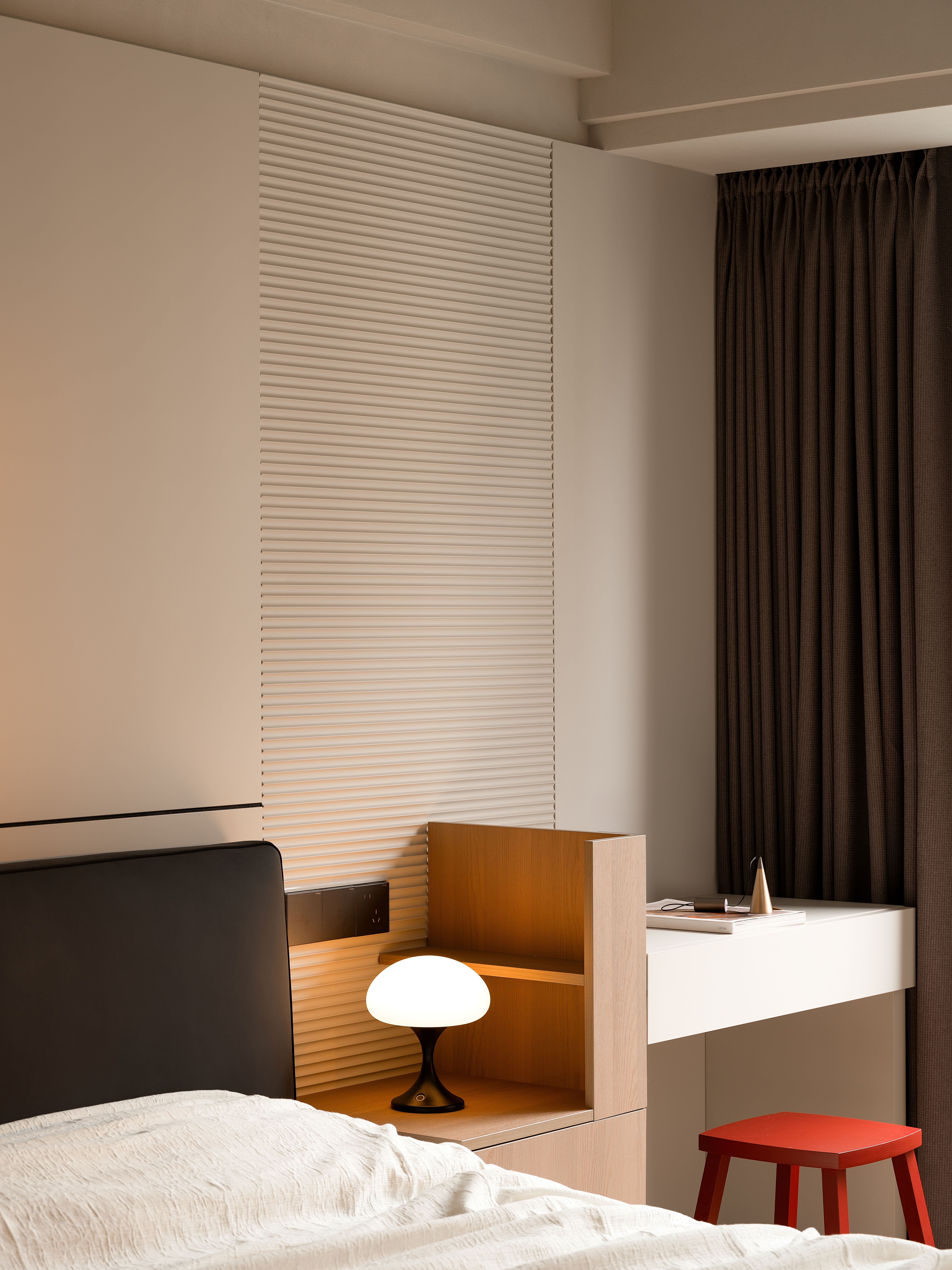 用户体验:作品投入使用后,用户反馈空间流动性极强,功能区域划分明确,满足了不同生活需求的同时,还保持了高度的舒适性与美学性。智能化设计的应用提升了生活便捷性,而温馨的光影、简约的几何结构和丰富的收纳设计使得空间既富有情感又充满活力。用户评价表示,该空间极大提升了居住的仪式感与愉悦感。