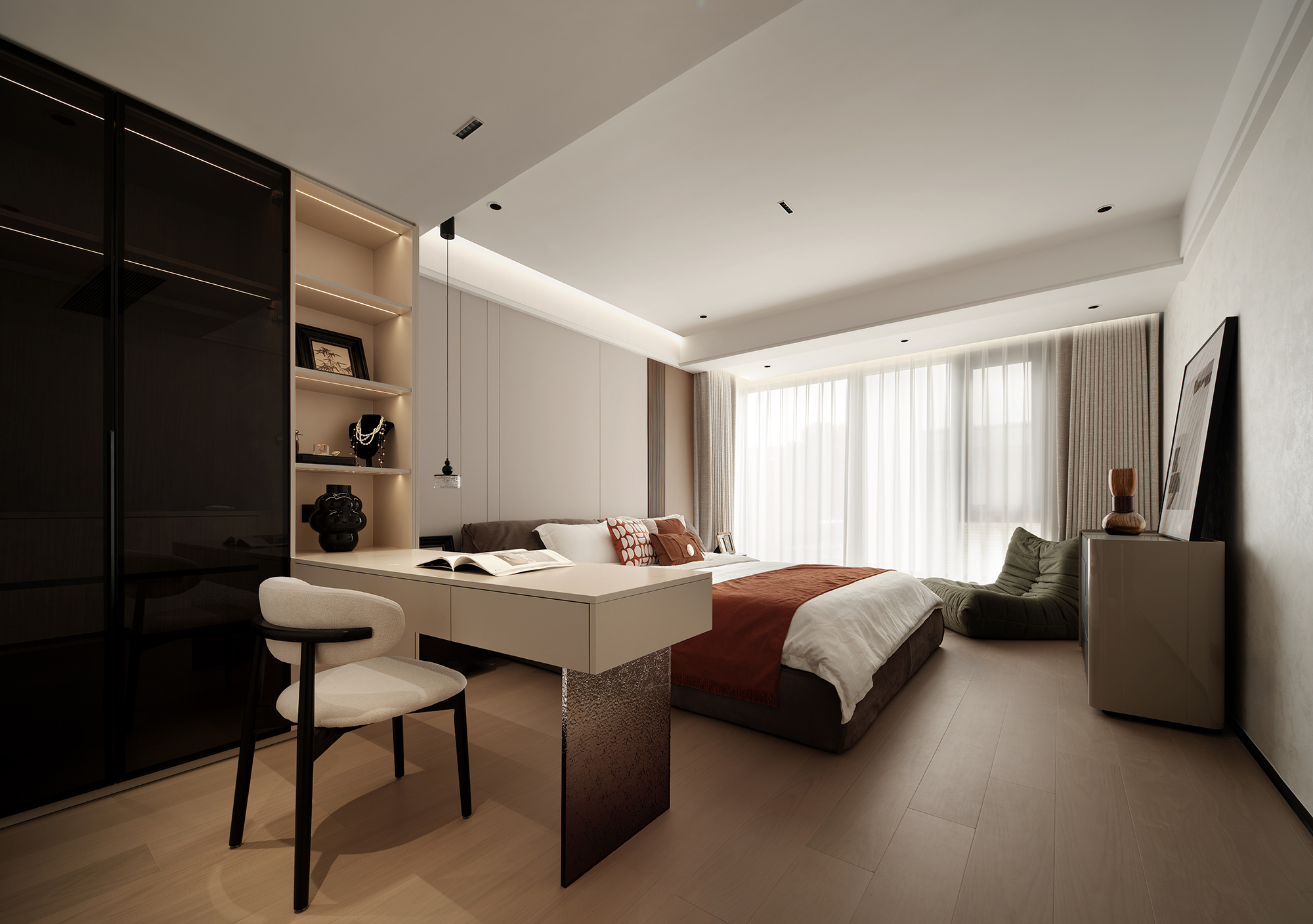 项目定位:不困于心,不役于物。本案摈弃繁复的设计,以简约而富有灵魂的构想融入业主的喜好与品味,简奢有度、内敛摩登,打造纯粹品质空间,赋予生活全新的维度。以意式轻奢为基调,将自然肌理与奢华材质完美融合,通过极简线条与精致细节的碰撞,打造出兼具艺术性与功能性的居住空间。