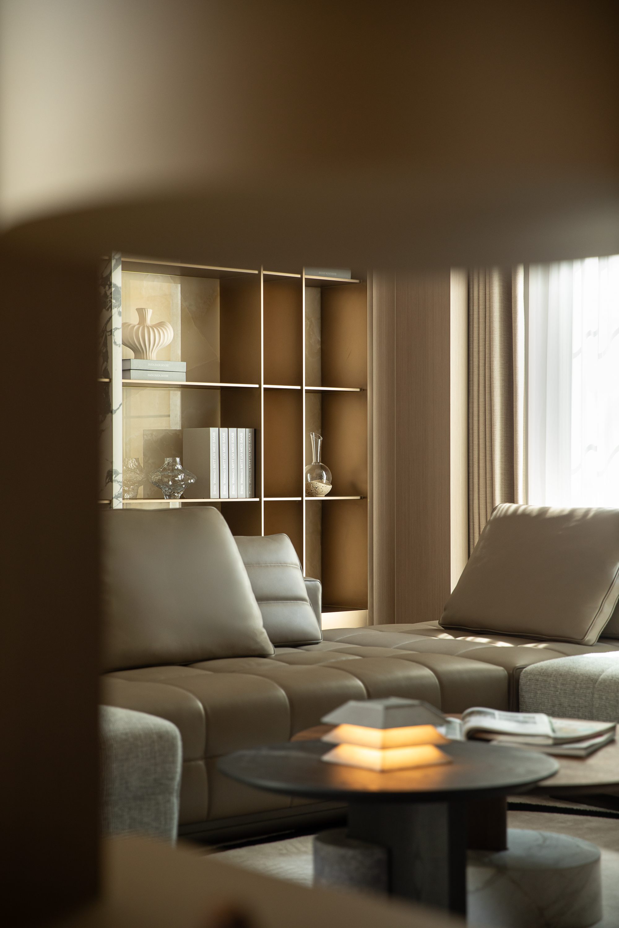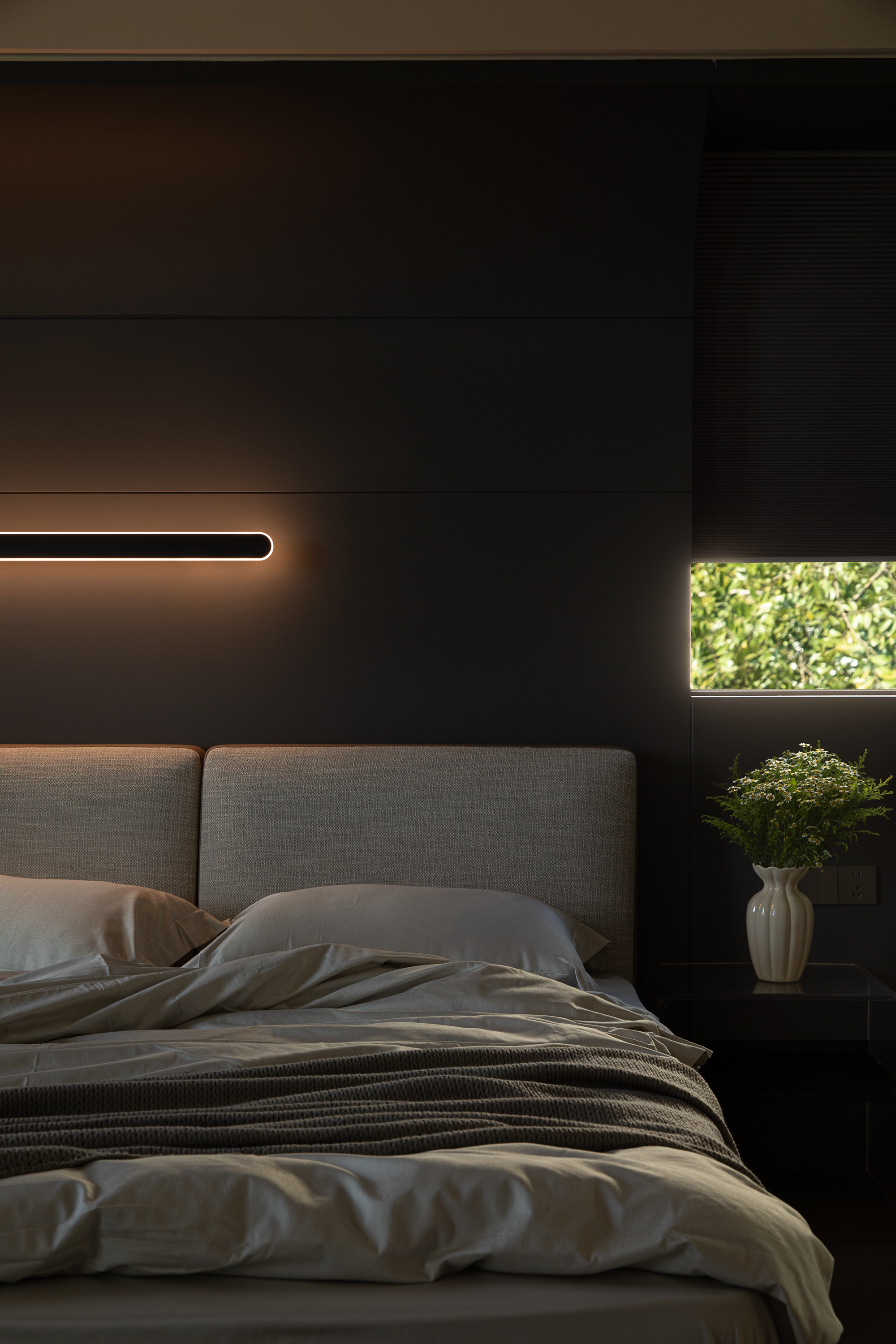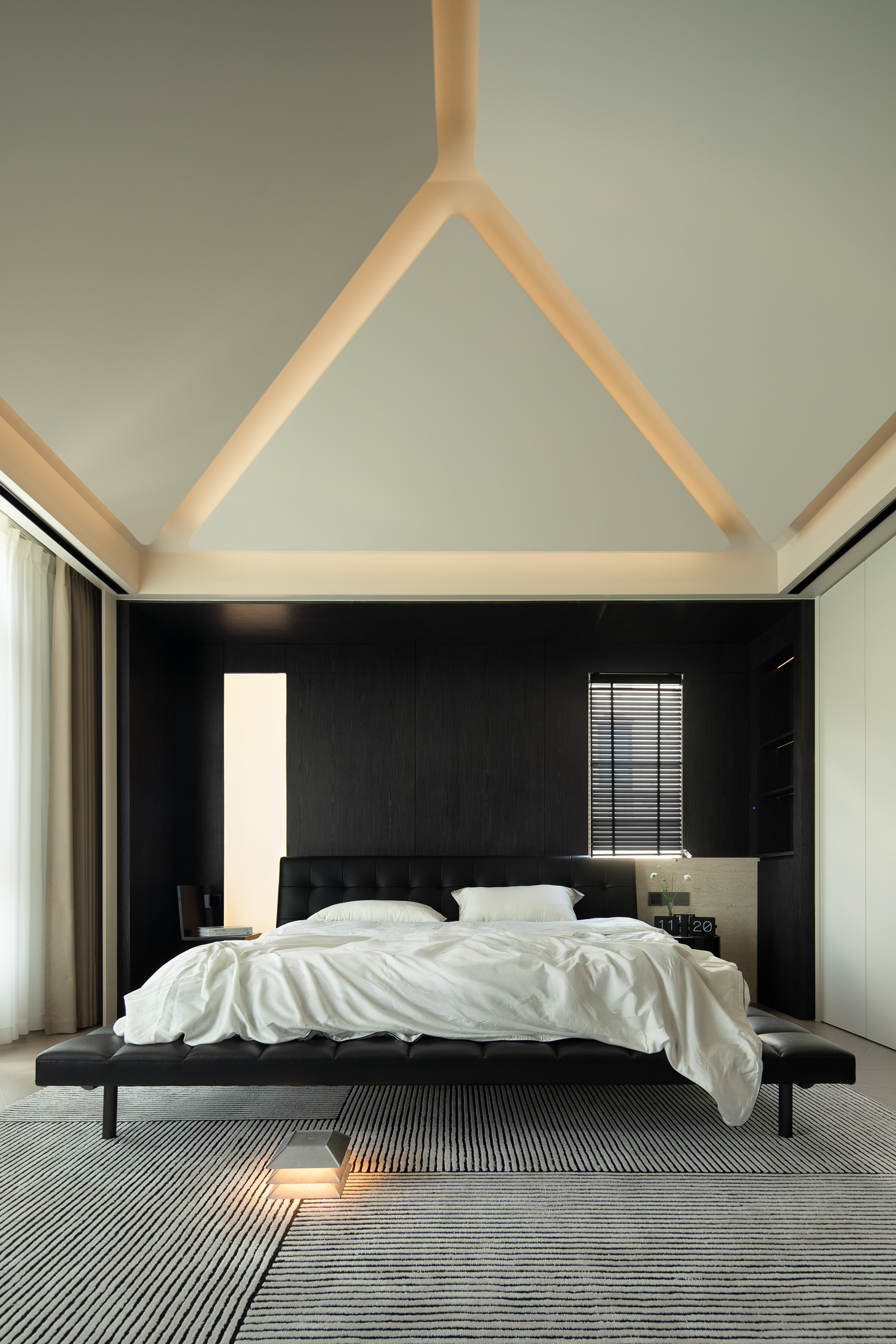 科技隐形式融合 :100寸巨幕电视与内置影音系统、全空气系统,皆通过精密结构间隙实现功能与美学的统一
