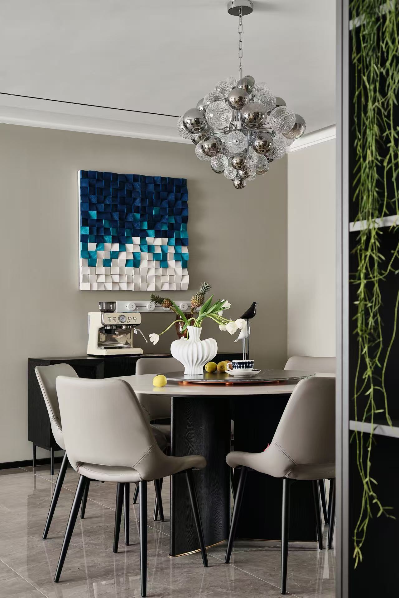餐厅的配色呼应整体又显出家的别致。