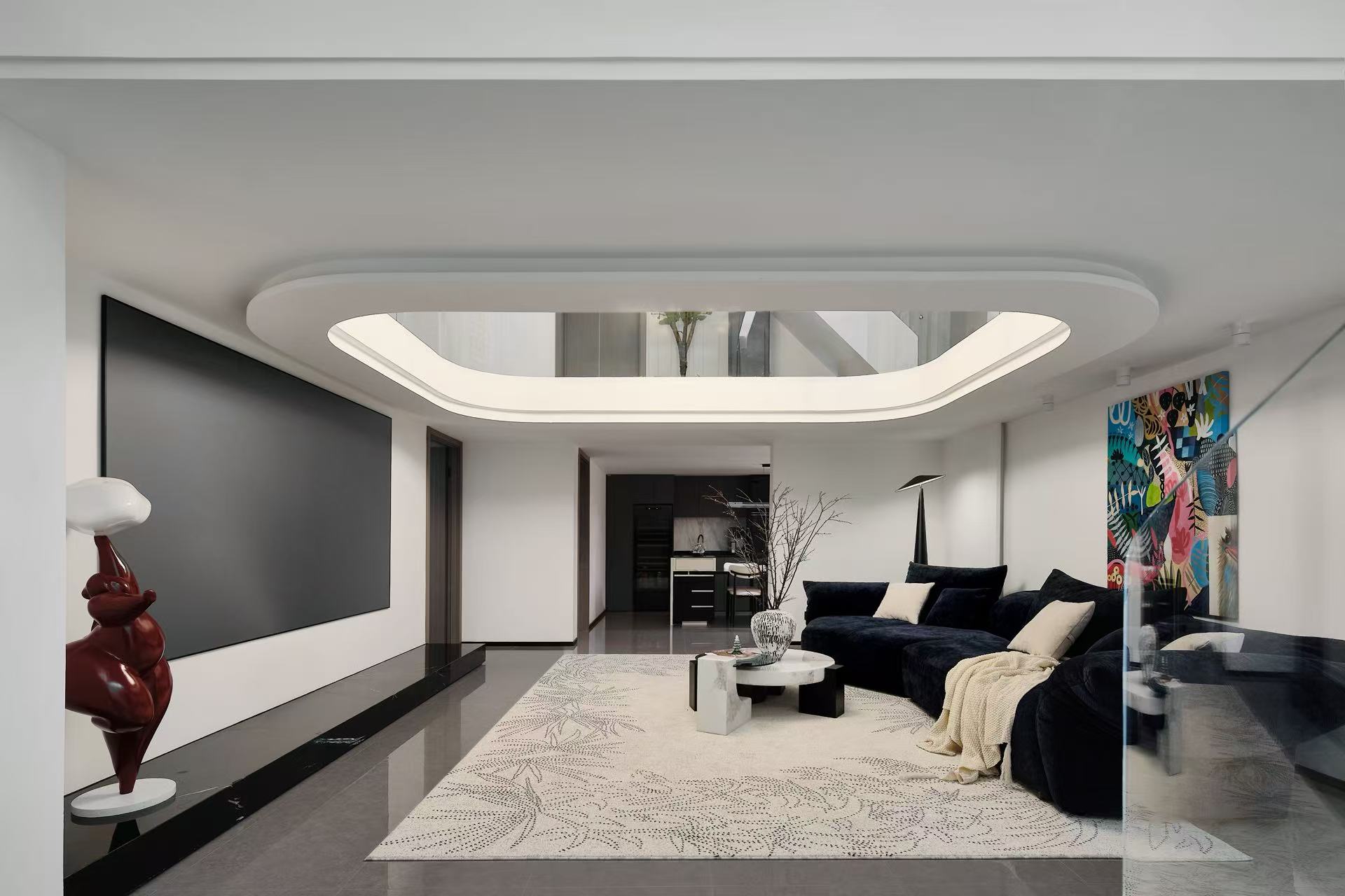 回字挑空区域,把缺点变成优点,打造空间向上延伸动态美。