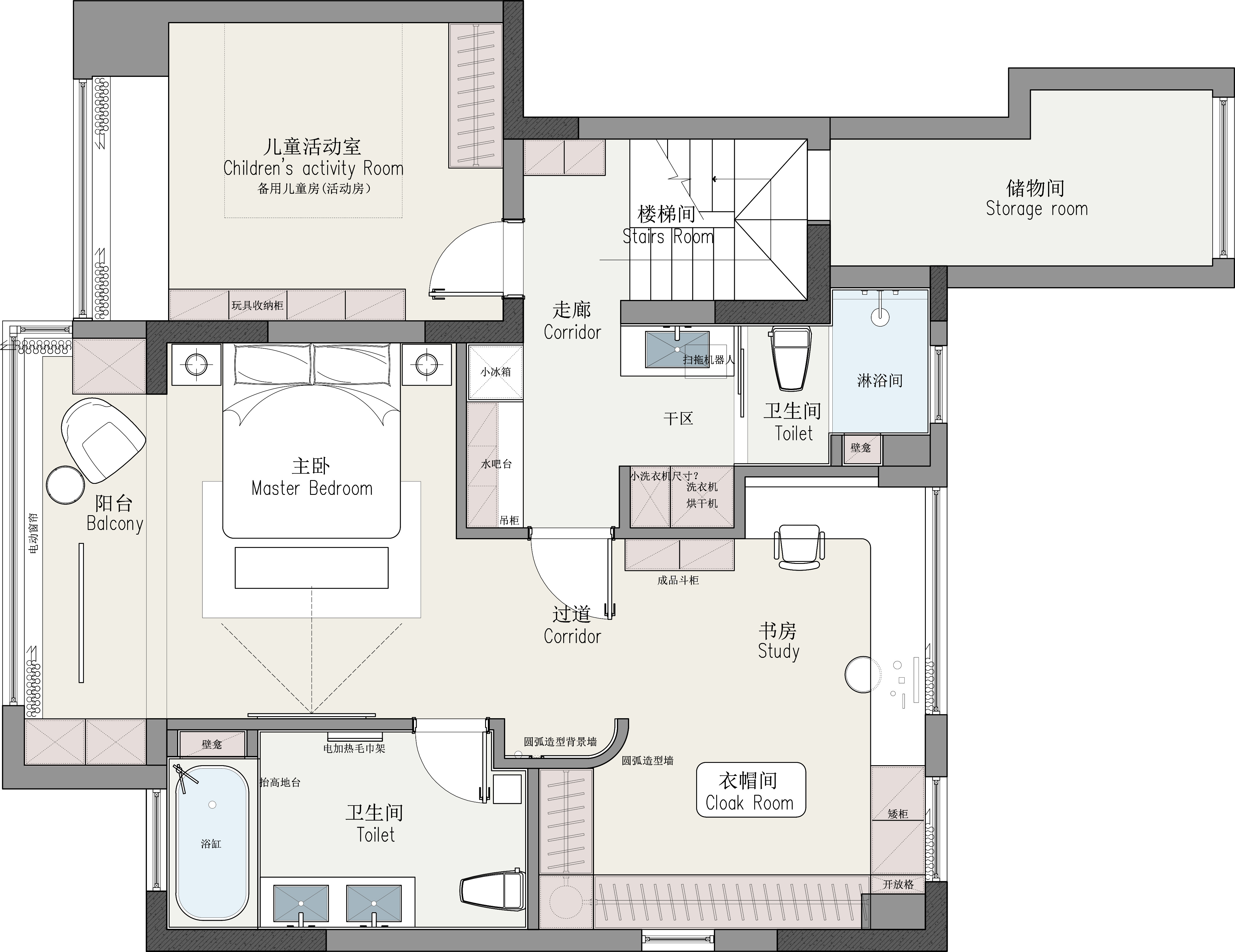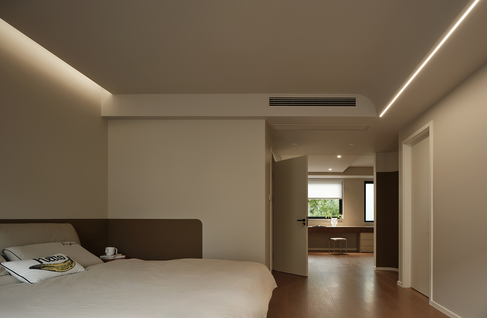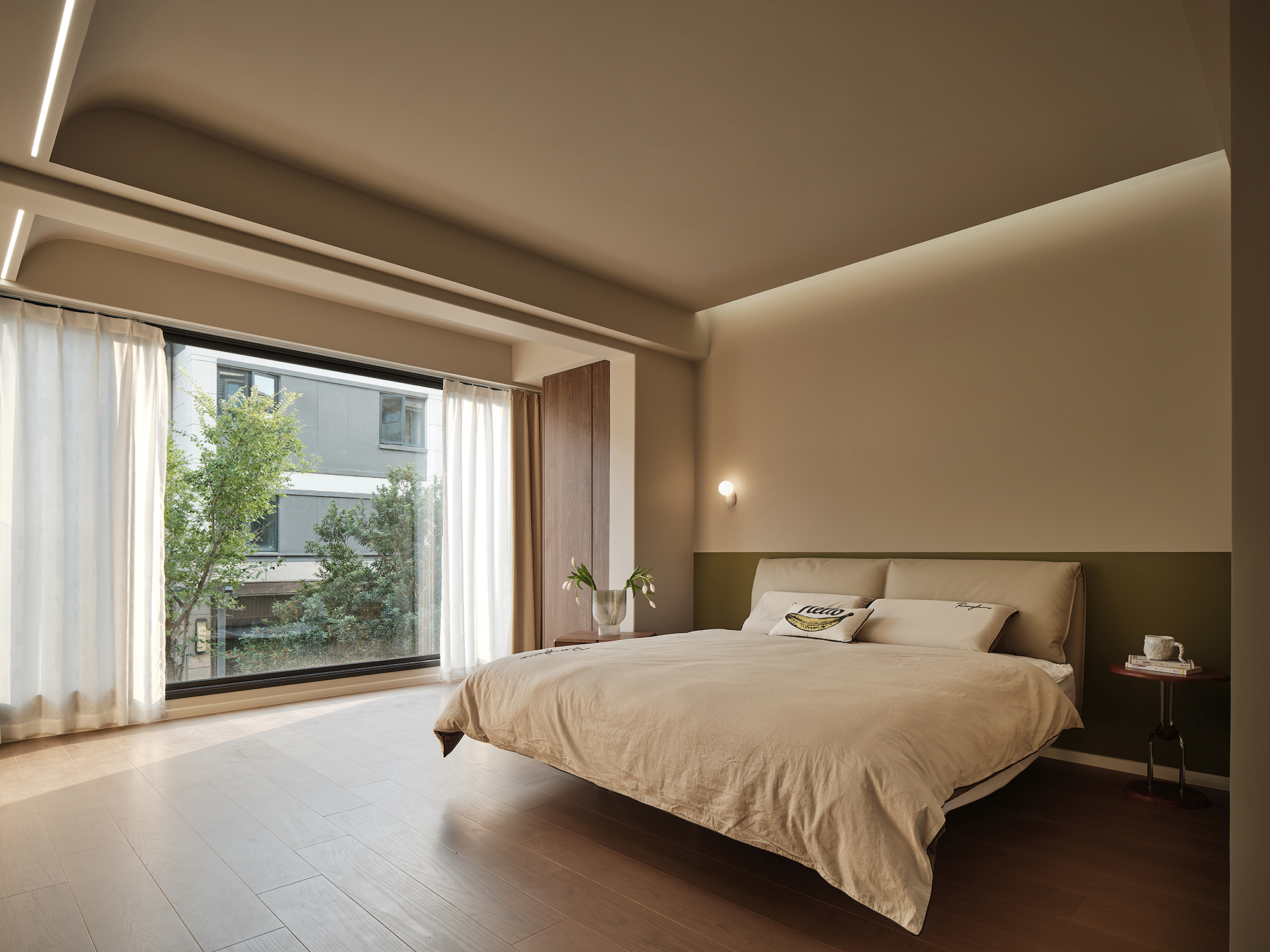 项目定位:本案以“自然融合、安全适配、功能整合”为核心,将自然风贯穿于空间设计始终。通过圆弧造型弱化建筑结构硬伤,以墙顶同色延伸拉伸空间维度,同时围绕亲子空间的成长需求优化细节,兼顾自然美学与实用功能,打造兼具治愈感与探索性的家庭生活场景。