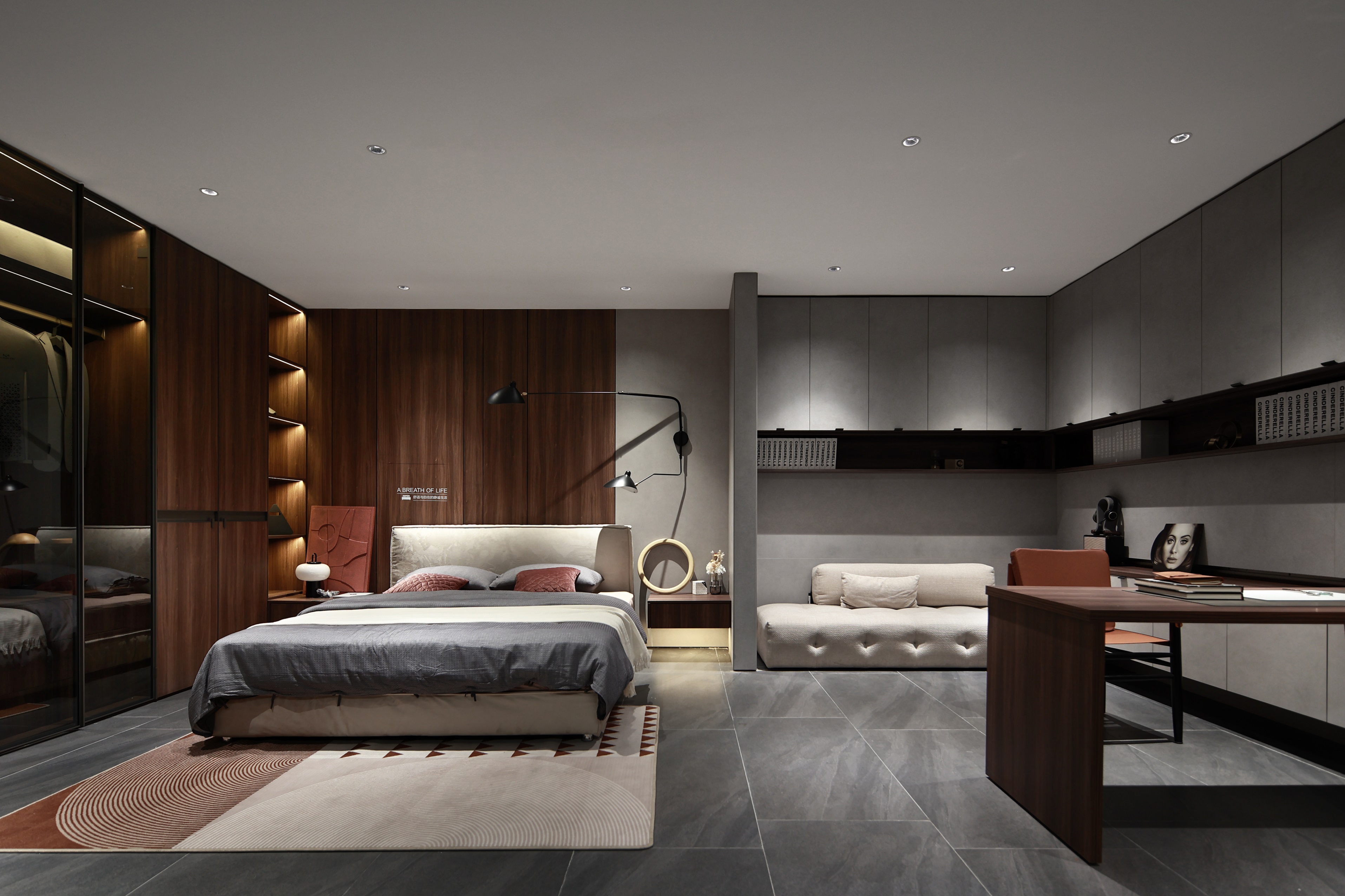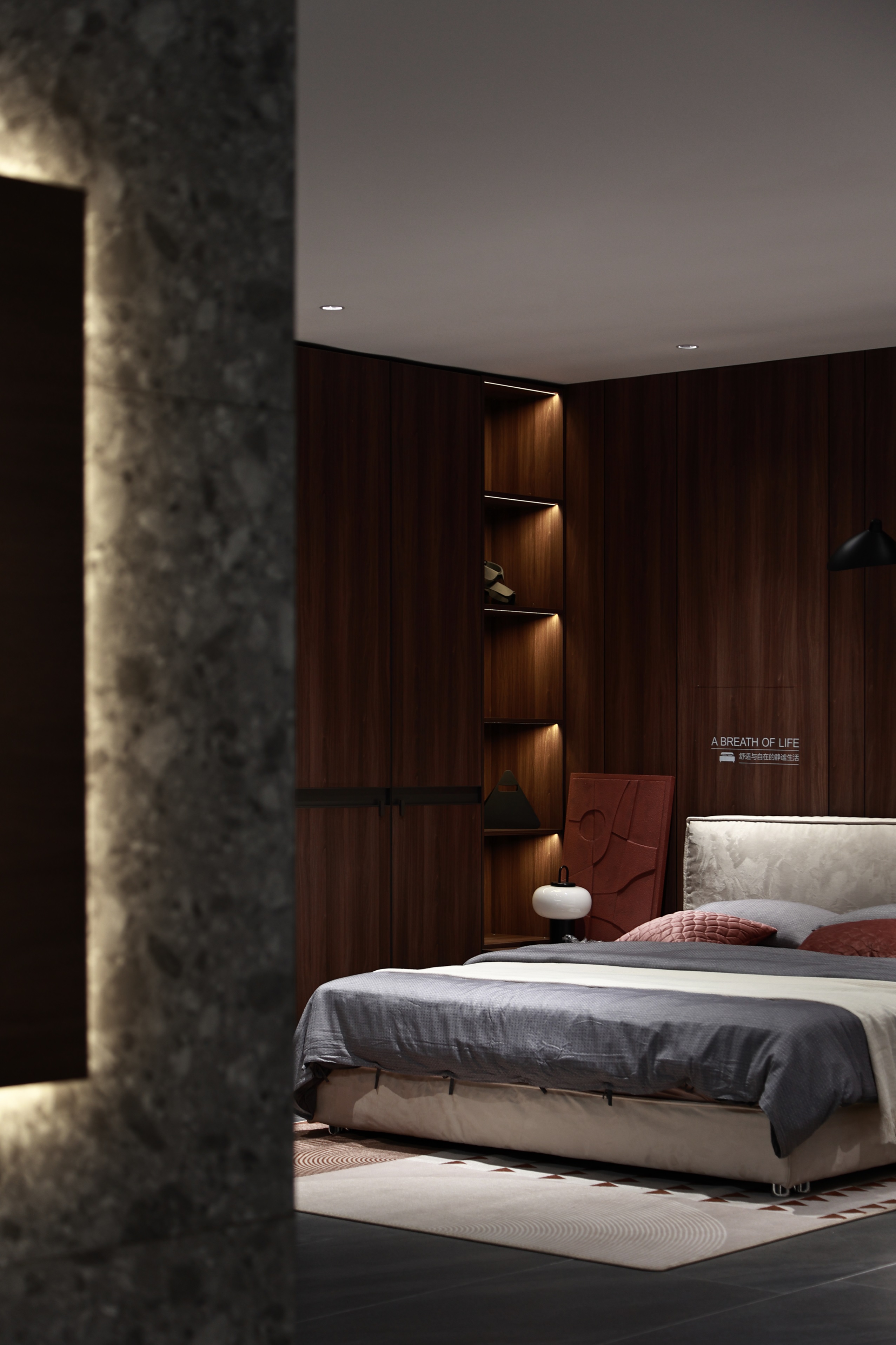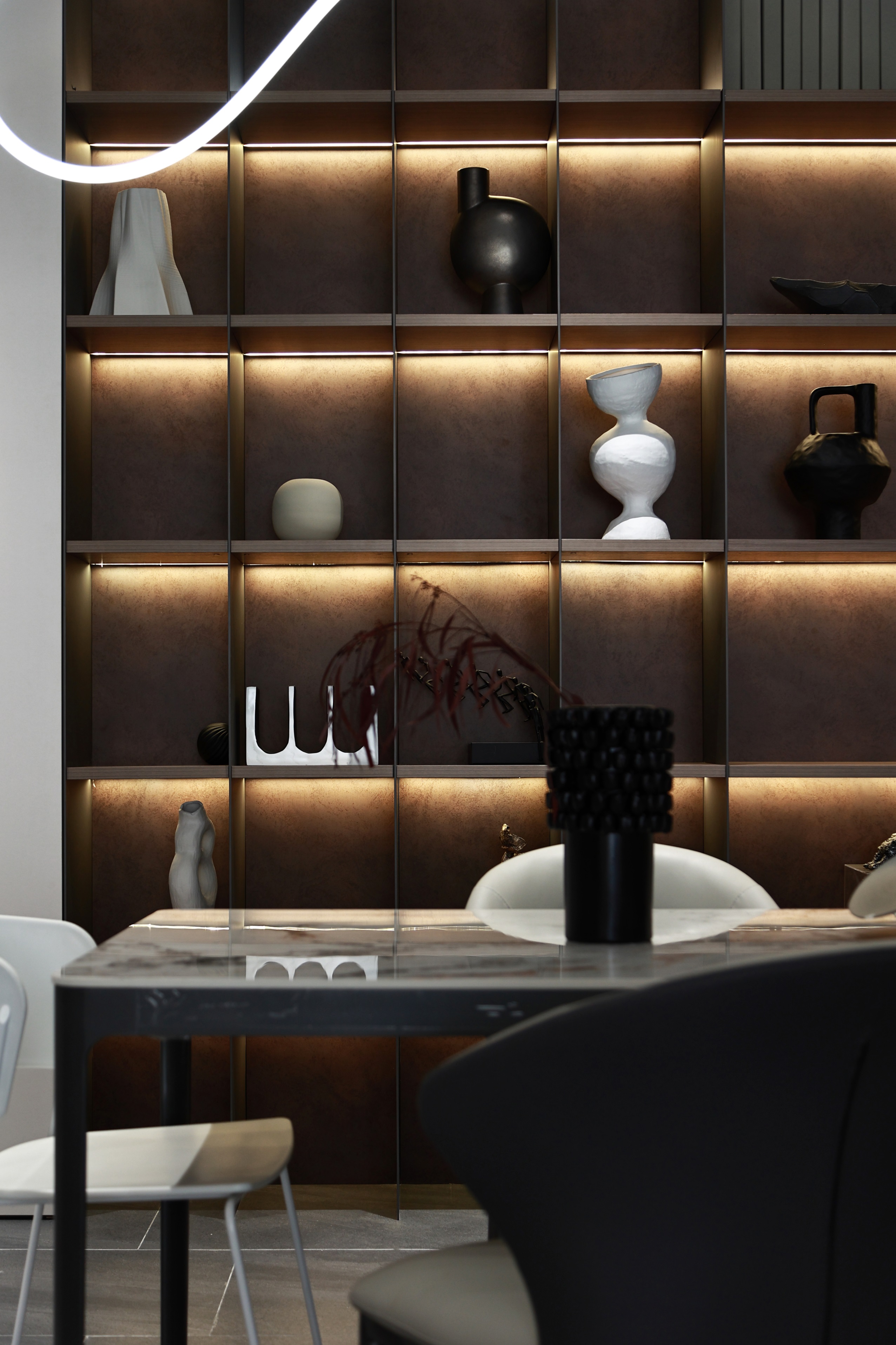 空间意境:打破固有思维,跳跃出传统展厅的设计理念,源于从“心”出发营造既满足生活的舒适感的同时,又不失空间氛围感。