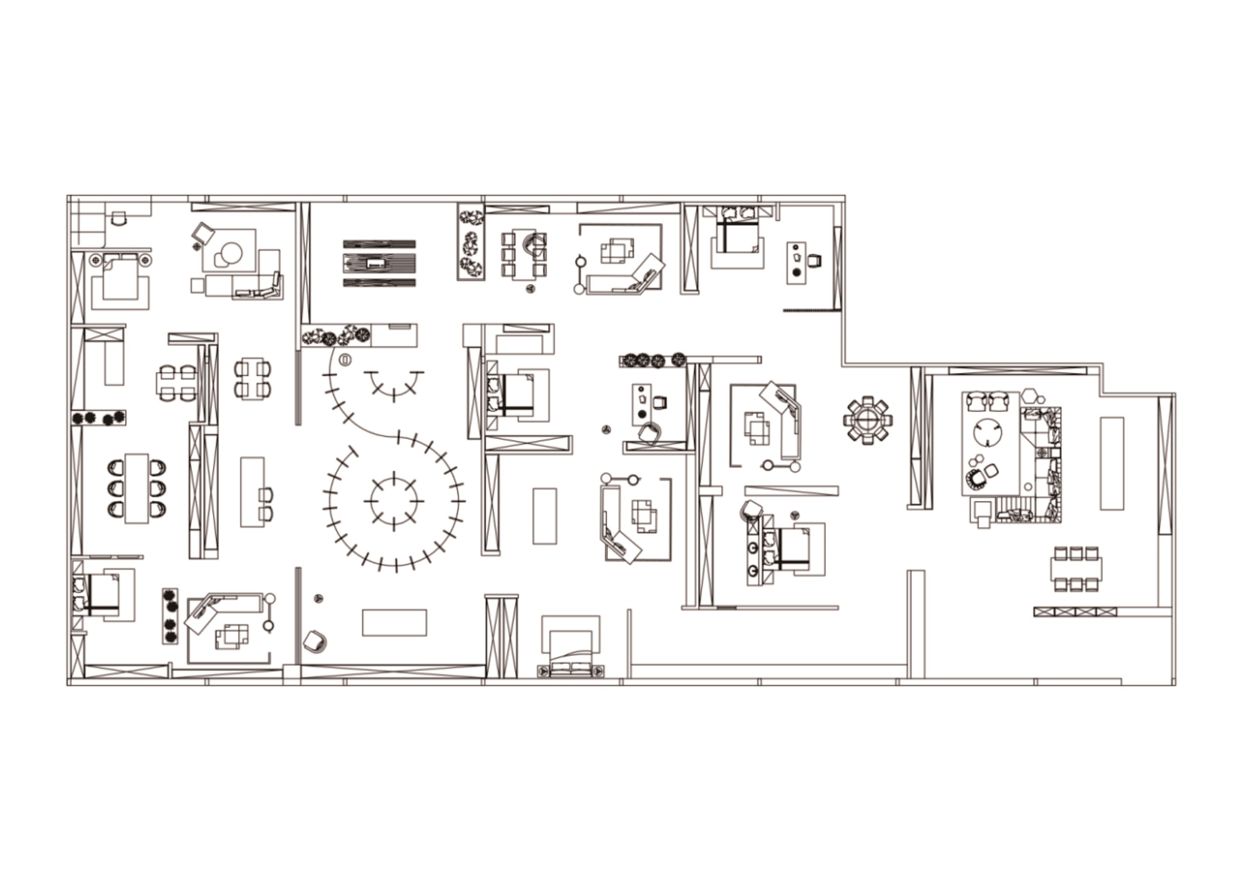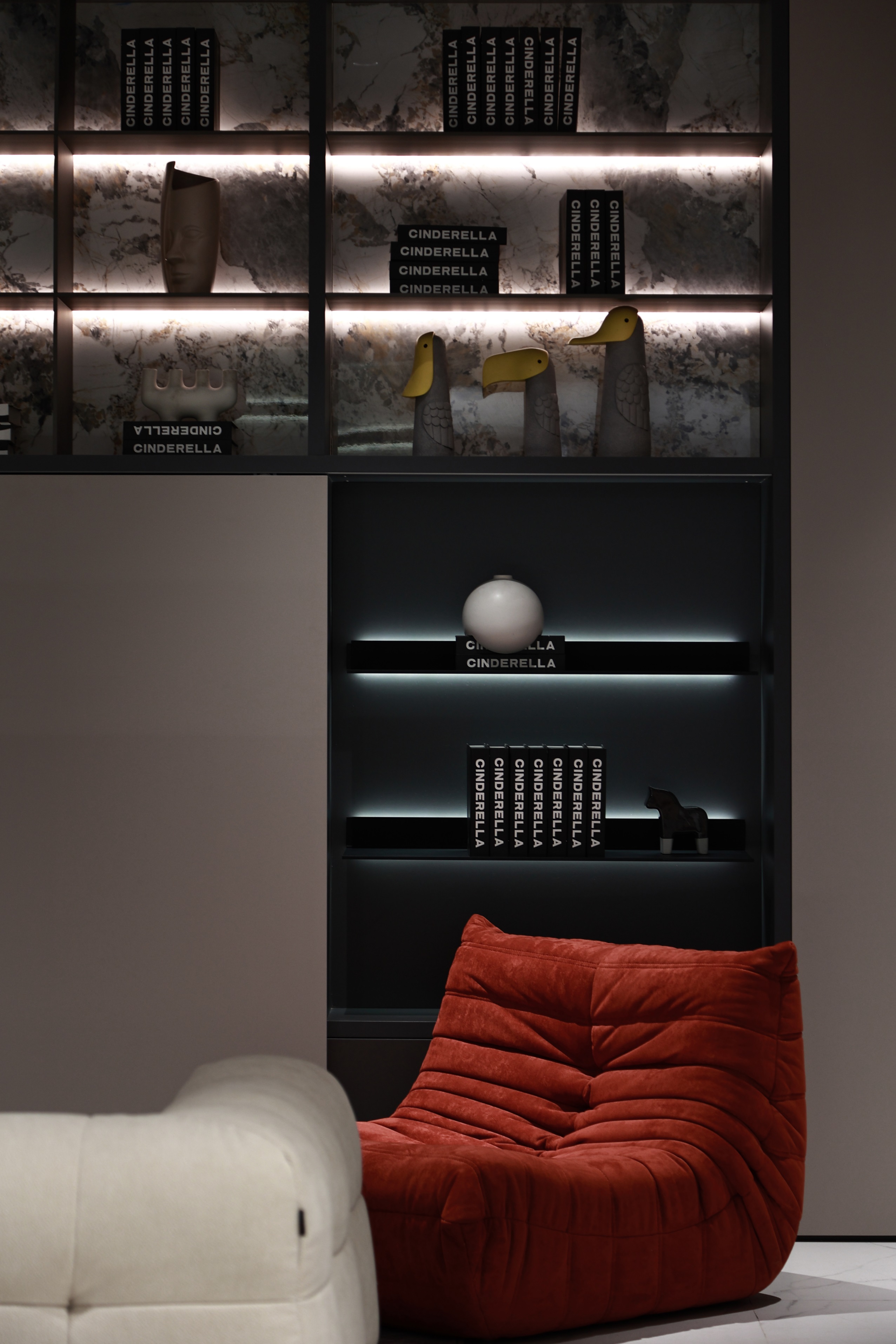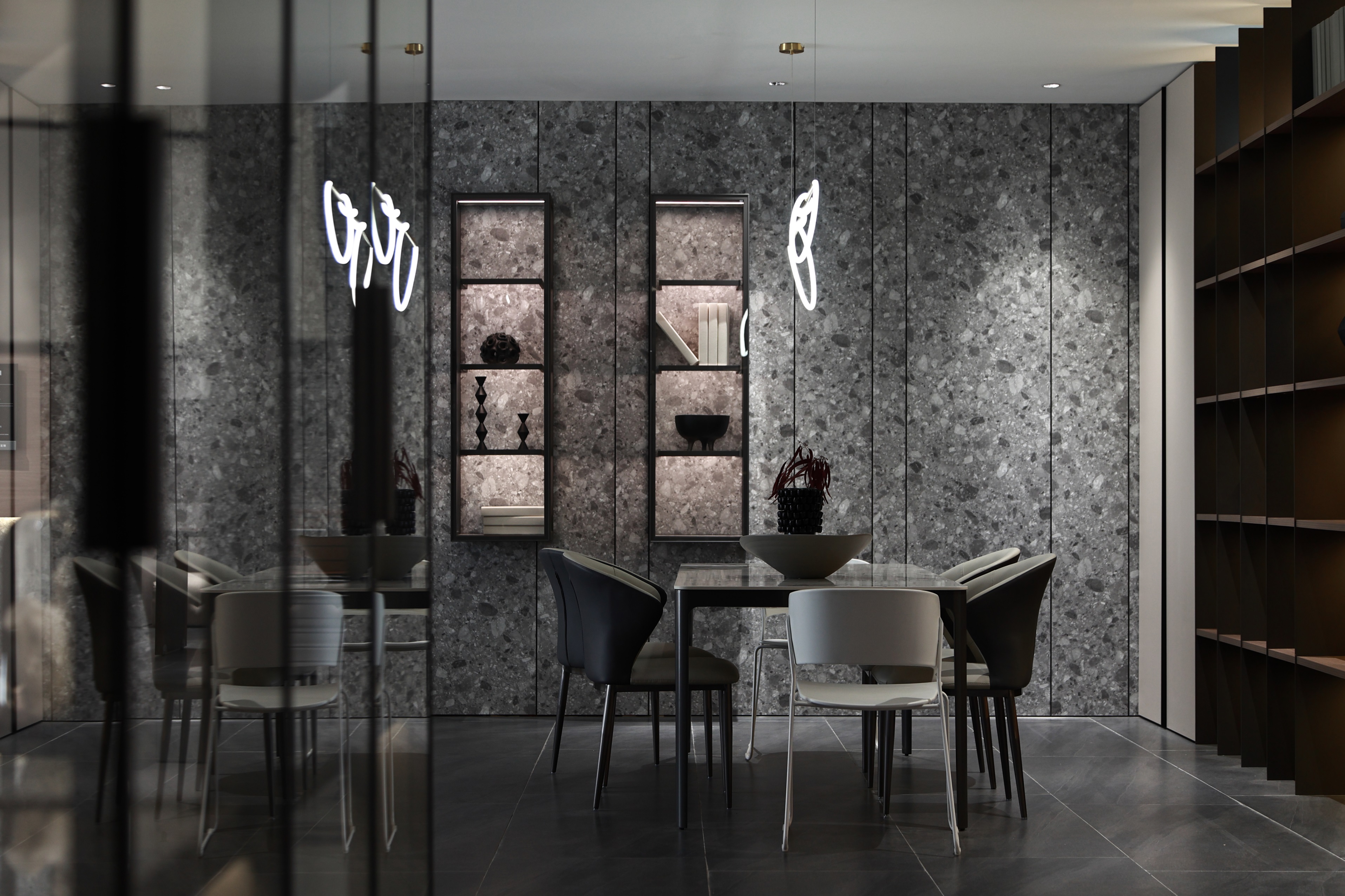空间意境:打破固有思维,跳跃出传统展厅的设计理念,源于从“心”出发营造既满足生活的舒适感的同时,又不失空间氛围感。